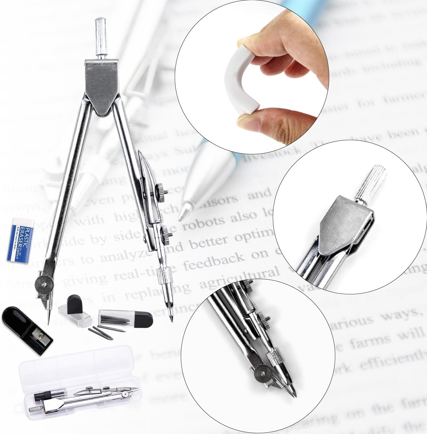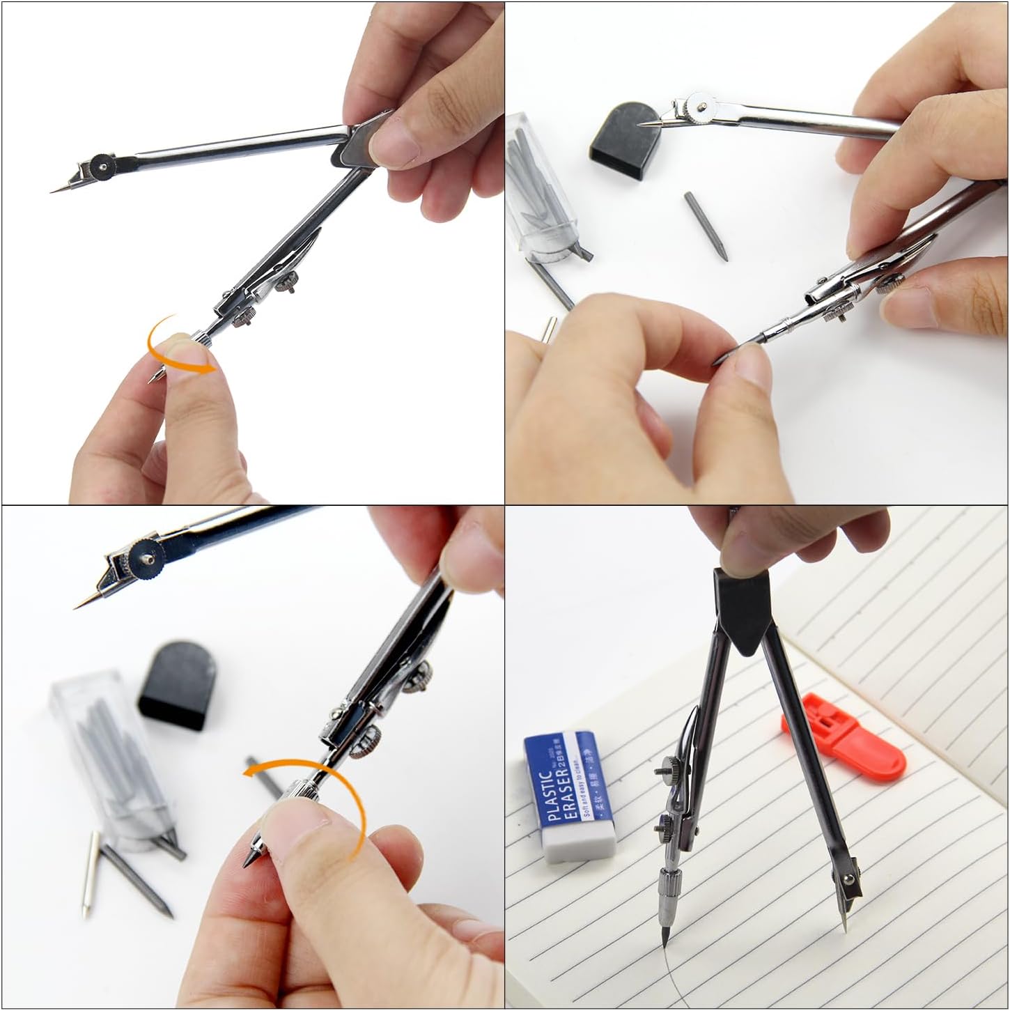 Quantità sufficiente: il set contiene 200 mine circolari, confezionate in 20 scatole trasparenti. La confezione include 1 bussola, 4 temperamatite e 4 gomme. La quantità è sufficiente per l'uso quotidiano Materiale: il temperamatite è realizzato in materiale argilloso di alta qualità, stabile e non facile da rompere. La scrittura è fluida e ti offre una buona esperienza di scrittura Diametro 2 mm: la lunghezza delle mine del compasso è di 2 cm, il diametro è di 2 mm e il modello è di 2B. Adatto per tutte le bussole con diametro mina da 2 mm Facile da riporre: le mine di ricambio per compasso sono confezionate in una piccola scatola di plastica trasparente, piccola e facile da chiudere, rendendole più comode da conservare e utilizzare e non si perdono facilmente Ampia applicazione: le mine lunghe per compasso possono essere utilizzate con la maggior parte dei compassi e delle penne ed sono adatte per appunti, disegni con lettere, marcature per la lavorazione del legno, ecc