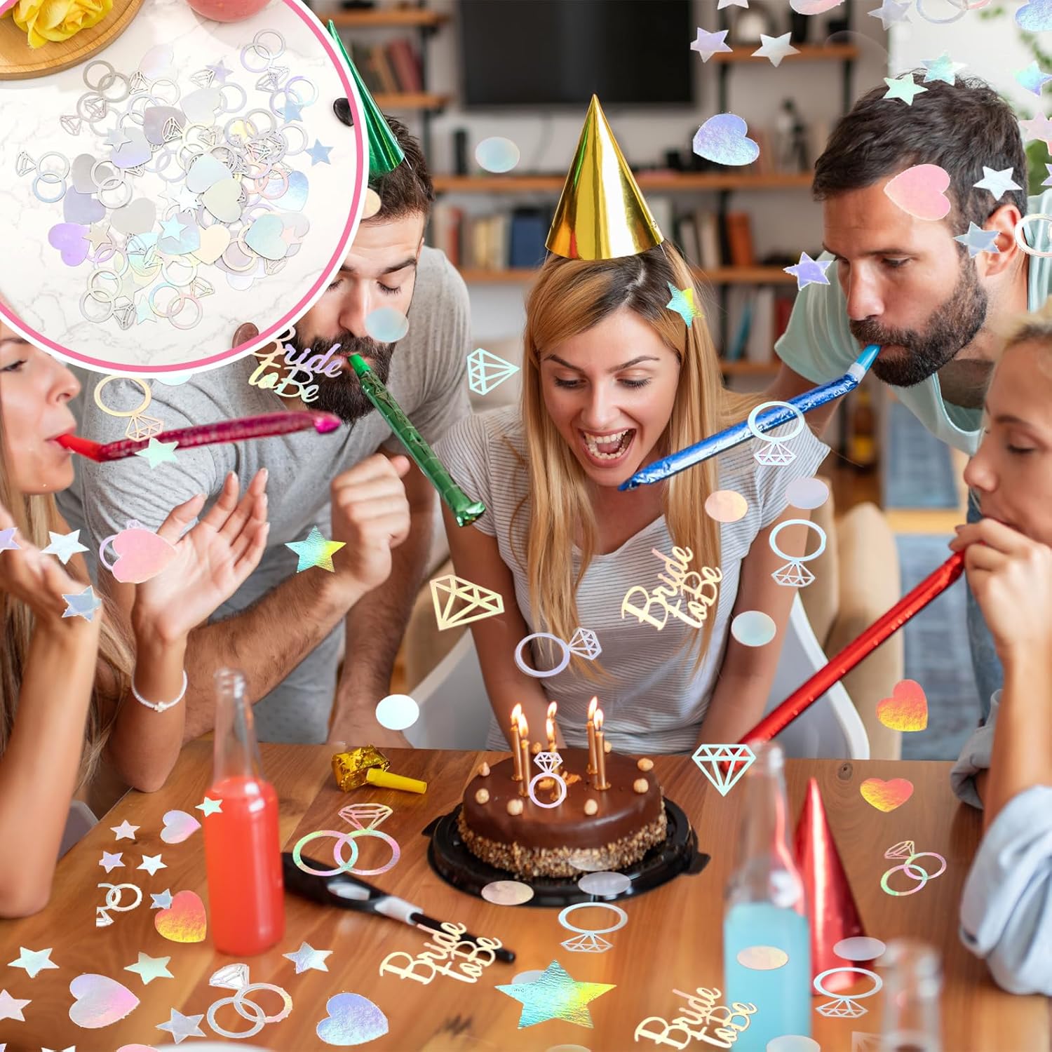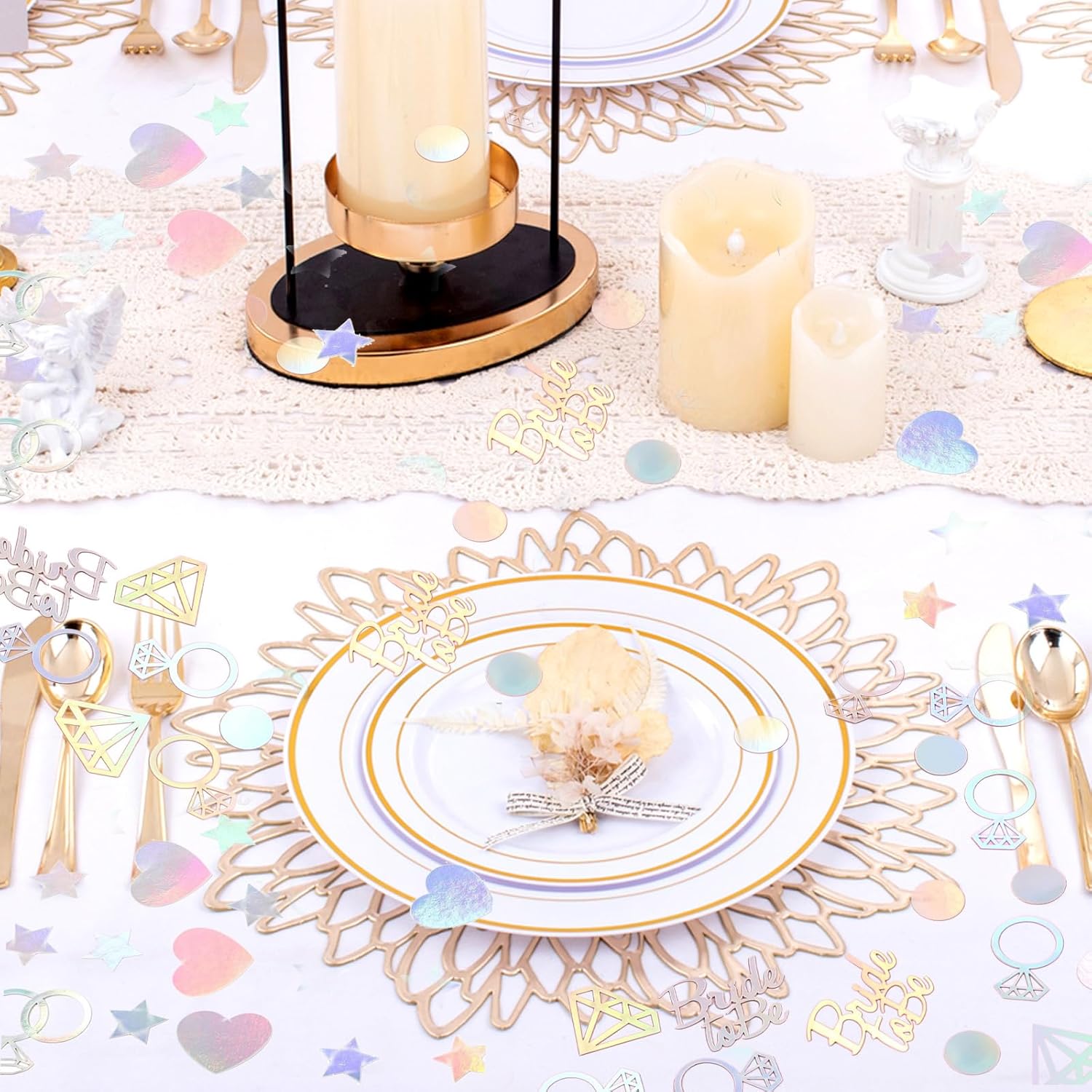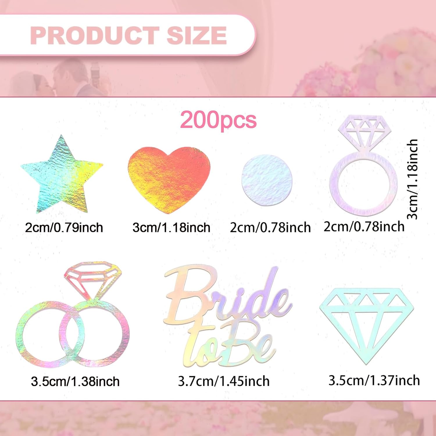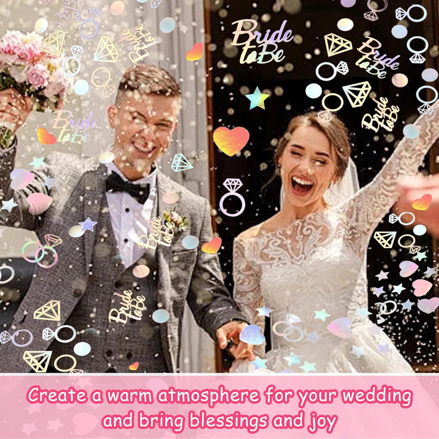 [Design splendido] Questi coriandoli nuziali adottano un design dai colori abbaglianti, con una lucentezza distinta e un'atmosfera meravigliosa, che può aggiungere colore e atmosfera unici alla scena del matrimonio e rendere l'intera scena più bella e romantica. [La confezione contiene] Le nostre decorazioni per la tavola di nozze hanno circa 200 pezzi e sono disponibili in diverse forme, ad esempio anello di diamanti, cuore, stelle, "Bride To Be", ecc. [Materiale premium] Le decorazioni per la tavola di nozze sono realizzate in carta di alta qualità, di colore brillante, non facile da sbiadire, non facile da strappare, riutilizzabile, ideale per creare un'atmosfera romantica per la festa di nozze. [Usi multipli] Questi coriandoli nuziali non sono adatti solo per decorare luoghi di nozze, ma possono anche essere utilizzati per decorare varie altre occasioni, come feste di compleanno, feste, esposizioni commerciali, ecc. Ha molteplici usi. [Facile da pulire] Queste decorazioni per la tavola di nozze possono essere facilmente pulite dopo l'uso senza lasciare residui, che non inquineranno il luogo né renderanno noiosi i lavori di pulizia.