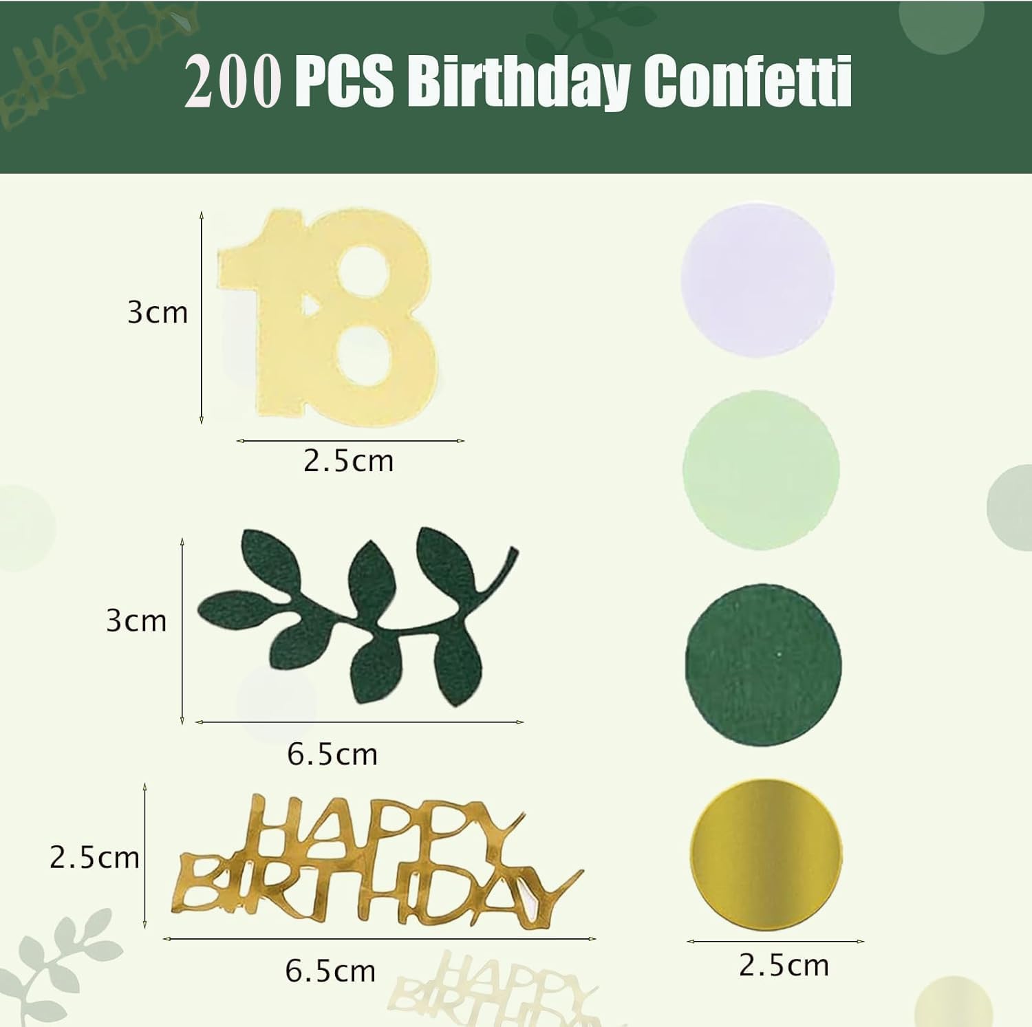 【👑 Speciale per il 18° Compleanno】 Il nostro set contiene 200 pezzi di coriandoli colorati, perfetti per decorare festosamente il 18° compleanno di tuo figlio. Una quantità sufficiente ti consente di decorare tavoli, regali e molto altro ancora. 【✨Design unico per bambini di 18 anni】 La combinazione di foglie di eucalipto verde e coriandoli rotondi colorati in bianco e oro glitterato è accattivante e affascinante, soprattutto per i bambini di 18 anni. Colori e forme varie rendono la festa vivace e interessante. 【💎Sicuro e adatto ai bambini】 I coriandoli sono realizzati con carta velina di qualità, sicura e inodore, appositamente progettata per essere utilizzata nelle feste per bambini come le feste del 18° compleanno. È leggero, resistente e garantisce un utilizzo senza preoccupazioni. 【🎈 Perfetto per il 18° Compleanno】 Combina coriandoli con palloncini e decorazioni da tavola per rendere il 18° compleanno di tuo figlio un'esperienza indimenticabile. Cospargetelo sulla tavola o lanciatelo in aria con i vostri piccoli ospiti – per un'atmosfera allegra e festosa! 【🌷 Versatile per la festa del 18° compleanno】 Ottimo per decorazioni da tavola, biglietti d'invito, supporti per torte, confezioni regalo e altro ancora. Questo set di coriandoli è l'aggiunta perfetta a qualsiasi festa di 18° compleanno e farà brillare gli occhi dei bambini.