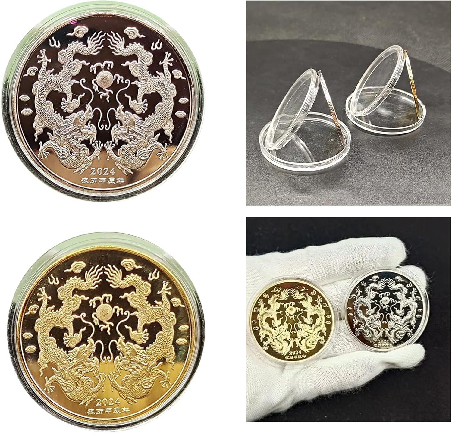 Usali come decorazioni da tavolo, in giochi o omaggi o semplicemente mostra loro bellezza in vetrina. Lascia che i draghi portino fortuna e gioia ai tuoi festeggiamenti. Realizzati con ferro qualità, le nostre monete da collezione garantiscono durata e lucentezza duratura. Con diametro 40 mm, sono aggiunta preziosa a qualsiasi collezione monete. Celebrate nuovo anno cinese 2024 con le nostre splendide monete da collezione con tema del drago accattivante. Queste monete fortunate placcate in oro/argento sono perfette per collezionisti appassionati. Crea atmosfera incantevole alla celebrazione del capodanno cinese o alla festa a tema con le nostre monete da collezione. Progettati per amanti dei draghi e coloro che apprezzano tradizionale cinese, queste monete commemorative regalo ponderato per compleanni, graduazioni o qualsiasi occasione speciale. Porta buona fortuna ai tuoi cari con simbolismo del drago.
