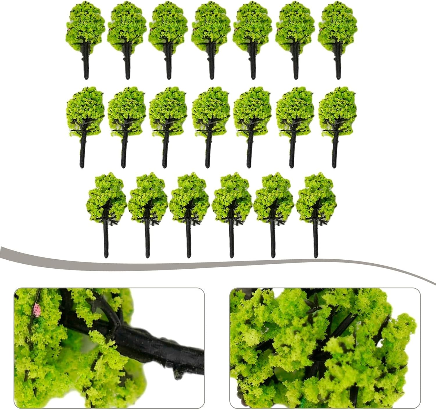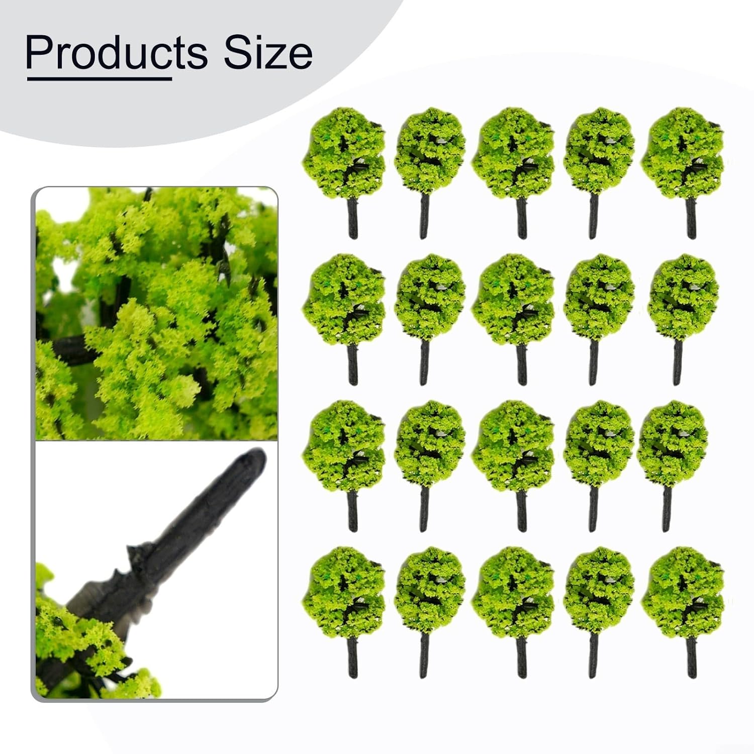 Aspetto realistico: questi alberi modello sono progettati per migliorare l'aspetto dei tuoi modelli di costruzione, tavoli di sabbia, strade e scenari architettonici. Il colore verde brillante e bello aggiunge un tocco di realismo al tuo paesaggio modello. Uso: non solo adatti per decorazioni di modelli, ma questi alberi verdi possono essere utilizzati anche per feste in giardino e decorazioni per la casa. Aggiungono un'atmosfera naturale e vivace a qualsiasi ambiente. Perfetti per amici e compagni di classe, questi alberi modello sono un regalo unico e premuroso per hobbisti e appassionati. Possono essere utilizzati in progetti creativi e portare gioia ai destinatari. Materiale: realizzati in plastica, questi alberi modello sono e di lunga durata. Sono meticolosamente realizzati per simulare alberi veri, fornendo un effetto realistico e visivamente accattivante. Ampia applicazione: questi alberi modello hanno una scala di 1:100 e possono essere utilizzati in ambienti come modelli di costruzione, modelli di tavoli da sabbia, modellini di treni, layout di scene, paesaggi all'aperto, materiali didattici psicologici e giardini paesaggistici per studenti. Sono adatti per scopi diversi.