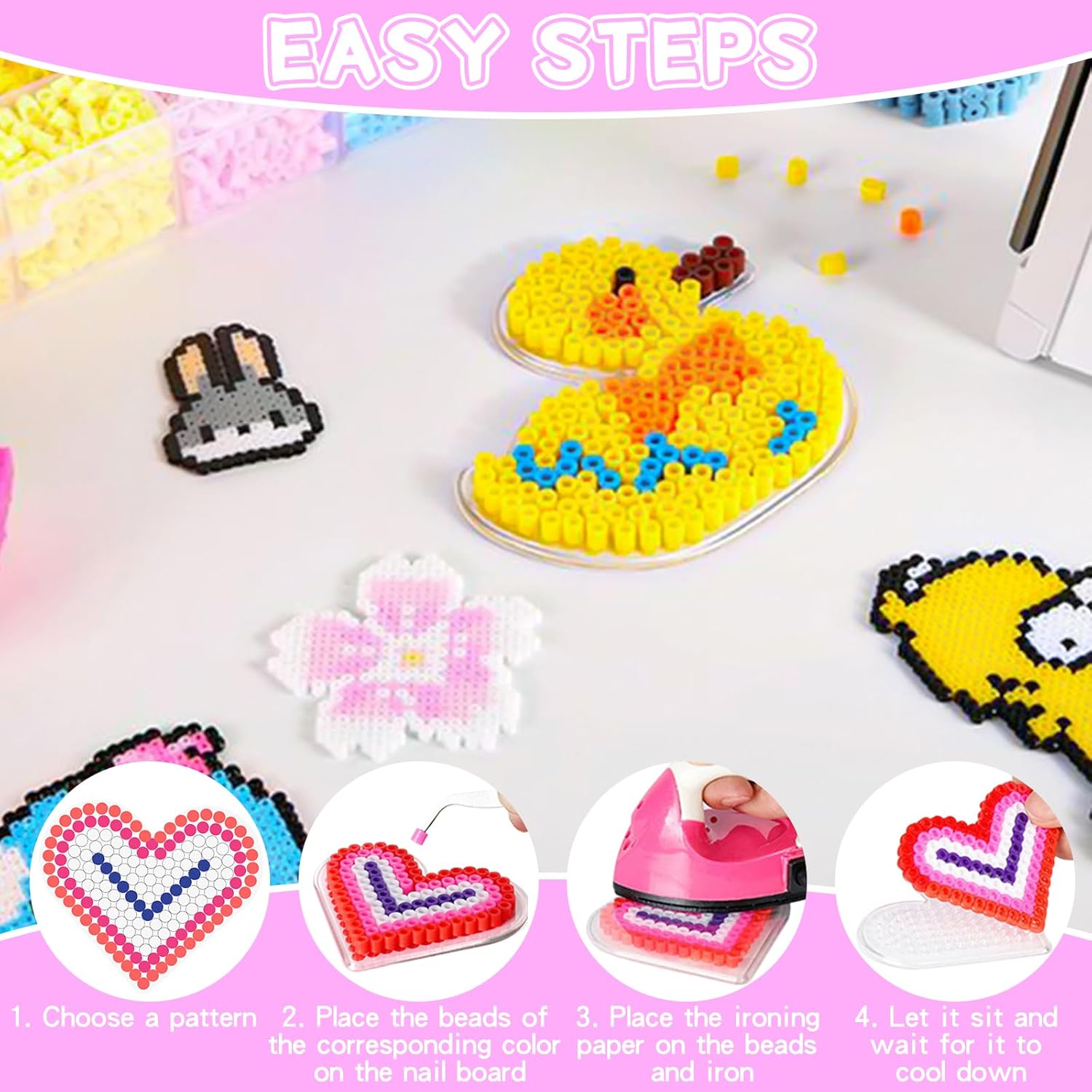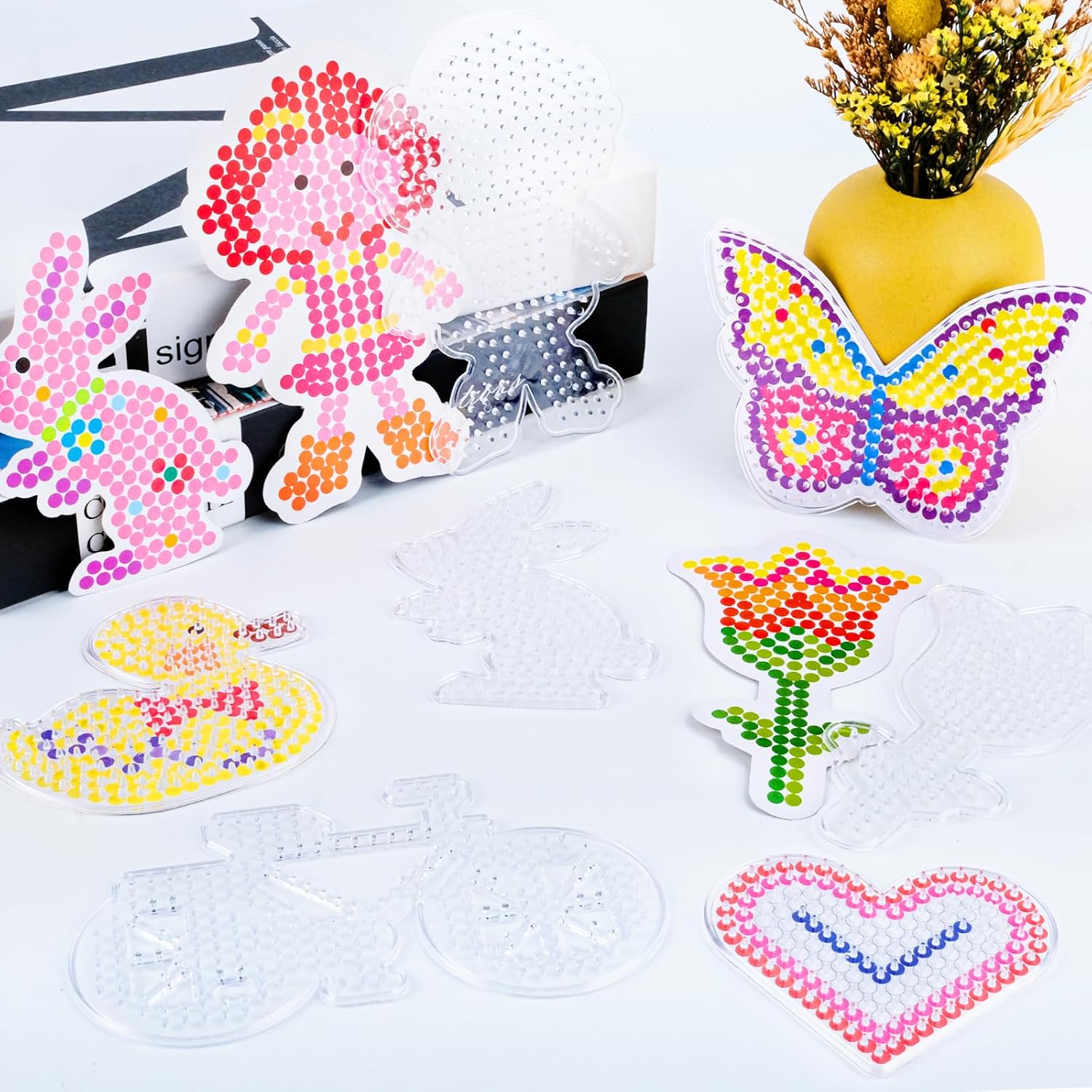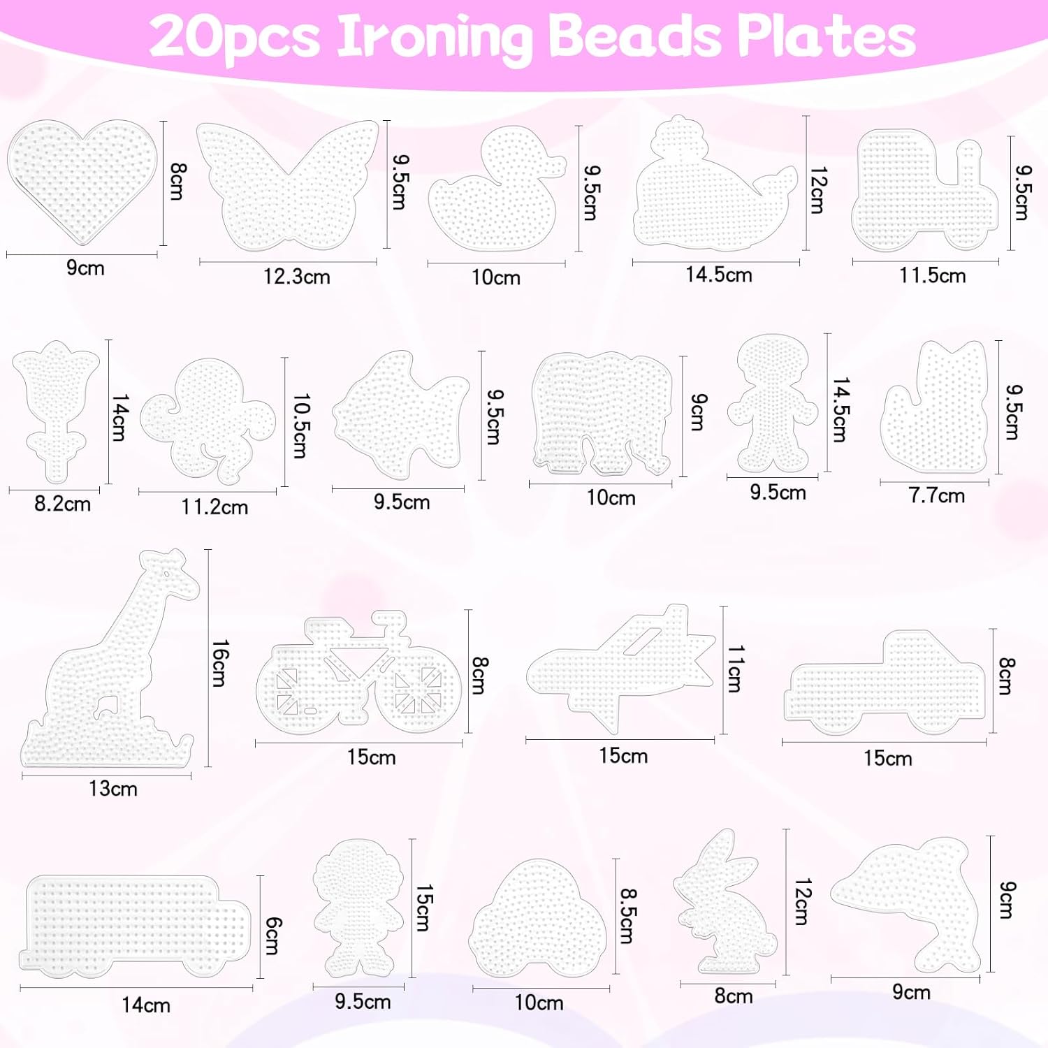 🦊【20 diversi modelli】: la nostra base per perline da stirare contiene 20 diverse forme di piastra per perline da stirare e 20 carte colorate, tra cui pesci, delfini, balene, anatre, polpi, elefanti, giraffe, cuori, farfalle, rose, treni, automobili, aeroplani, biciclette, ecc. 🐳【Materiale sicuro e di alta qualità】Questa base per Perline da Stirare è realizzata in plastica ecologica di alta qualità, sicura e atossica, incolore e inodore. La base per Perline da Stirare non si scioglie né si piega facilmente durante la stiratura, è ben realizzata, resistente e pratica. 🌹【Applicabilità】Questa Piastra per Perline da Stirare è adatta per perle da stiro da 5 mm. Basta posizionare le perline stirabili del colore corrispondente sulle Fuse Beads Boards come indicato sulla scheda, coprire con carta da stiro e utilizzare un ferro da stiro per fondere insieme le perline. 🦋【Libera la creatività】I bambini usano queste basi per perline da stirare per realizzare progetti artigianali secondo le proprie idee, il che promuove le capacità pratiche dei bambini, la discriminazione dei colori, la coordinazione occhio-mano e l'immaginazione. Giocate con i vostri figli, rafforzate il rapporto genitori-figli e godetevi momenti felici insieme. 🚗【Regalo perfetto】Che si tratti del compleanno di un bambino, di Natale o di Pasqua, questo set di piastre per perline da stirare è un'ottima scelta come regalo! Lasciate che i vostri bambini esplorino il mondo dell'artigianato. Questo regalo creativo e divertente piacerà sia ai bambini che alle bambine!
