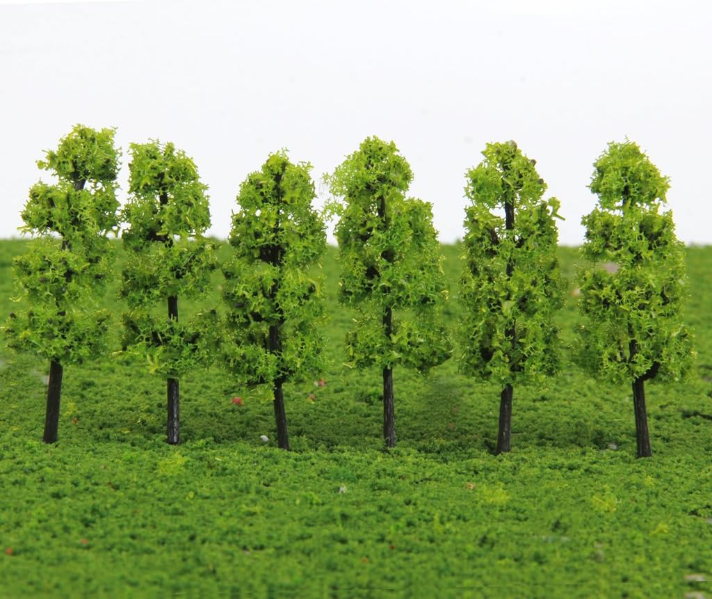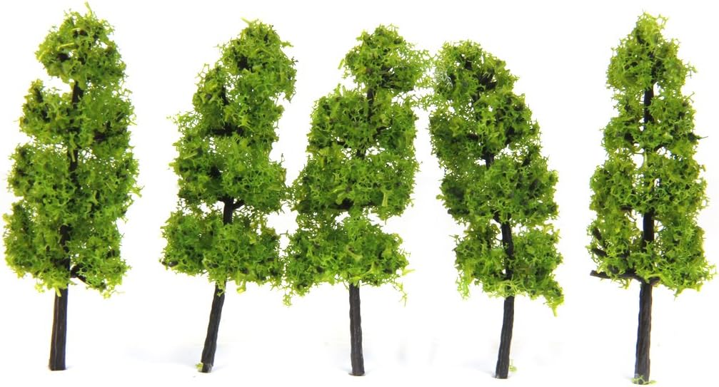 Materiale di alta qualità: realizzato in plastica per un uso duraturo nel tuo diorama o scenario di giochi di guerra. Design realistico: presenta colori verde scuro e verde chiaro per un look naturale, migliorando il paesaggio del tuo modello. 【Scala perfetta】: modelli di alberi in scala 1:200, alti circa 6,3 cm, per layout di treni e diorami in scala Z. 【Uso versatile】: ideale per migliorare layout di modellini, terreni di giochi di guerra e scene di diorama in miniatura. Set completo: include 20 alberi modello (10 verde scuro e 10 verde chiaro) per la creazione di scenari vari e realistici.