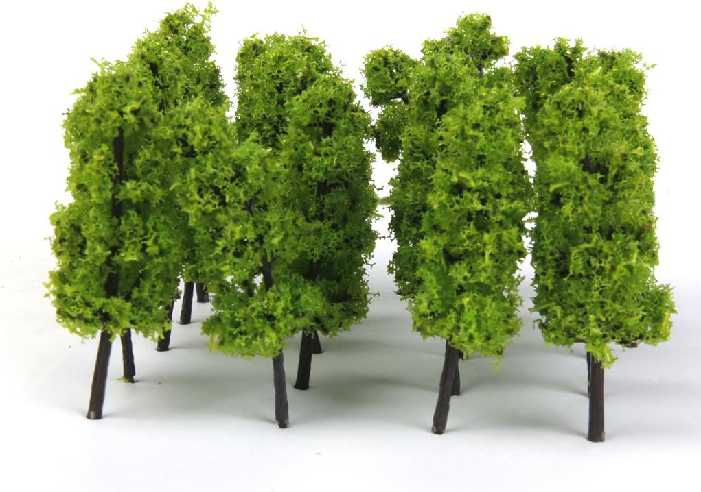 Migliora i paesaggi del modello: perfetto per aggiungere un tocco di verde ai tuoi paesaggi modello, migliorando l'aspetto generale con alberi realistici verde scuro e verde chiaro. Precisione della scala: progettati in scala 1:200 precisa, che li rende adatti per layout di treni in scala Z, diorami e scenari di giochi di guerra. Materiale plastico di alta qualità: realizzato in plastica, garantisce longevità e resistenza per un uso ripetuto in vari ambienti. Uso versatile: adatto per una vasta gamma di applicazioni, tra cui modellini ferroviari, miniature da gioco di guerra e diorami in miniatura. Set completo: include 20 alberi modello (10 verde scuro e 10 verde chiaro), fornendo un'ampia varietà per le tue esigenze di decorazione della scena.