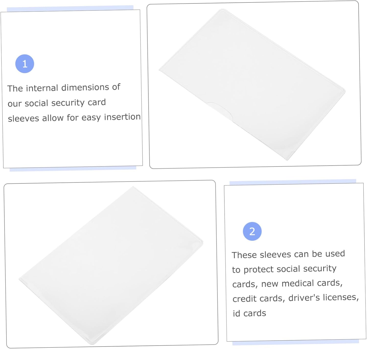 Chiara visibilità: con elevata trasparenza su entrambi i lati, le nostre buste per carte consentono una facile visualizzazione delle carte e un rapido riconoscimento del testo durante la scansione, migliorando la comodità, buste protettive per carte, protezioni per carte Ampia applicazione: adatte per proteggere tessere di previdenza sociale, tessere mediche, carte di credito, carte di guida, carte d'identità e biglietti da visita, queste custodie sono altamente versatili, buste per carte collezionabili, buste per carte di credito in plastica Protezione totale della carta: queste custodie per carte di credito offrono una protezione completa contro usura, strappi e sporco, mantenendo le tue carte sicure e pulite, coperture per carte di debito, custodie trasparenti per carte di credito Materiale in pvc: realizzate in pvc, le nostre custodie per carte sono più lisce, più flessibili e resistenti alle crepe, fornendo protezione per le tue carte, custodia porta biglietti da visita, custodia per carte Protezione multiuso: ideale per proteggere tessere di previdenza sociale, tessere mediche, carte di credito, carte di guida, carte d'identità e biglietti da visita, queste custodie offrono una protezione versatile, coperture per carte di credito, custodie trasparenti per carte