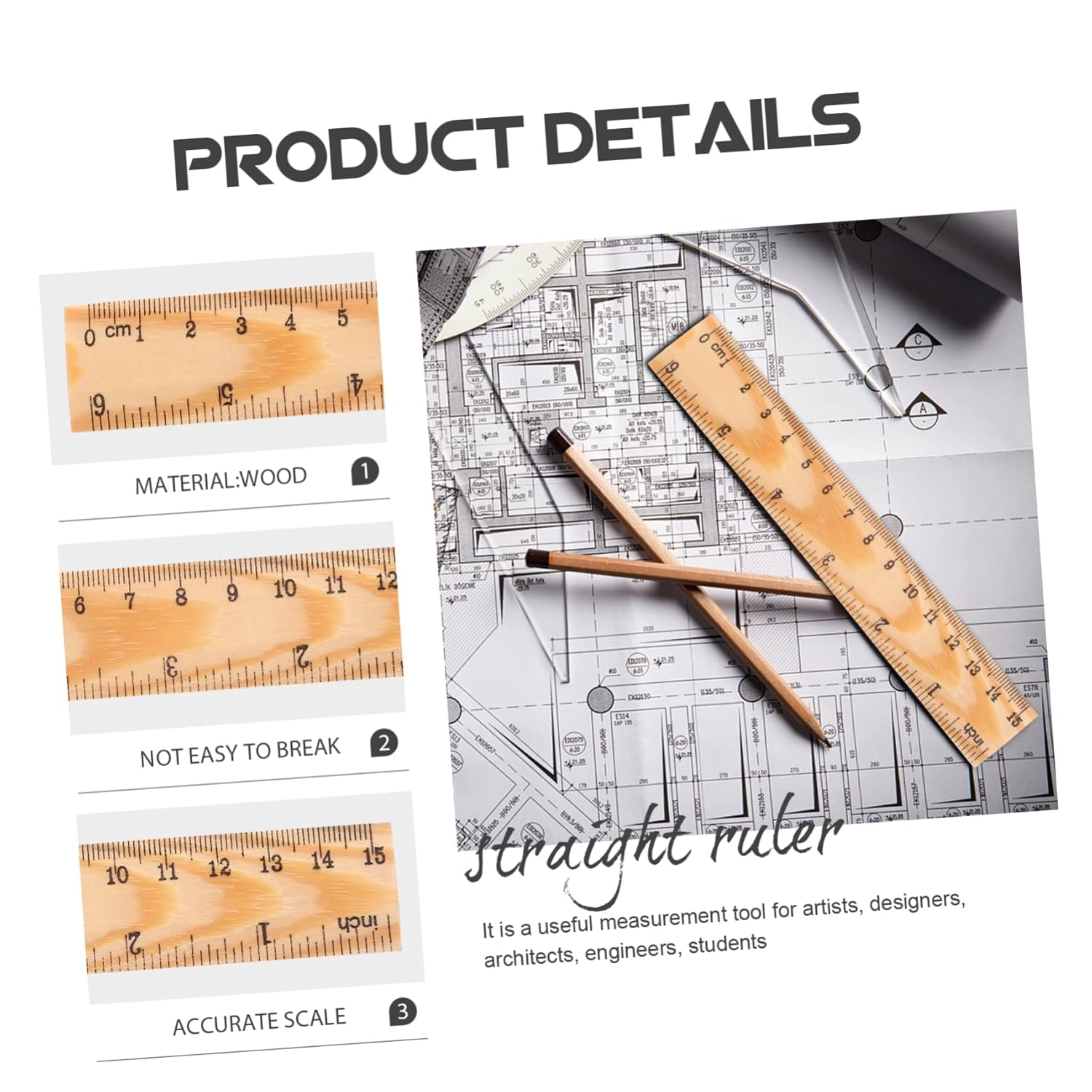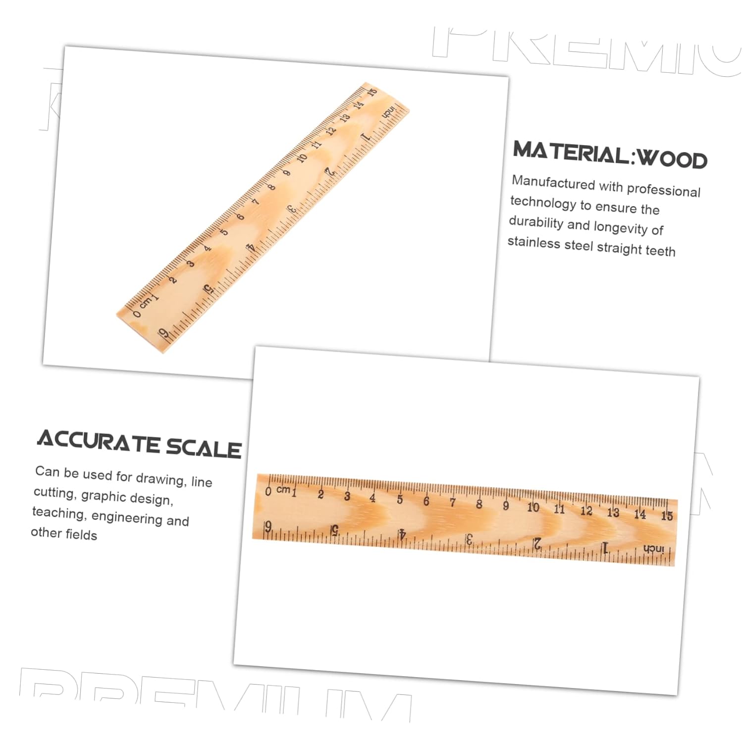 Righello dritto multifunzione: prodotto con tecnologia professionale per garantire la durata e la longevità del righello dritto in legno. Righelli con bordi dritti: scala precisa, facile da indossare, e resistente, la superficie riflette facilmente la luce. Righelli tecnici: è facile memorizzare e posizionare il righello inizi a misurare le misure del disegno, ecc. Righello per bambini: è facile riporre e posizionare il righello inizi a misurare le misurazioni, ecc. Scala di misurazione: adatta per aule, uffici, case, ecc. un ottimo assistente di misurazione.