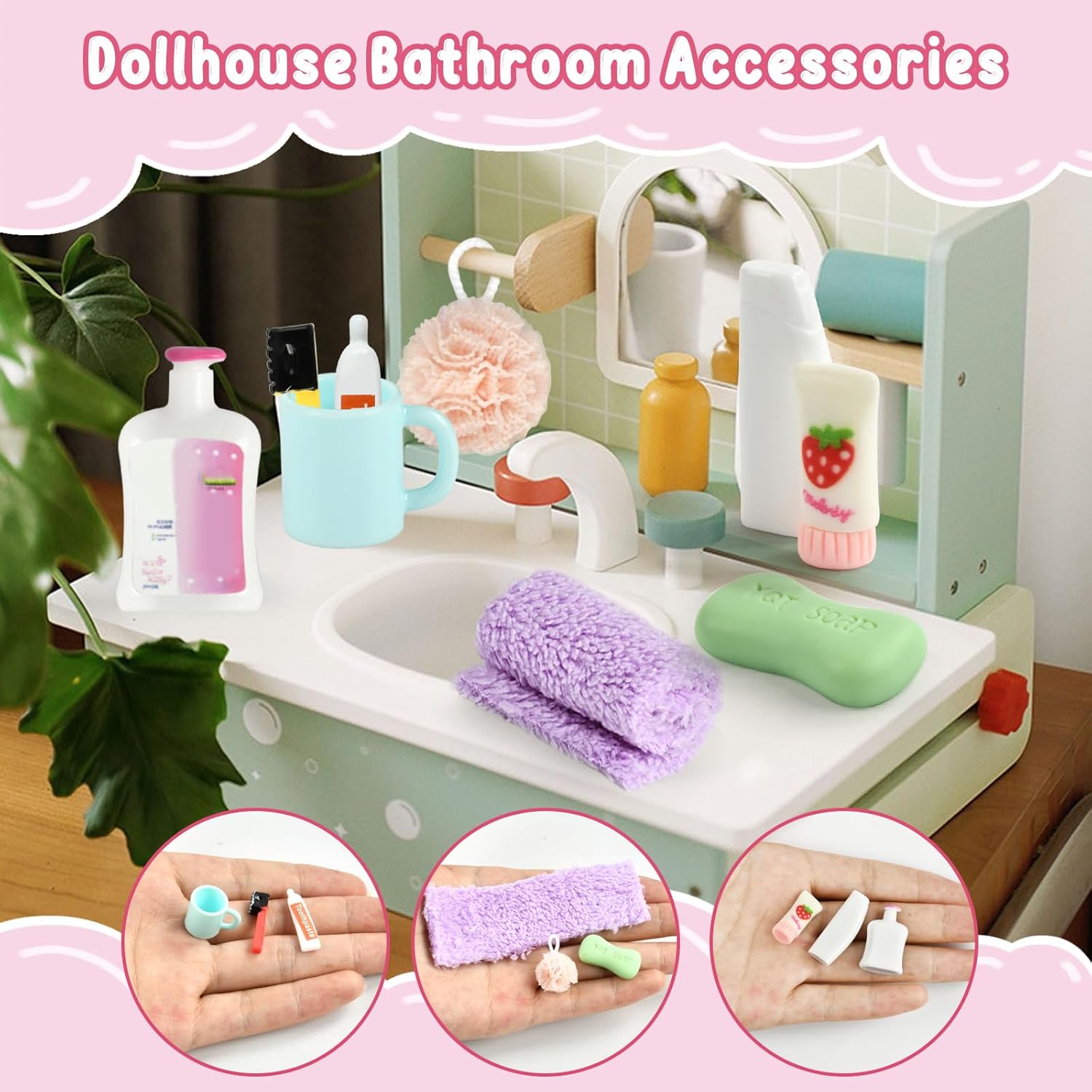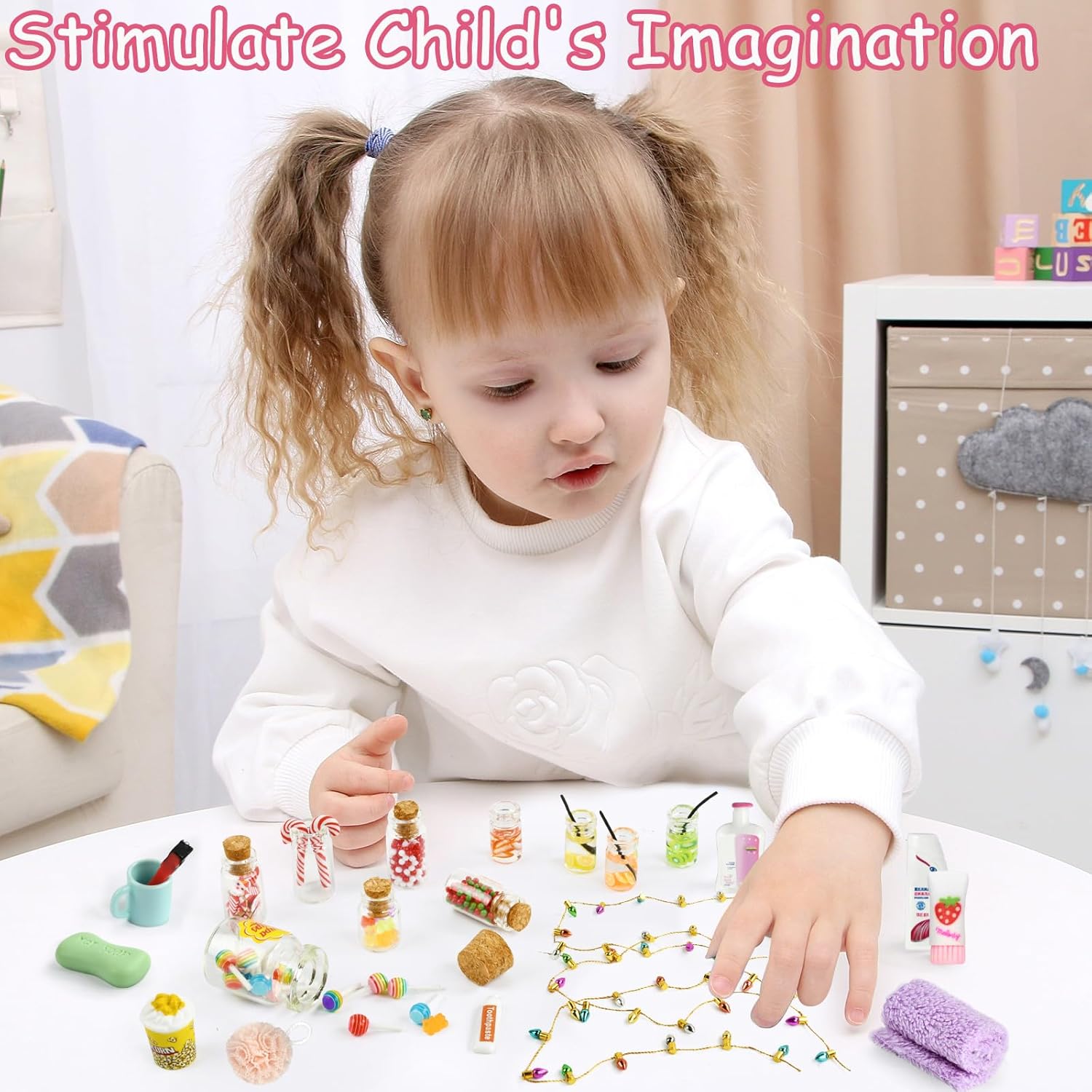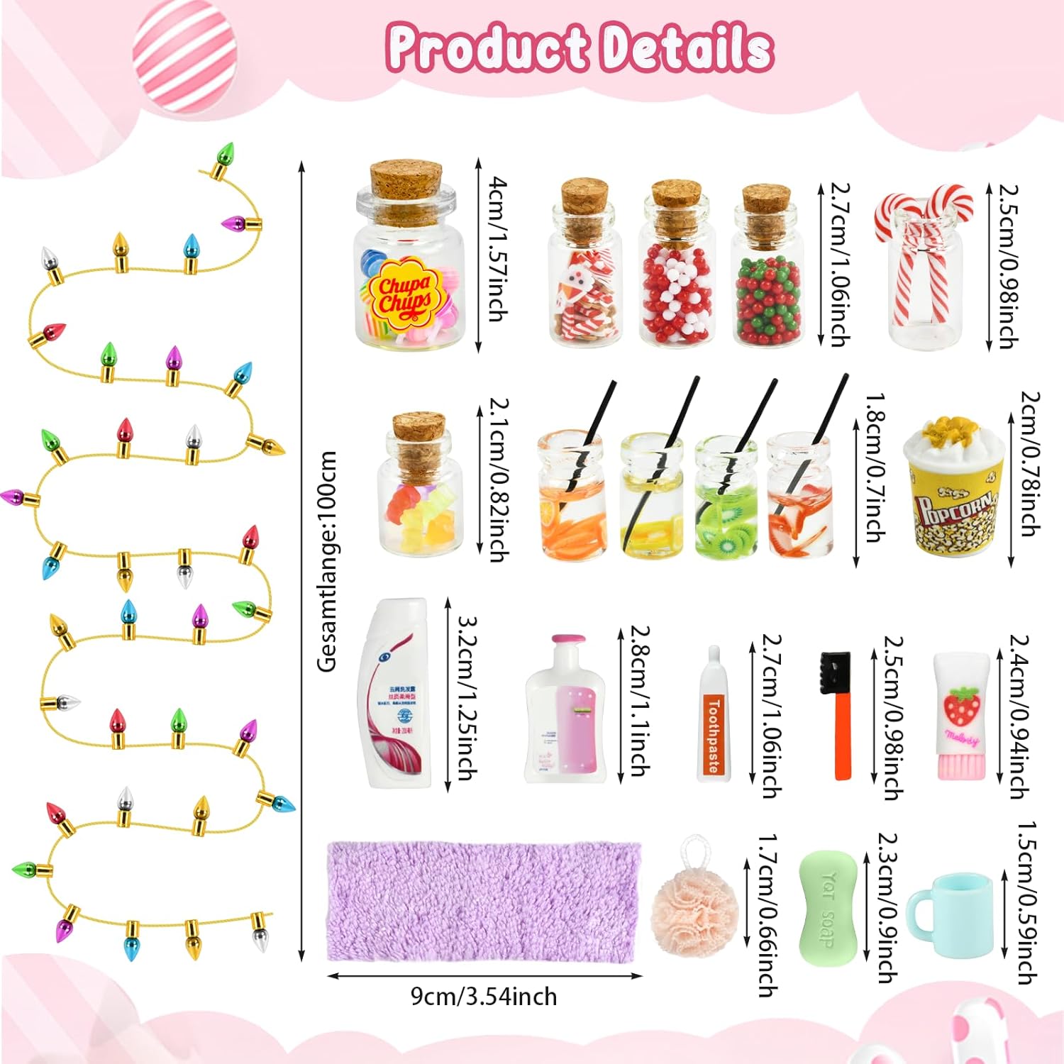 【Accessori decorativi in miniatura】 Il design 1/12 e i colori retrò rendono qualsiasi decorazione in miniatura realistica, decorazione perfetta per case delle bambole e gnomi. 【Materiale sicuro】I modelli alimentari in miniatura delle case delle bambole sono realizzati in resina di alta qualità, non tossica, sicura, leggera, resistente e sicura per i bambini. Nota: non commestibile. 【Mini formato】Le nostre case delle bambole in miniatura hanno una dimensione di circa 2-3,5 cm, realistiche e accattivanti, perfette per decorare varie scene di case delle bambole e possono portare molto divertimento alle bambole. 【Ampio utilizzo】i nostri accessori in miniatura non sono adatti solo per decorare le case delle bambole, ma possono anche essere utilizzati come collezioni di miniature, decorazioni per torte di compleanno e persino come oggetti di scena per bellissime foto. Che vengano utilizzate per la decorazione o per il gioco, queste miniature aggiungono ulteriore bellezza e divertimento a una varietà di ambienti. 【Set di scene per casa delle bambole】 Riceverai un set di accessori da bagno in miniatura, un set di caramelle e bevande in miniatura e una stringa luminosa in miniatura (non luminosa), che può soddisfare le esigenze di decorazione della casa delle bambole. Si prega di notare che sono inclusi piccoli oggetti, quindi i bambini di età inferiore a 3 anni devono essere accompagnati da un adulto per giocare con i mini giocattoli.