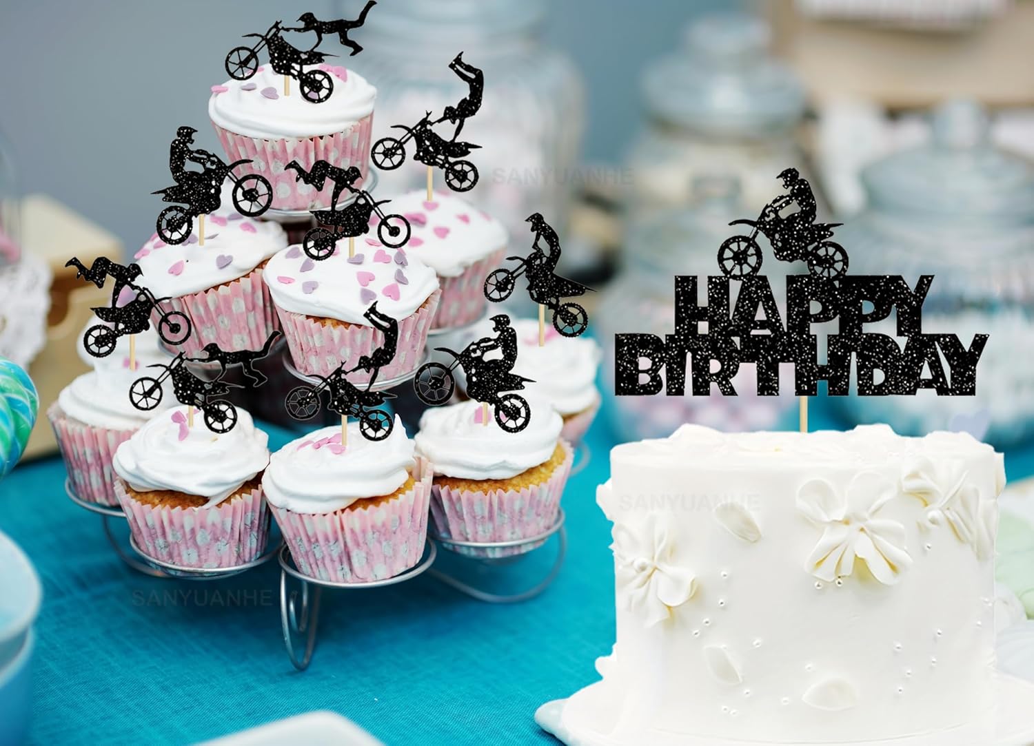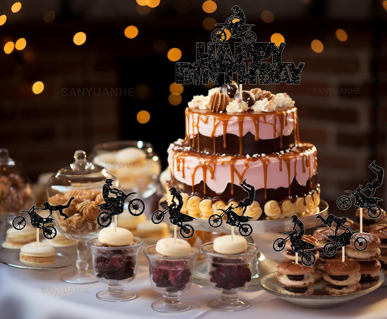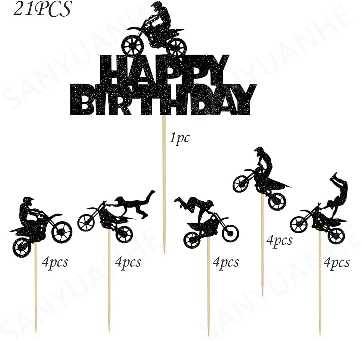 Decorazione per torta di compleanno per moto da corsa: riceverai questa decorazione per torta nera lucida da 25 pezzi, composta da 1 biglietto di compleanno per moto e 1 x 24 (5 istruzioni) diverse decorazioni per torte nere per moto, sufficienti per soddisfare le esigenze della tua festa di compleanno e rendere la tua festa indimenticabile. Decorazione per torta auto Racing Car Dirt Bike: questa decorazione per torta moto nera lucida è divertente, carina e emana anche un luccichio sottile ed elegante con cui puoi decorare torte, dessert, cupcake, muffin, gelatine, pane e frutta per fare una buona impressione che soddisfi le tue esigenze per diverse feste, aggiungerà più gioia alla tua festa di compleanno e crea un'atmosfera molto romantica. Tema di compleanno per moto da corsa nera: questa decorazione per torta moto nera è un tema nero lucido moto che trasmette un'atmosfera di velocità e avventura che aggiunge atmosfera alla vostra festa di compleanno. Auto Racing Car Dirt Bike Materiale: questa decorazione per torta moto nera lucida è realizzata in cartone spesso scintillante e bastoncini di bambù, inodore e sicuro. I bastoncini di bambù sono privi di sbavature e possono essere facilmente inseriti in torte o cupcake, in modo da poterli utilizzare in tutta tranquillità, divertirsi e creare meravigliosi ricordi per la famiglia e gli amici. Ampia applicazione: questa decorazione per torta moto nera lucida è ampiamente utilizzata in una varietà di occasioni, come ad esempio: feste a tema moto, feste a tema motocross, feste a tema sportivo e motocross, decorazioni per torte di compleanno per ragazzi, temi sportivi motoristici e altre occasioni.