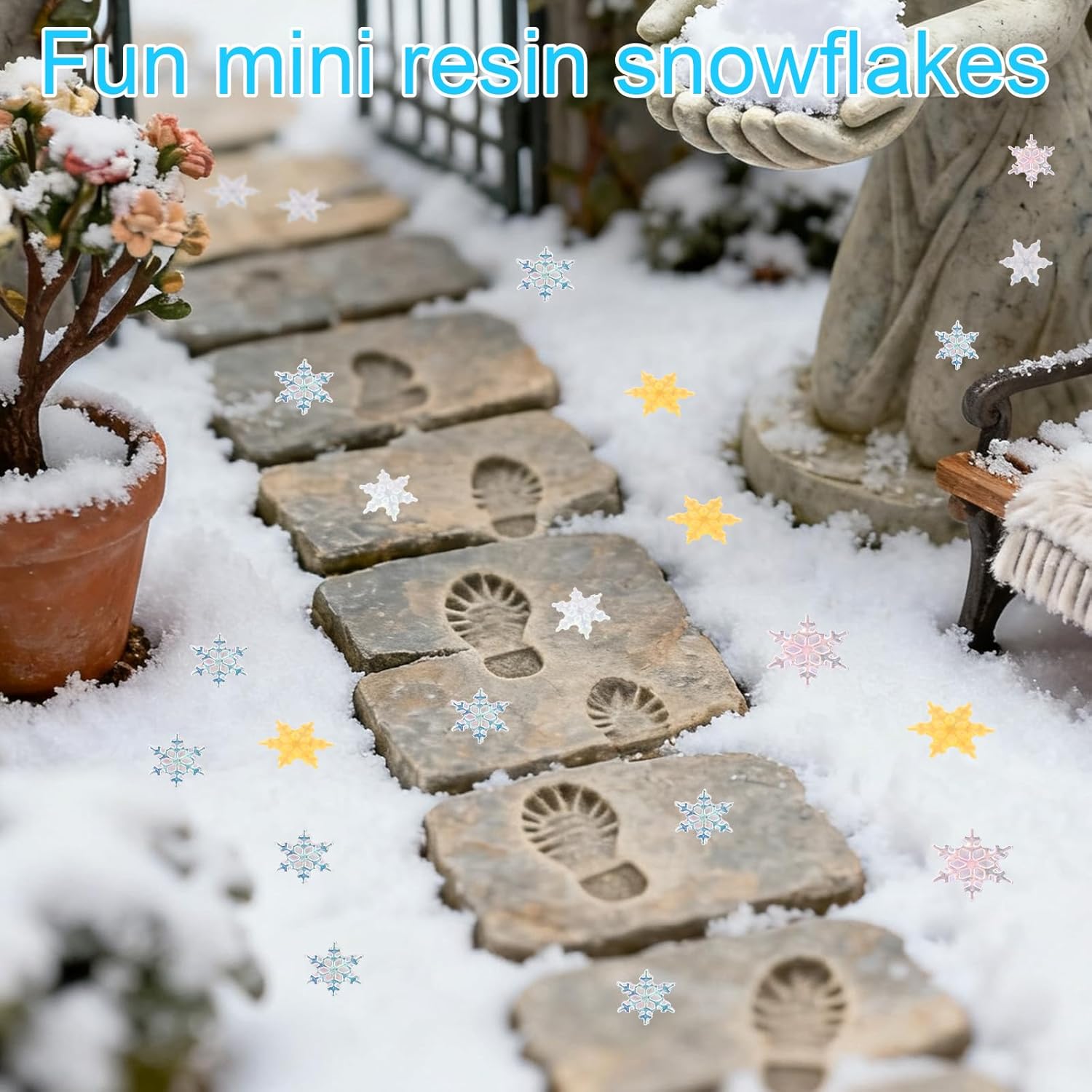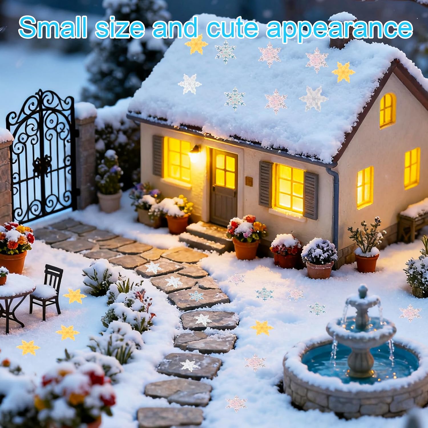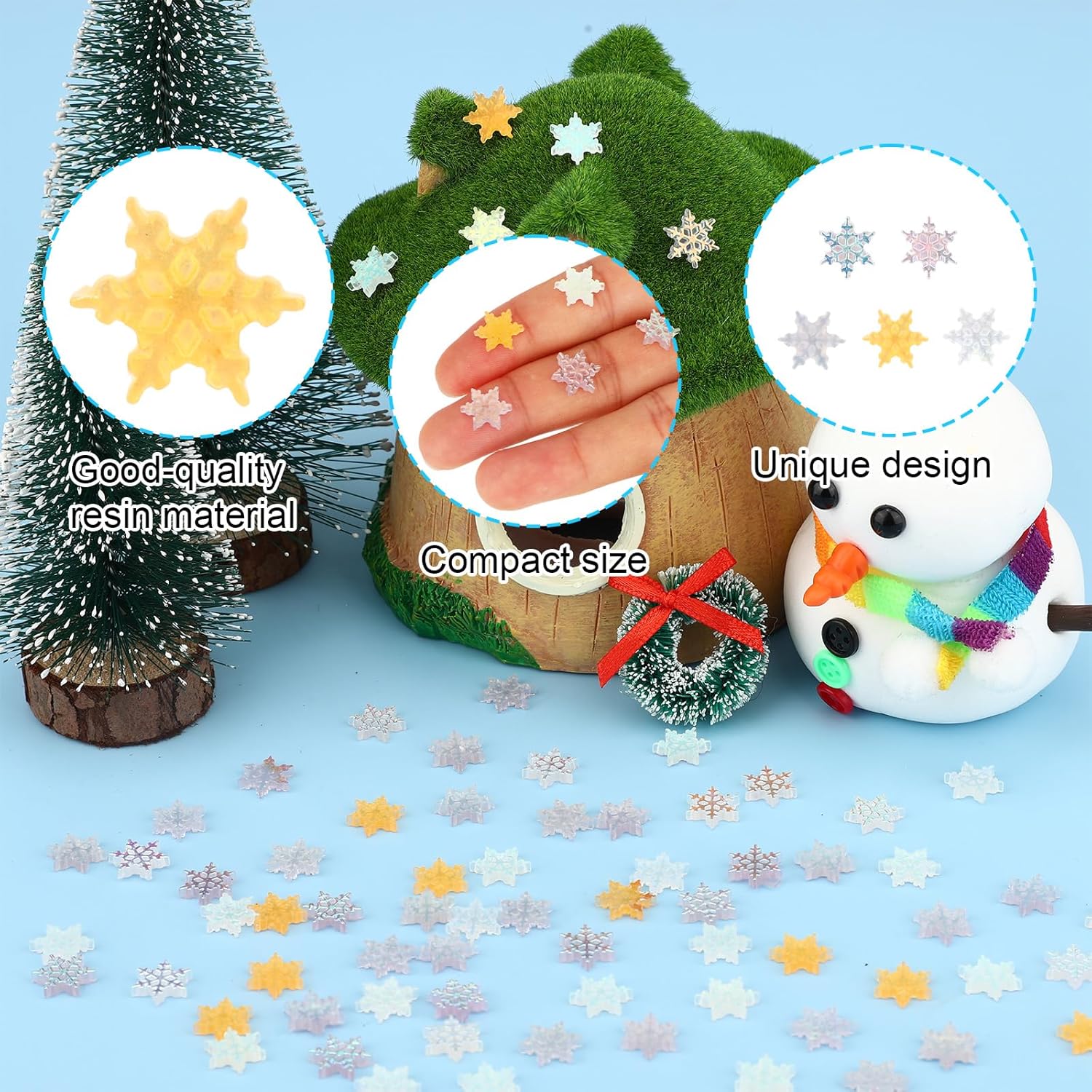 Prodotto incluso: riceverai 210 pezzi di ornamenti con fiocchi di neve in miniatura. Questo numero sufficiente di mini fiocchi di neve può soddisfare le tue esigenze di utilizzo quotidiano e di sostituzione. Materiale di qualità: gli ornamenti in miniatura con fiocchi di neve sono realizzati in materiale di resina di alta qualità per una lunga durata. Non sono facili da sbiadire o rompersi, quindi puoi usarli con sicurezza. Dimensioni del prodotto: gli ornamenti in miniatura con fiocchi di neve sono ca. 1,1 x 1,1 centimetri. Sono piccoli e leggeri, facili da trasportare. Puoi decorarli ovunque tu voglia. Design speciale: questi piccoli fiocchi di neve in resina presentano disegni con texture chiare e colori misti, che possono soddisfare le tue esigenze per feste di Natale o decorazioni domestiche. E possono aggiungere un'atmosfera calda alla scena. Ampia applicazione: i mini ornamenti in resina con fiocchi di neve sono perfetti per giardini in miniatura, case delle bambole, feste di Natale o decorazioni domestiche, aggiungendo un'atmosfera divertente all'ambiente.