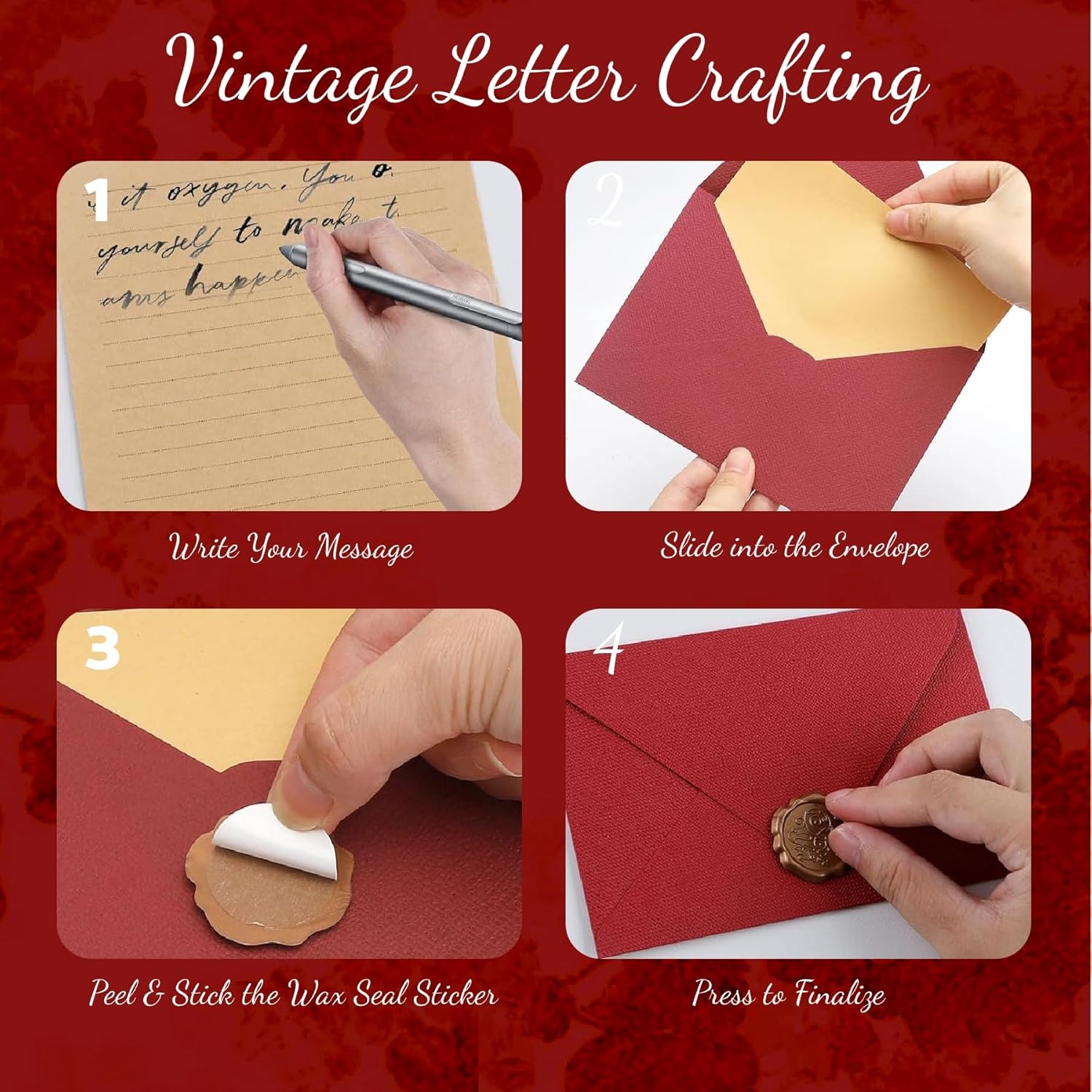 Contenuto della confezione: Riceverai 6 buste lettere di carta vintage (3 color lino bordeaux e 3 color lino bianco), 6 sigilli di ceralacca e 10 fogli di carta da lettere kraft a righe. Puoi aggiungere piccoli elementi alle buste per creare il tuo stile unico Materiale preferito: Le buste per cancelleria vintage sono realizzate in lino. La superficie della busta è trasparente, la consistenza è confortevole e non si strappa o si deforma facilmente. È buste da lettera dotata di un adesivo con sigillo di ceralacca (con nastro biadesivo sul retro) da incollare contemporaneamente. È retrò, classica, comoda ed elegante Dimensioni adatte: Le dimensioni della busta spessa sono 16,3 x 11,2 cm, che può contenere più fogli di carta da lettere. Le dimensioni del sigillo di ceralacca sono 3,2 cm e le dimensioni della carta da lettere sono 21,6 x 14,2 cm. La carta da lettere offre ampio spazio di scrittura, permettendoti di esprimere appieno pensieri, sentimenti e benedizioni Design artistico vintage: il set di busta lettera è progettato con toni caldi, aggiungendo un'atmosfera nostalgica e retrò alle tue lettere, rendendole più accattivanti. La carta kraft gialla utilizzata per la carta da lettere può alleviare l'affaticamento visivo durante la scrittura, permettendoti di scrivere e registrare quanto esiderdi Ampia gamma di usi: molto adatta per scrivere lettere, biglietti invito, lettere di laurea, inviti di nozze, ecc. e può anche essere utilizzata per conservare foto, cartoline e varie lettere ricevute, permettendoti di conservare il senso di cerimonia che ti appartiene