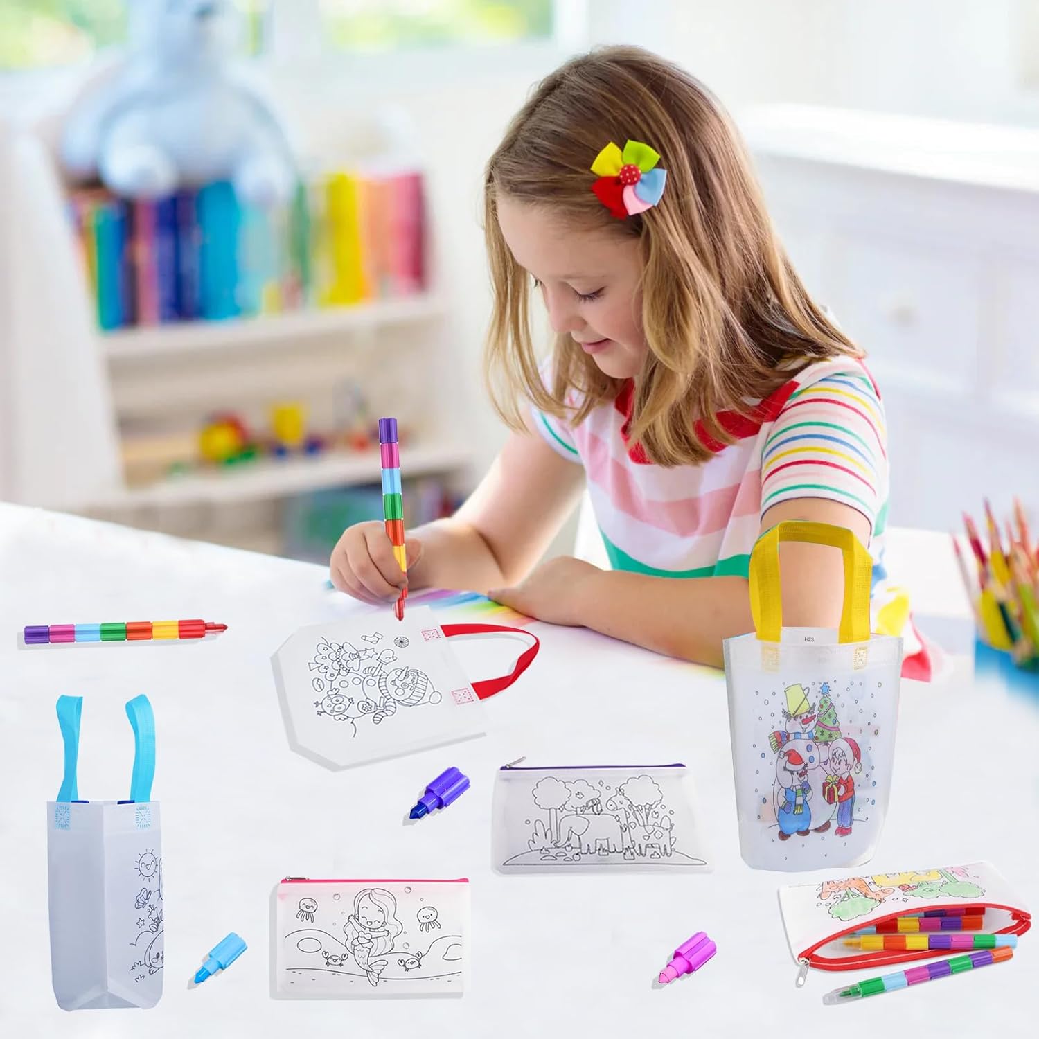 Set di sacchetti di stoffa per dipingere: riceverete 12 custodie per graffiti fai da te per bambini e 12 pastelli a cera impilabili. Le borse sono disponibili in diversi stili e colori tra cui scegliere. Ogni pastello a cera è composto da dieci piccoli pastelli di diversi colori, in modo da utilizzare solo un pastello a cera per tutti i tuoi desideri di colore! (Nota: il colore della tracolla della borsa è casuale) Pratica e graziosa borsa: ogni borsa da dipingere per bambini misura 22,5 cm x 23,5 cm, adatta per riporre giocattoli, caramelle o come sacchetti regalo di compleanno per bambini. Le borse in tessuto per la pittura sono realizzate in tessuto non tessuto, una stampa chiara e maniglie solide. 10 colori in 1 pastelli a cera impilabili: questo pastello a cera è molto interessante. Puoi smontare e riorganizzare le matite colorate, il che non solo raggiunge una matita colorata per disegnare più colori, ma anche in grado di assemblarli a caso a proprio piacimento, per costruire una varietà di modelli, in modo che i bambini possano godere di un diverso tipo di divertimento mentre disegnano. Un talento per disegnare: questo set di borse per graffiti fai da te per bambini può aiutare. In combinazione con le matite colorate, i bambini possono facilmente colorare i motivi e avere esperienze di successo durante la colorazione, ogni bambino può colorare i sacchetti in modo unico. Sacchetti in tessuto multifunzionali: per feste fai da te, regali per feste, feste, articoli per la spesa, sacchetti per neonati, sacchetti regalo, sacchetti verdi, scuola, regali di compleanno, soprattutto per Halloween, Natale e persino feste di compleanno, ecc. Questo set di sacchetti di stoffa per bambini fai da te può anche essere un'ottima attività per gruppi di bambini, sia a scuola, alle feste di compleanno o in famiglia.