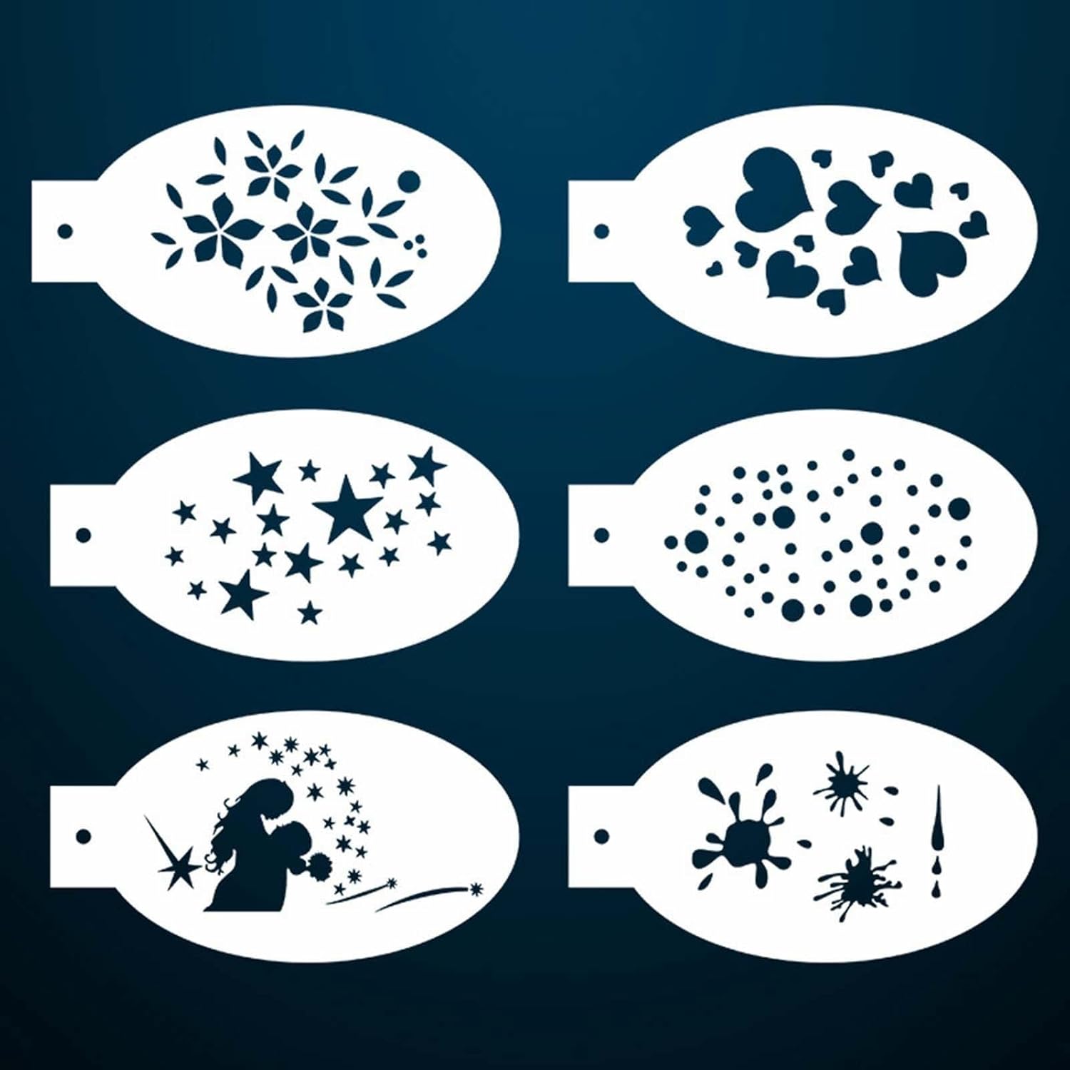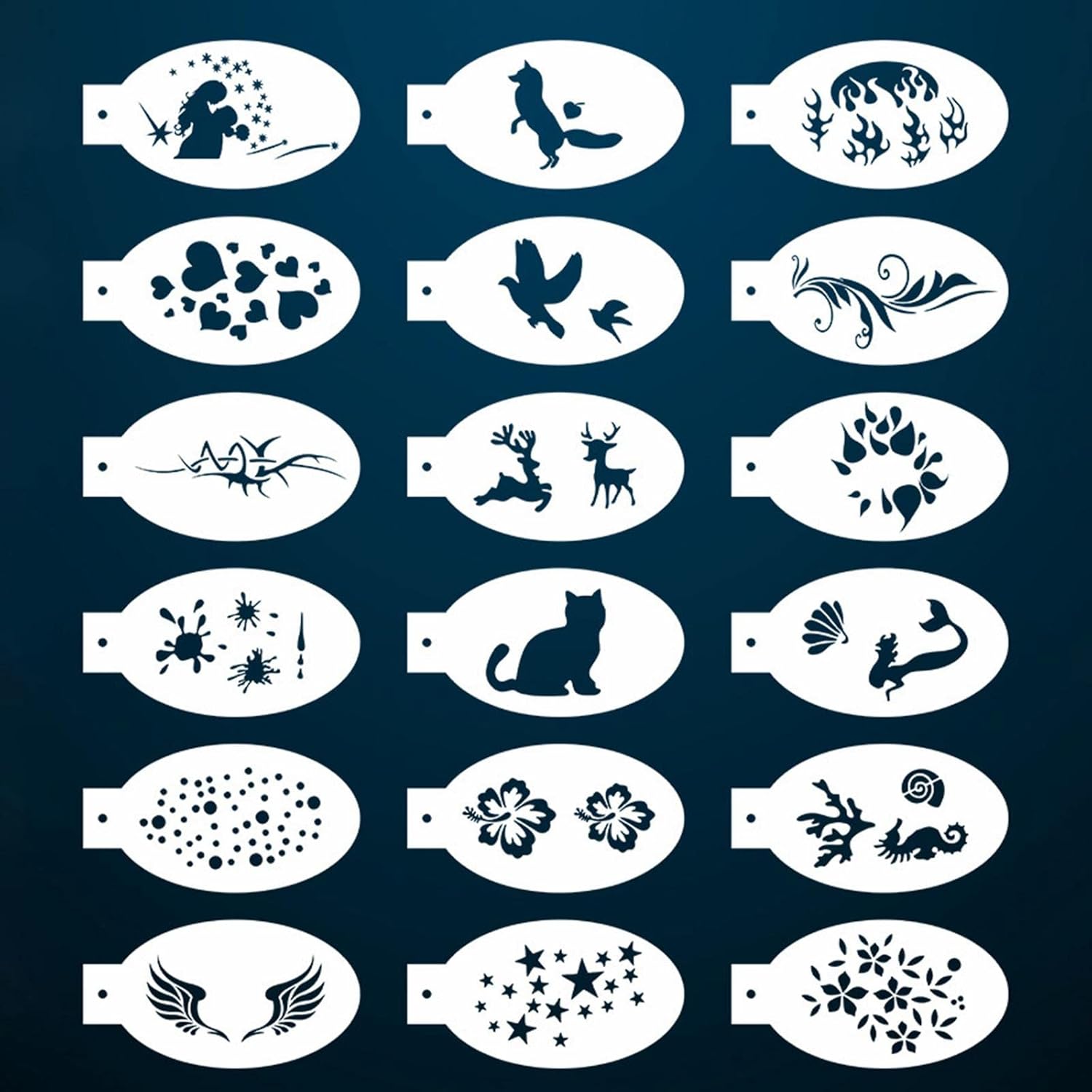 MATERIALE AFFIDABILE: questi stencil sono realizzati in materiale PET di qualità, superficie pieghevole e liscia, non graffiano la pelle delicata durante l'utilizzo, riutilizzabili e durevoli. MODELLI MULTIPLI: Gli stencil per la pittura del viso includono 23 modelli, per la pittura del corpo, quantità e stili sufficienti. LAVABILE: Pulisci facilmente, usa solo per pulire facilmente gli stampini. ARTE CREATIVA DELLA PITTURA DEL VISO: Crea vari modelli Corpo, adatto a feste, eventi, mascherate e altri festival. UTILIZZO: non solo per dipingere il viso, ma anche per creare pattern di altre parti del corpo.