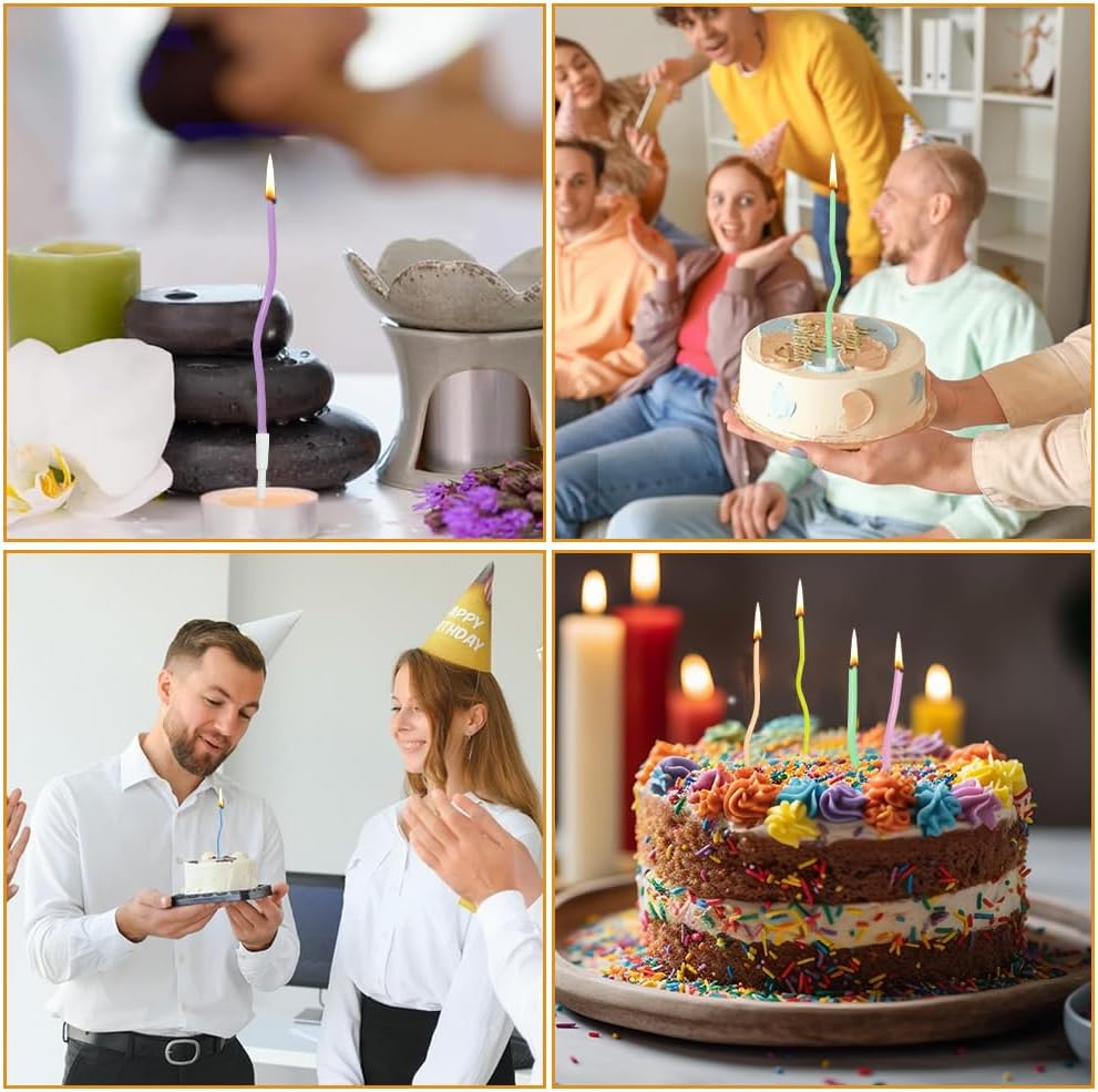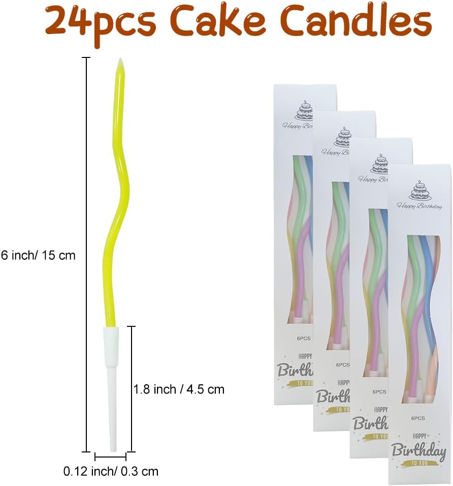 Contenuto della confezione: riceverai 24 candele di compleanno tortuose in 4 scatole, ogni scatola per 6 pezzi, la giusta dimensione e motivi per la tua comodità per decorare la tua torta, impressionare facilmente i tuoi amici e ospiti. Dimensioni adatte: ogni candela per torta tortuosa misura circa 15 cm di lunghezza (incluso supporto), 0,3 cm di diametro, la dimensione del supporto in plastica è di circa 4,5 cm di lunghezza, dimensioni generali da usare, adatto per la maggior parte delle torte. Design a spirale: queste candele per torte sono progettate con forme a spirale, sembrano molte fate che ballano sulla torta, facili da creare un'atmosfera romantica; i supporti in plastica aiutano a evitare di rompere la bella superficie della torta. Inodore e atossico: le candele per torte di compleanno sono realizzate in materiale di cera di qualità, inodore e atossico, sicure per l'uso, le candele sottili possono decorare perfettamente la tua torta. Belle candele per ogni occasione: le candele di compleanno a spirale sono adatte per tutti i tipi di feste o occasioni speciali, come compleanni, matrimoni, feste, baby shower. Adatto anche per la decorazione di bar, pasticcerie, panetteria. Crea un'atmosfera luminosa e calda.