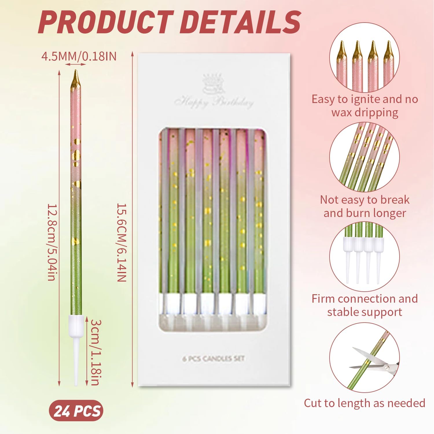 Divertente design a tema strega: queste affascinanti candele di compleanno rosa e verde sono perfette per feste di Halloween, feste di streghe o feste di compleanno a tema fantasia. Così diverso dalle normali candele! Qualità premium e lunga durata: realizzate con cera di paraffina atossica e senza fumo, queste candele di compleanno per torte bruciano abbastanza a lungo per cantare buon compleanno e esprimere desideri. Nessuna goccia di cera, nessun danno alla tua torta! Perfette per qualsiasi torta o dessert: queste candele sottili per torte misurano 13 cm di altezza, perfette per cupcake, torte a più livelli o tavoli da dessert. Sono anche facili da tagliare se hai bisogno di candele più corte per dolci più piccoli. Riutilizzabile: estinguere e tagliare gli stoppini per riutilizzarli per una varietà di occasioni! Le candele per torta di compleanno rosa e verde da 24 pezzi sono perfette per feste o decorazioni per la casa. Ampia applicazione: la candela di compleanno è perfetta per compleanni di Halloween, vacanze pagane o matrimoni a tema occulto. Le brillanti tonalità rosa e verde aggiungono un tocco giocoso e magico a ogni occasione.