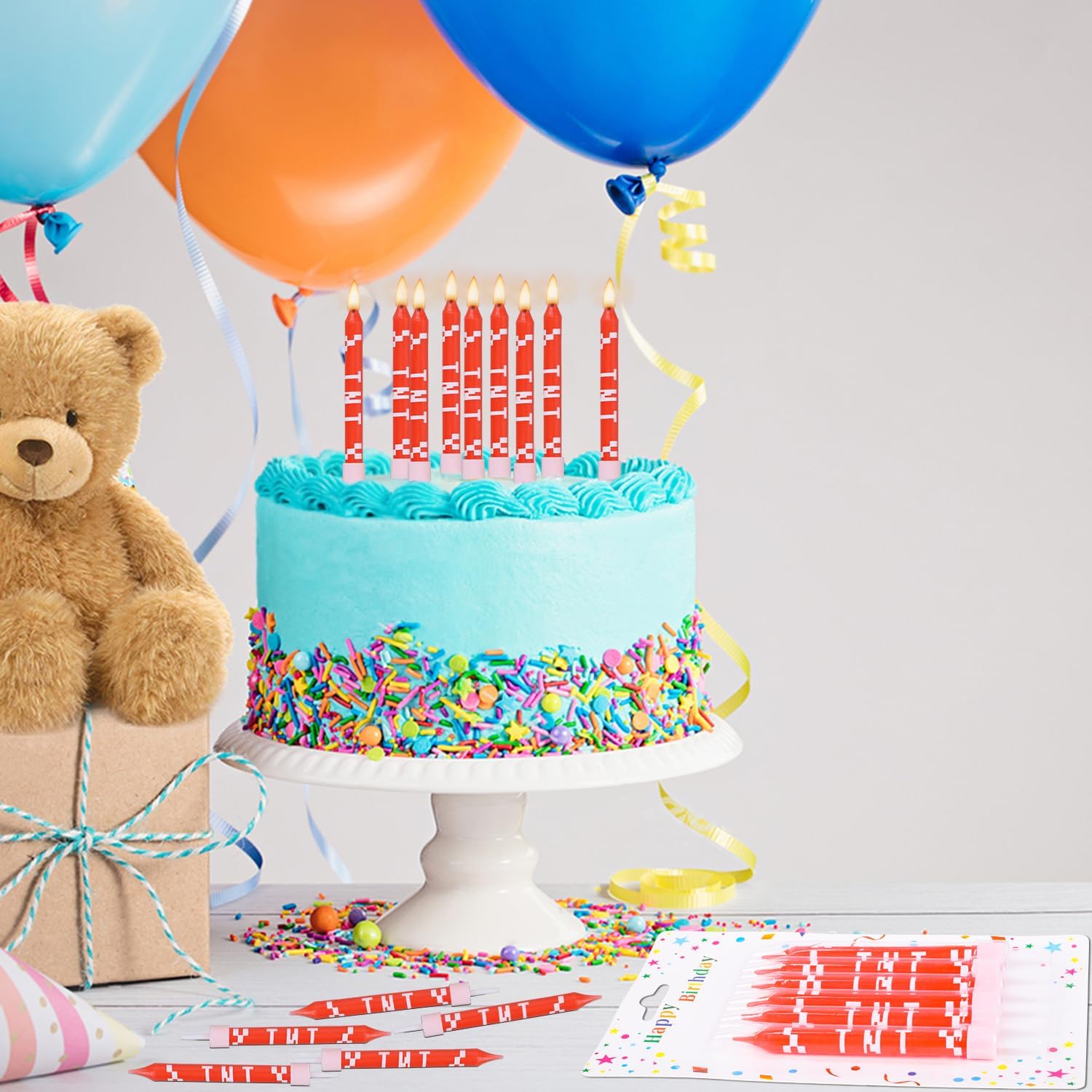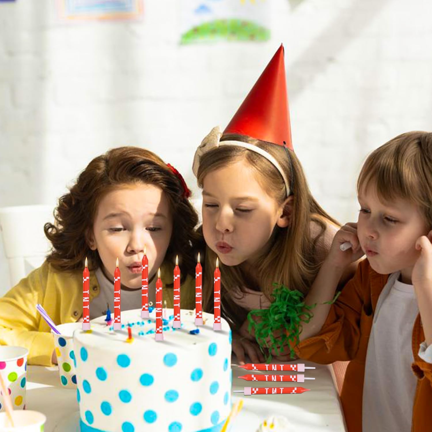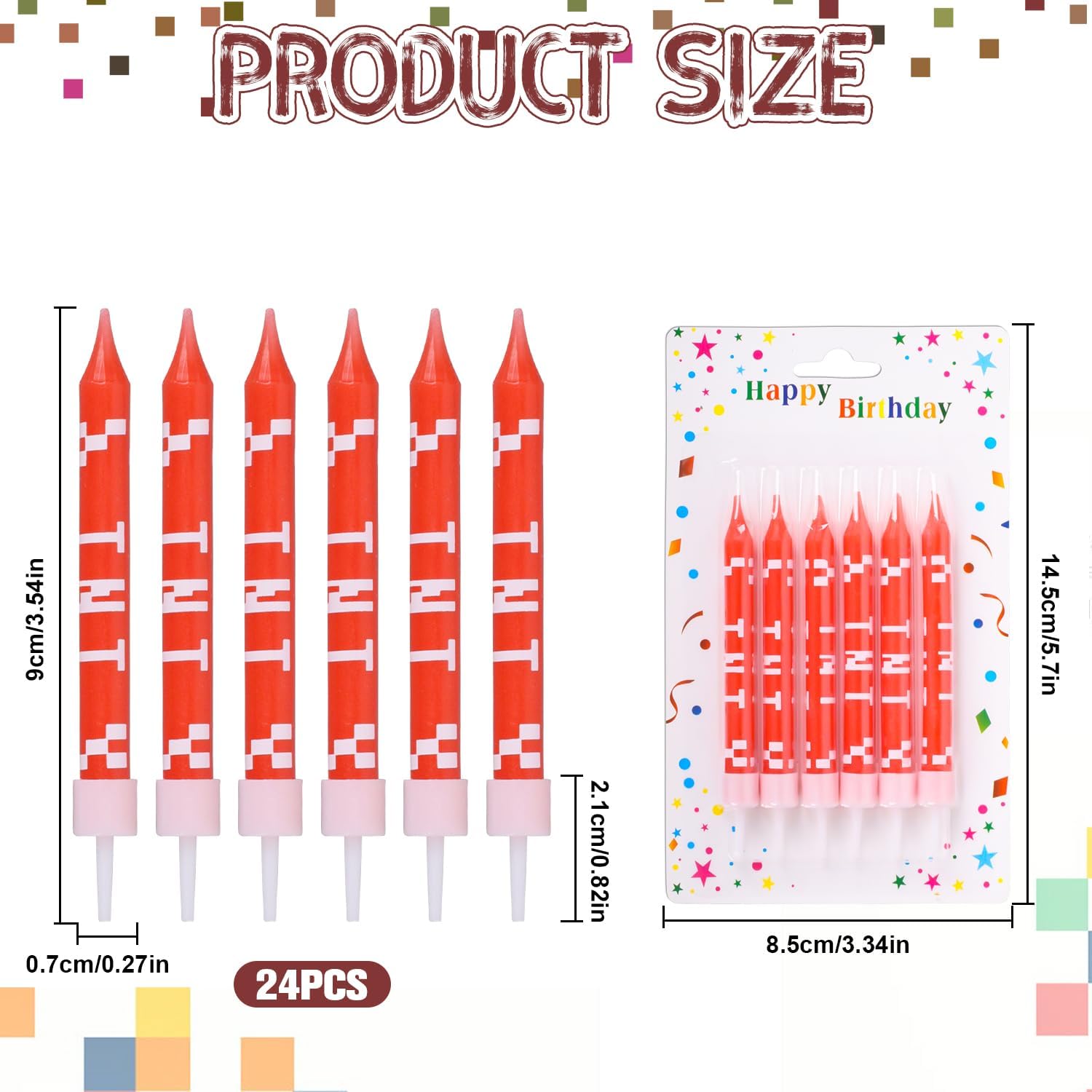 24 candele pixel, candele di compleanno, a tema miner, per compleanno, per ragazzi, ragazze, bambini, candele di compleanno, decorazione per torte (rosso)