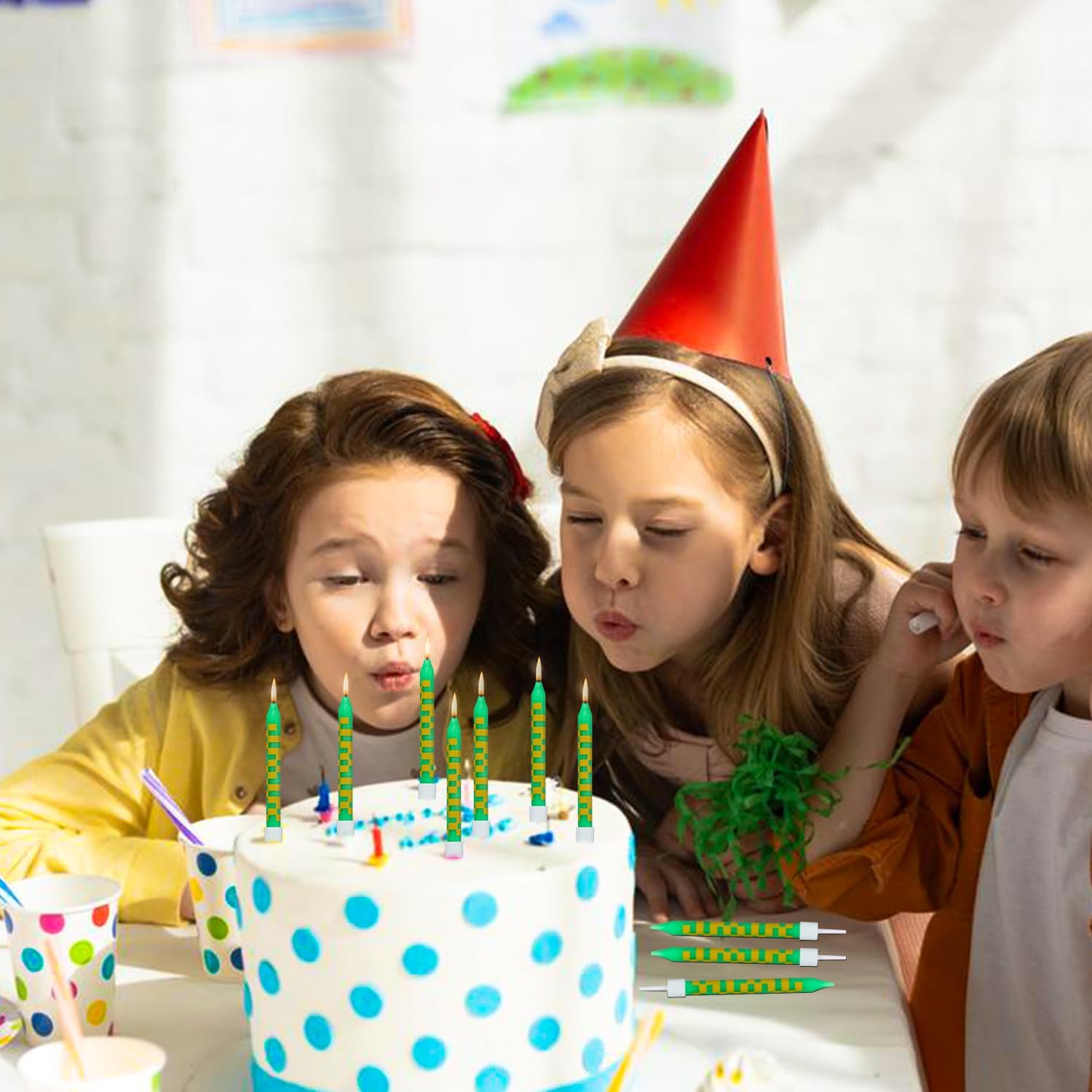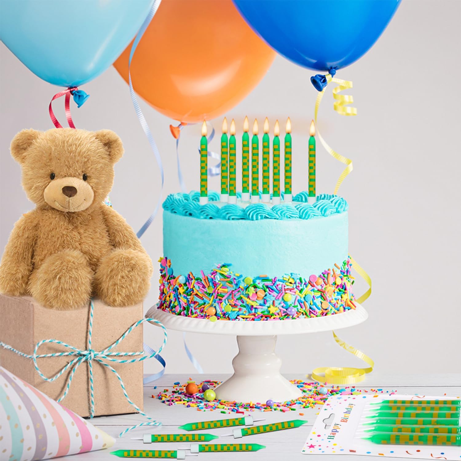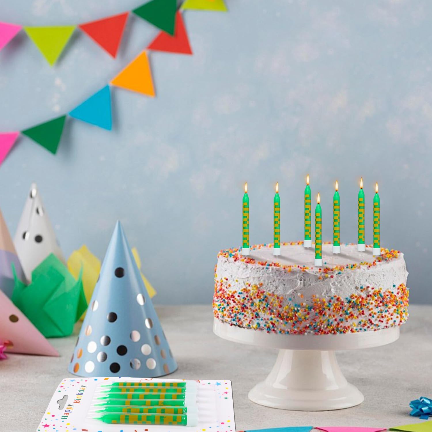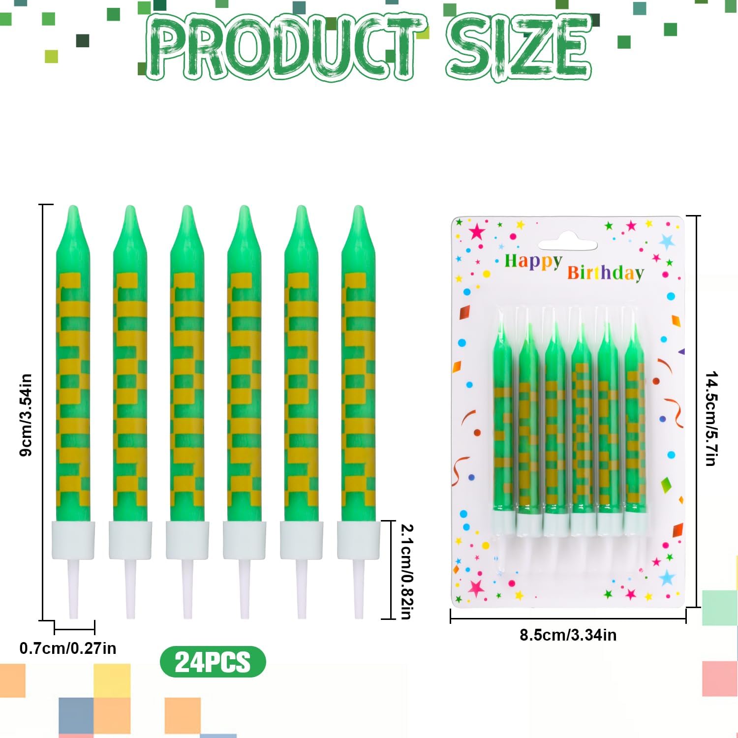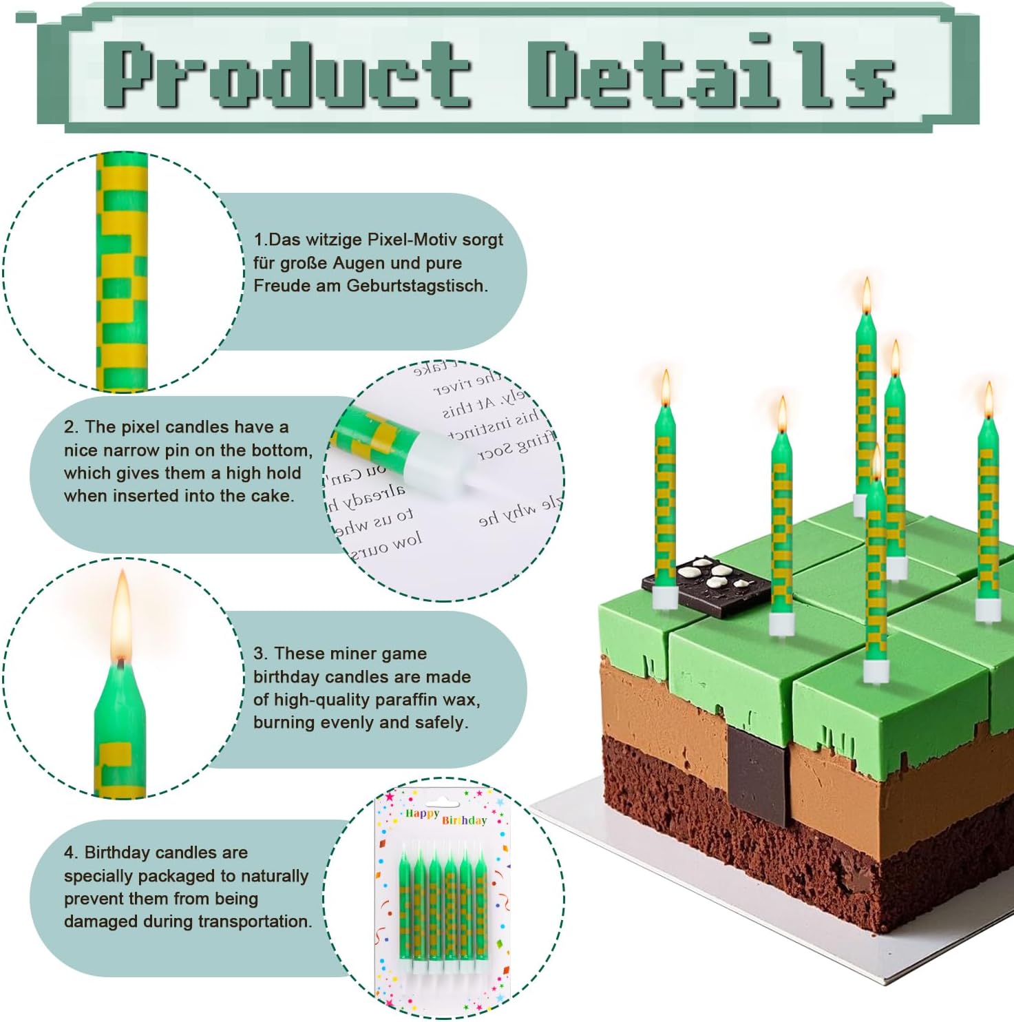 [Elementi unici] Nella confezione sono incluse 24 candele di compleanno pixel, sufficienti per diverse celebrazioni. Le candele di compleanno si distinguono per un design creativo a pixel in stile minatore. Questo design porta un tocco giocoso e unico in ogni celebrazione e rende indimenticabili i momenti di compleanno. Dimensioni perfette: con una dimensione di circa 9,5 x 0,8 cm, le candele di compleanno sono ideali per decorare torte o cupcake grandi e piccoli. Non sono né troppo grandi né troppo piccoli e mettono in risalto la torta. [Materiale premium] Le candele di compleanno Pixel sono realizzate in cera di paraffina di alta qualità, che garantisce una combustione uniforme e duratura. Bruciano in modo sicuro e senza odori sgradevoli, quindi puoi goderti la tua festa senza preoccupazioni. Versatile per molte occasioni: che si tratti di feste di compleanno, matrimonio, laurea o feste a tema, queste candele di compleanno Pixel si adattano a qualsiasi tipo di festa. Creano un'atmosfera allegra e speciale e creano entusiasmo sia per bambini che per adulti. [Regalo perfetto] Il design pixel ricorda i classici videogiochi e fa immergere i bambini in un'avventura digitale colorata. Le brillanti tonalità di verde e il motivo pixelato rendono le candele un vero e proprio highlight a ogni festa.