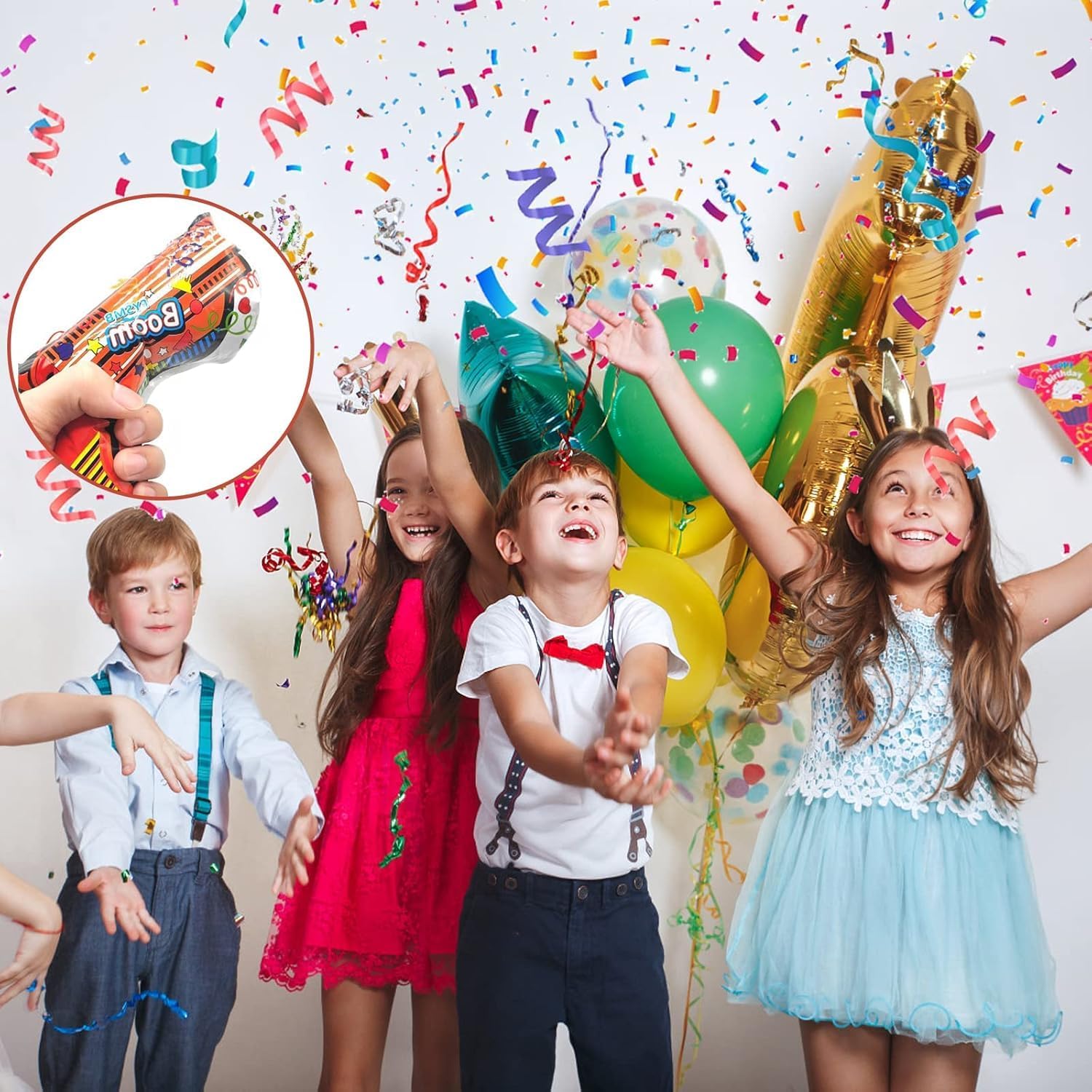 【Set di sicurezza】 Riceverete 24 cannoni biodegradabili per coriandoli che sono sufficienti per tutti i tipi di feste. I cannoni di carta colorati di coriandoli cannone garantiscono con i loro effetti colorati un'impressione visiva spettacolare. pistola coriandoli è dotata di un dispositivo di sicurezza di alta qualità che garantisce sicurezza. L'altezza dello spruzzo è fino a 2-3 metri e garantisce energia illimitata e sorprese alla tua festa. Occasioni adatte: il cannone a coriandoli è molto popolare in tutti i tipi di feste. Che si tratti di feste di compleanno, matrimoni o festival, il cannone coriandoli biodegradabile è sempre il punto focale e il punto forte dell'evento. Che si tratti di un incontro con amici e familiari o nell'atmosfera serena di una grande festa, il cannone di coriandoli si integra perfettamente e dona a ogni momento importante una brillantezza infinita. Creazione di atmosfera: sia durante un incontro con amici e parenti o quando si conoscono gli estranei per la prima volta, la pistola a coriandoli può creare rapidamente una connessione tra le persone e creare un'atmosfera rilassante e piacevole. La presenza di coriandoli cannone porta senza dubbio la festa al suo apice e riempie ogni momento di risate e gioia infinita, rendendola un ricordo indimenticabile nel cuore di tutti. 【Carta biodegradabile】: il cannone coriandoli biodegradabile è stato accuratamente selezionato e contiene fino al 90% di carta biodegradabile, che si decompone rapidamente in natura e riduce notevolmente l'impatto ambientale. Inoltre, la carta è rivestita con una pellicola di plastica dorata al 10%, che non solo conferisce un tocco di classe al tatto, ma garantisce anche stabilità e durata durante l'uso. Comodo da trasportare e facile da usare: ogni pistola per coriandoli ha circa le dimensioni del palmo della mano ed è quindi molto comoda da trasportare. Il cannone per coriandoli è azionato manualmente ed è biodegradabile rispetto ai tradizionali cannoni coriandoli a pressione ed è più sicuro ed efficiente. La carta colorata cade lentamente e sembra una pioggia di fiori colorati. Il cannone di coriandoli farà un'impressione indimenticabile a tutti gli ospiti della festa.