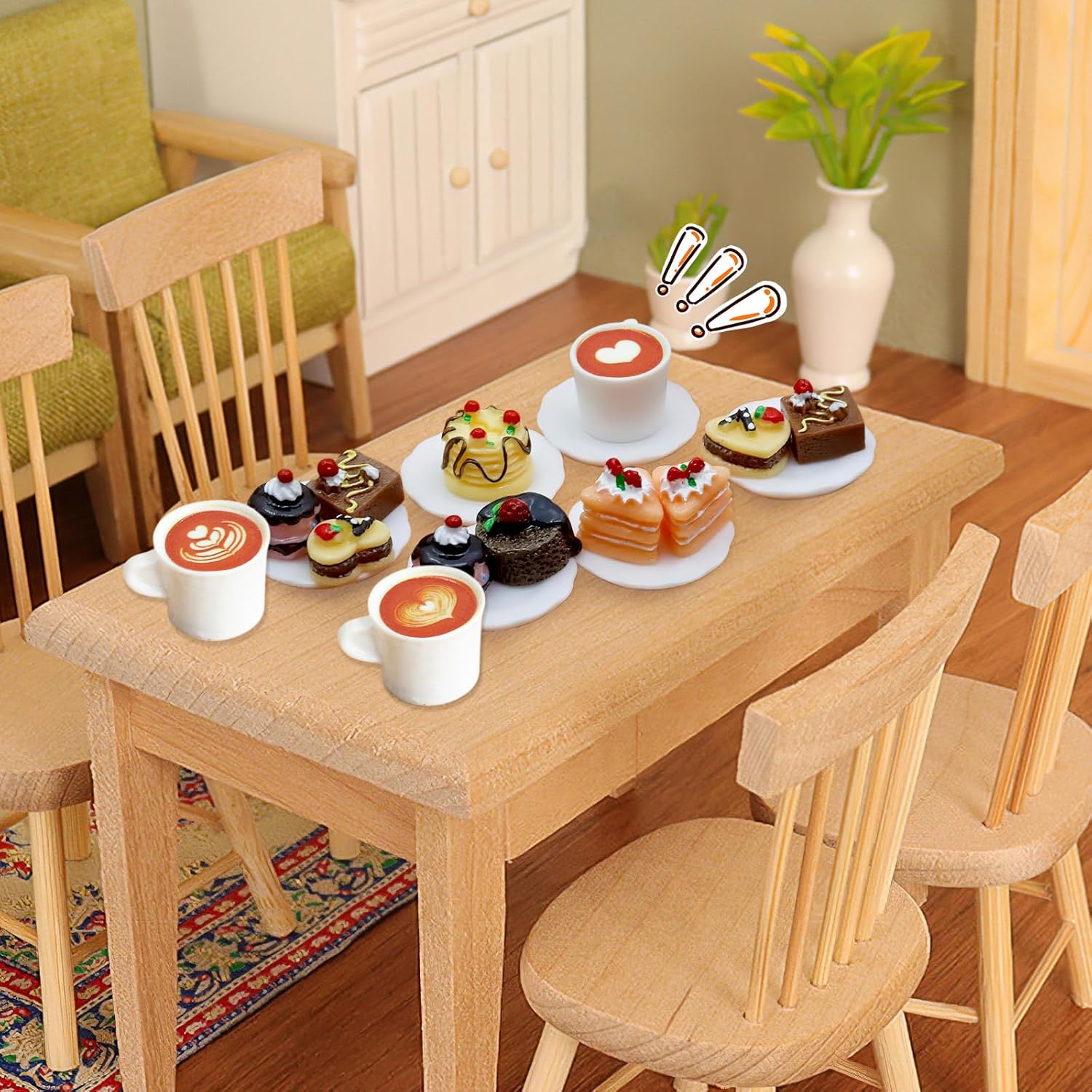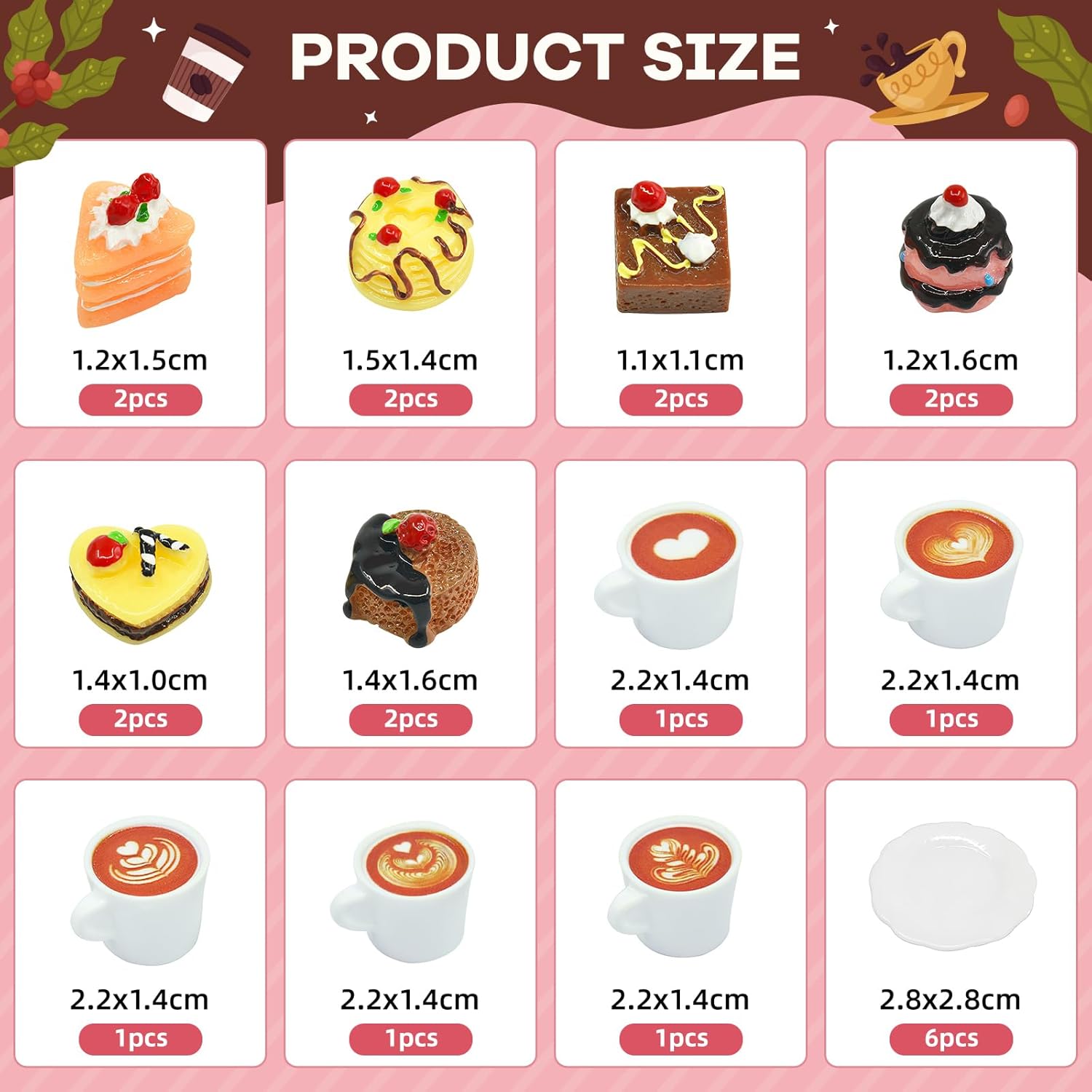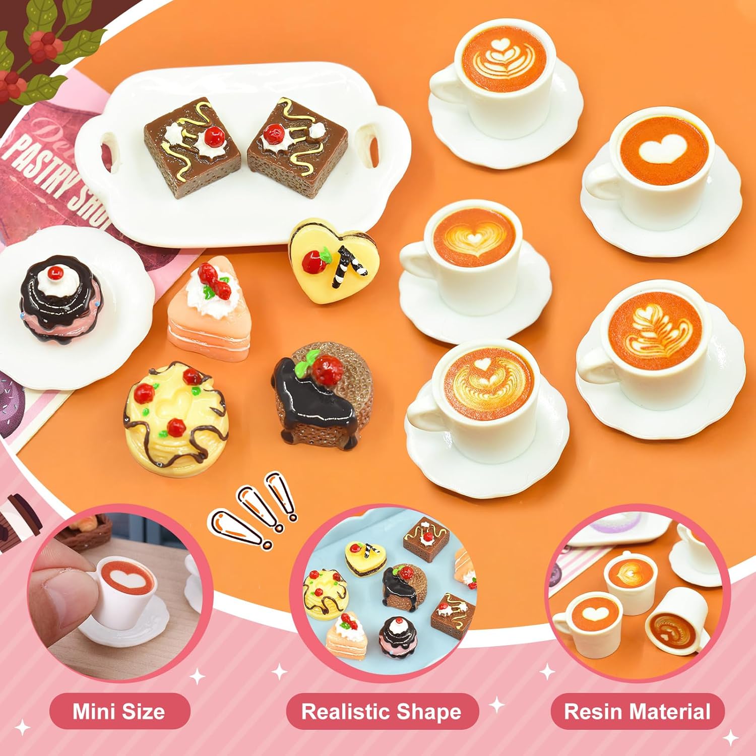 Mini set alimentare: questo affascinante mini set da dessert contiene 12 mini torte dettagliate, 6 mini tazze da caffè e 6 mini piatti da caffè. Perfetto per accoglienti pomeriggi di tè in miniatura con una sensazione autentica! Dettagli realistici: questo mini set da dessert e caffè convince per la sua straordinaria attenzione ai dettagli. La lavorazione precisa crea mondi in miniatura ingannevolmente realistici: accessori ideali per gnomo in miniatura per Natale. Materiale: realizzato in robusto PVC, resistente al colore, infrangibile e durevole. Compatibile con mondi in miniatura 1:12 e 1:6 per un divertimento decorativo duraturo. Accessori per casa delle bambole fai da te: che si tratti di arredi per case delle bambole, decorazioni per telefoni cellulari o regali personalizzati: scatena la tua creatività! Il regalo di Natale ideale per familiari e amici Decorazione versatile in miniatura: ravviva sale da tè in miniatura, giardini in miniatura e case delle bambole! Questo accessorio versatile trasforma qualsiasi mondo in miniatura in un incantevole paesaggio natalizio.