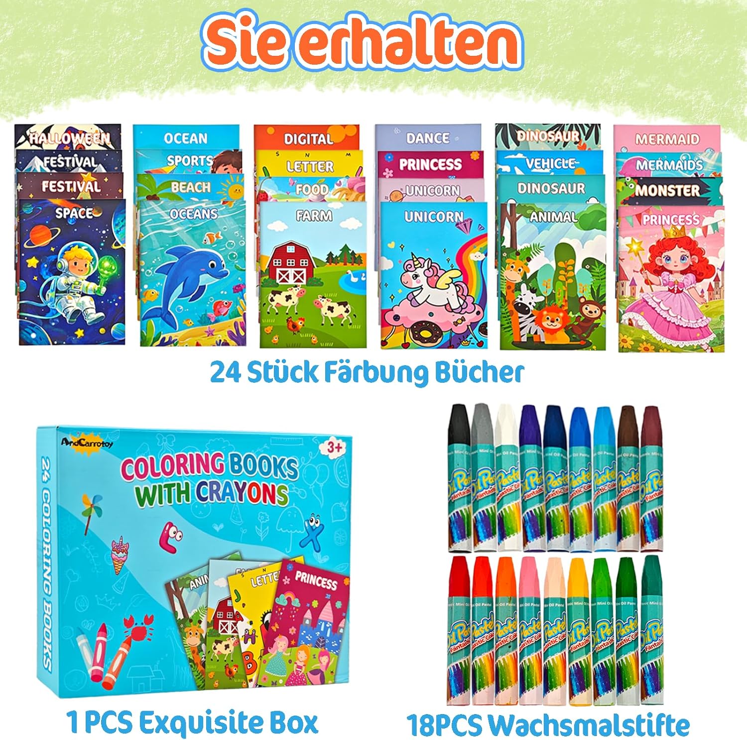 【24 Mini Libretti da Colorare per Bambini 】Il nostro mini set da colorare contiene 24 libri da colorare per bambini, 18 pastelli colorati e una confezione regalo. I libri da colorare sono disponibili in 24 stili (animali, veicoli, spiaggia, numeri, dinosauri, unicorni, principesse, vacanze, lettere, fattoria, cibo, sport, mostri e altro ancora), ciascuno con 6 pagine a doppia faccia e 288 disegni diversi, oltre a un divertente gioco del labirinto per intrattenere i bambini. Perfetto per bambini e bambine. 【Pastelli Multicolore Sicuri e Atossici 】I pastelli sono realizzati con cera sintetica naturale atossica. Progettato con 18 diversi colori vivaci, questo set di pastelli per bambini non è solo adatto per disegnare libri da colorare, ma aiuta anche i bambini a creare creazioni fai-da-te gratuite, il che è molto utile per sviluppare le loro capacità di disegno e la loro creatività. Non preoccupatevi se il bambino si sporca accidentalmente le mani con i colori, possono essere lavati via con acqua. 【Insegnamento e Apprendimento】Con disegni vivaci e labirinti divertenti, oltre a esercitazioni sui numeri e sulle lettere per affinare il riconoscimento dei colori e le abilità manuali, tenendoli lontani dai dispositivi elettronici e incoraggiandoli a imparare in modo divertente e coinvolgente, questo libro di attività da colorare è un ottimo inizio per i vostri piccoli artisti e un grande regalo per i bambini in età prescolare. 【Libro da Colorare Portatile con Pastelli】La dimensione del libro da colorare per bambini è di circa 12*17cm, la lunghezza di ogni pastello è di 7,3cm, l'intera scatola di pastelli è di circa 12,8*19,5*1,8cm. Adatto alle piccole mani del bambino, può essere facilmente messo in borse e zaini, e ogni libro è molto leggero, adatto per attività all'aperto, attività scolastiche, feste di compleanno, viaggi e picnic. 【Bomboniere per Feste】Il nostro set di libri da colorare per bambini, splendidamente presentato in una scatola regalo, può essere regalato come bomboniera per feste di compleanno, premi per la classe. Ideali come bomboniere per feste di compleanno per bambini, regalini per alunni, riempitivi per feste, riempitivi per cesti pasquali, regali di Natale, riempitivi per sacchetti di caramelle, regali di San Valentino, ma anche come regali di addio per bambini dell'asilo, premi per le classi scolastiche e altro ancora. 【Nota】Se avete qualche problema nel processo di utilizzo non esitate a contattarmi, farò del mio meglio per risolvere il problema per voi.