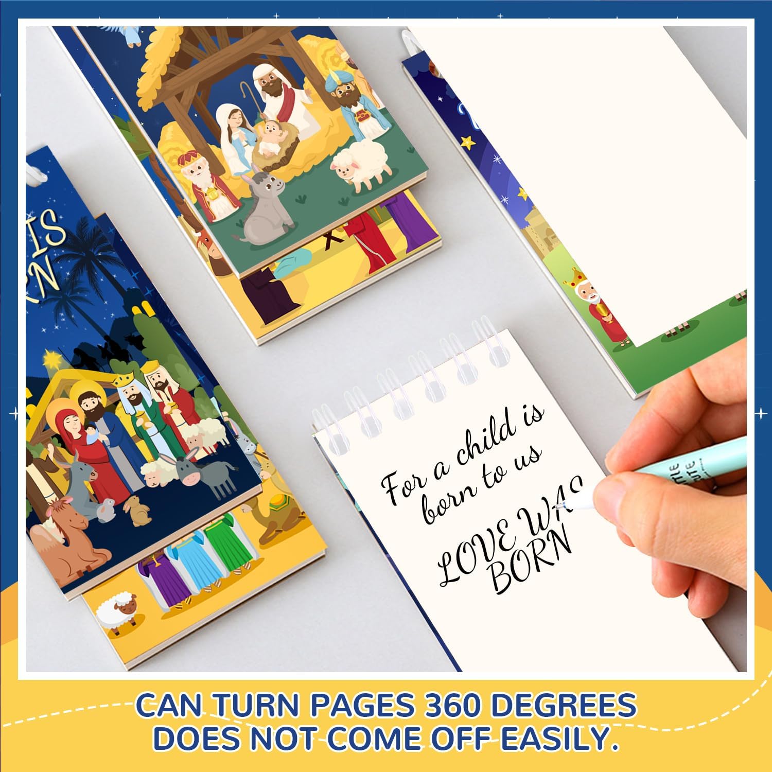 Bomboniere religiose per feste di Natale: le nostre bomboniere per presepe includono 24 mini quaderni a spirale per presepe in 8 stili, quantità e stili sufficienti per soddisfare le tue varie esigenze e sostituzioni, puoi condividere con i tuoi compagni di classe Decorazioni di Gesù di buon compleanno: le nostre decorazioni per feste di presepe mostrano una serie di motivi di presepe di Gesù e hanno anche parole come "Buon compleanno Gesù" e "Gioia al mondo", creando una forte atmosfera religiosa natalizia, che catturerà sicuramente i cuori dei bambini e sarà un regalo a sorpresa per te, amici, bambini e studenti Dimensioni adatte: ogni taccuino per presepe Gesù misura 6 x 10 cm, piccolo e leggero, quindi è comodo per il trasporto quotidiano. Questi mini quaderni per presepe di Natale sono della dimensione perfetta per scivolare in tasca, borsa, zaino o cassetto della scrivania. Il design a spirale consente di prendere appunti sdraiando i quaderni a spirale per piatti, ideali per prendere appunti in movimento, scarabocchi o diari, può anche essere applicato come promemoria per registrare i tuoi pensieri quotidiani Materiale affidabile: i mini quaderni religiosi di Natale Gesù sono realizzati in carta di qualità, robusti e leggeri, scrittura liscia, non sbiadiscono e si rompono facilmente, affidabili da usare, possono essere applicati a lungo, offrendo una bella esperienza di utilizzo Ampia applicazione: questi mini quaderni per presepe religioso natalizio sono perfetti per bomboniere per presepe, decorazioni per feste di presepe, bomboniere di Gesù, decorazioni per feste di Gesù, buon compleanno Gesù, bomboniere religiose, bomboniere per feste di Natale, decorazioni per feste di compleanno di Gesù, forniture per l'educazione religiosa, premi in classe e così via, che possono aggiungere un grande successo alla tua festa, lasciare un ricordo impressionante per i tuoi ospiti