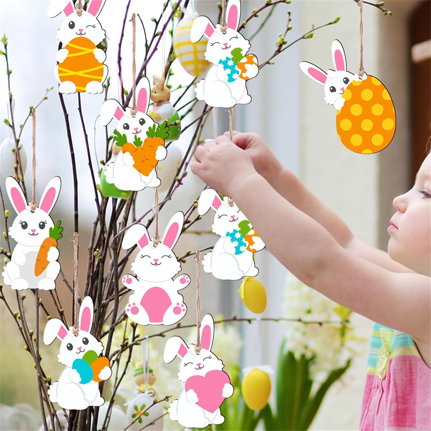 Può essere utilizzato per decorare alberi di Pasqua, porte, armadi, scatole, gnomi aggiungono un ciondolo divertente e creativo alla tua vacanza. forma e uova pendenti: gli ornamenti colorati sono progettati con diverse forme belle. Con un bell'aspetto e un colore brillante, bello per decorare la casa e ben abbinare con altre decorazioni per la tua casa. Robusto e in legno, robusto e leggero ma solido, bello ruggine e resistente. La confezione viene fornita con 24 ornamenti in legno da appendere con corde. Può soddisfare le vostre esigenze di decorazione.
