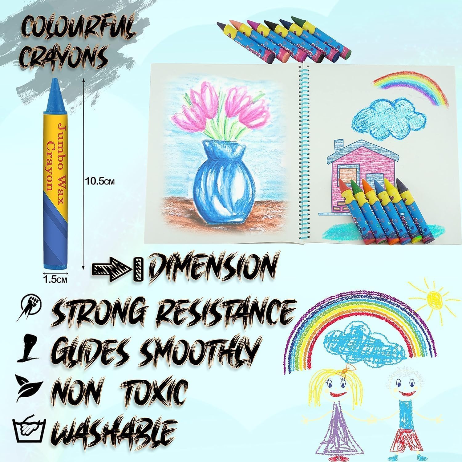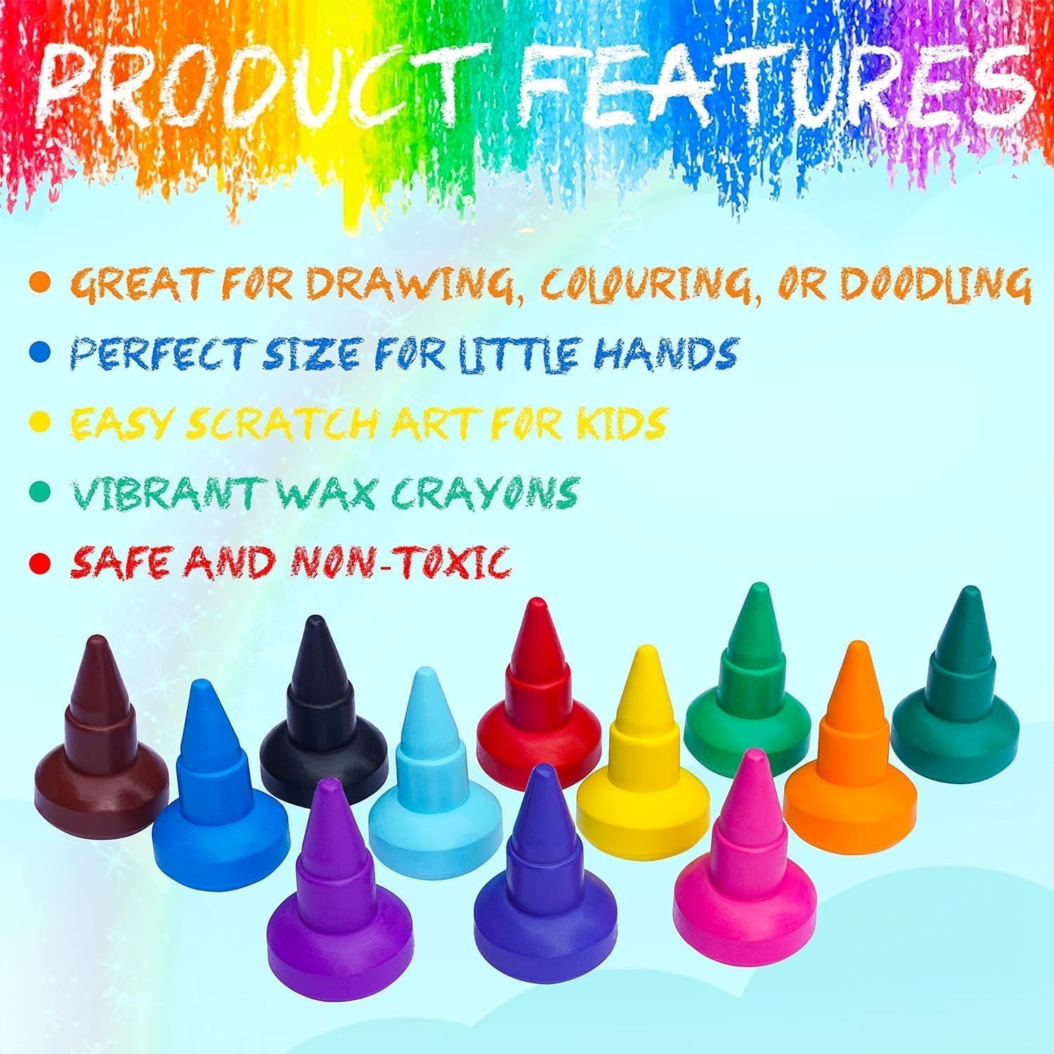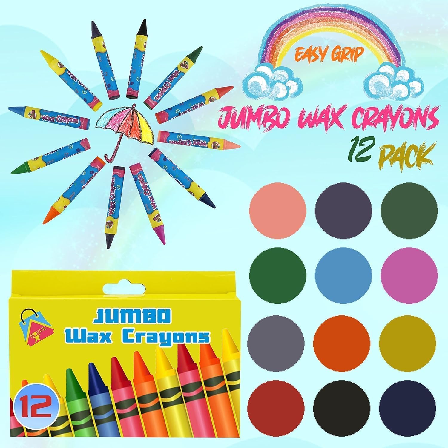 Dimensioni: ogni pastello misura 4,5 cm x 3 cm (altezza x larghezza), rendendoli facili da affilare senza inceppamenti e meno soggetti a rotture. Il pastello Jumbo misura 10,5 cm di lunghezza e 1,5 cm di spessore, il che li rende facili da tenere e utilizzare. Materiale atossico: realizzati in cera atossica, questi pastelli sono lavabili con una superficie liscia che mantiene pulite le mani dei bambini. Scegli tra dodici colori vivaci per disegnare, colorare o scarabocchiare. Facili da impugnare e impilabili: appositamente progettati per mani piccole, questi pastelli con impugnatura sul palmo sono facili da tenere e possono essere impilati per aggiungere divertimento ai sacchetti di Pasqua. Ampie applicazioni: oltre alla colorazione, questi pastelli migliorano il riconoscimento del colore e la creatività. Perfetto per compleanni, Natale e altre occasioni come regalo di Pasqua per bambini, bambini. La confezione include: riceverai 24 pastelli impilabili in colori assortiti, progettati per una facile presa dai bambini. Questi pastelli vengono forniti in una scatola robusta per evitare deformazioni.