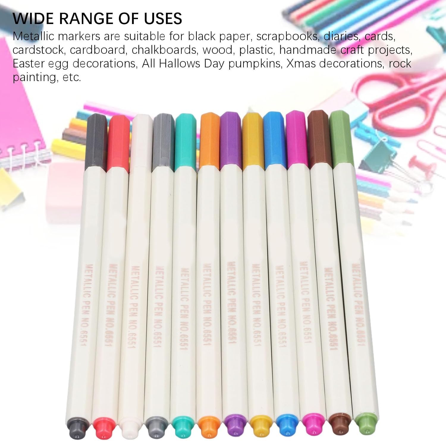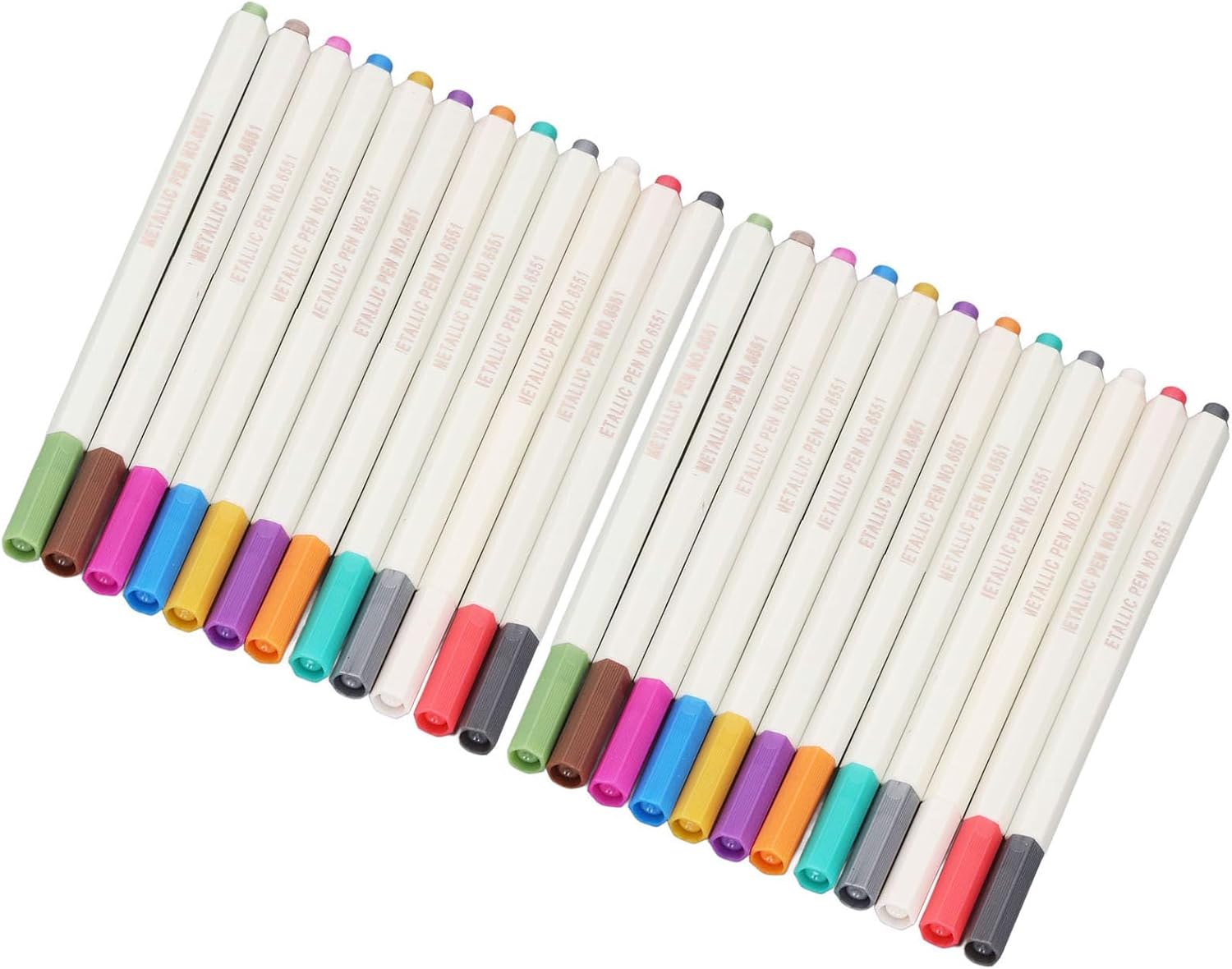 [Grande selezione di colori] Una serie diversificata di 24 vibranti marcatori metallici per migliorare i tuoi progetti artistici e dare vita alla creatività [Utilizzo versatile] Ideale per scrivere, decorare, scarabocchiare e colorare su varie superfici tra cui carta scura e colorata [Audace e accattivante] Ogni colore metallico è vivido, garantendo segni chiari e sorprendenti per un tocco di creatività [Sicuro e conveniente] Inchiostro metallico opaco a base d'acqua e design ergonomico rendono questi marcatori sicuri e comodi per tutte le età [Multiuso] per carta nera, album, carte, legno, plastica, mestieri fai-da-te e decorazioni per le vacanze come Natale e zucche di Halloween
