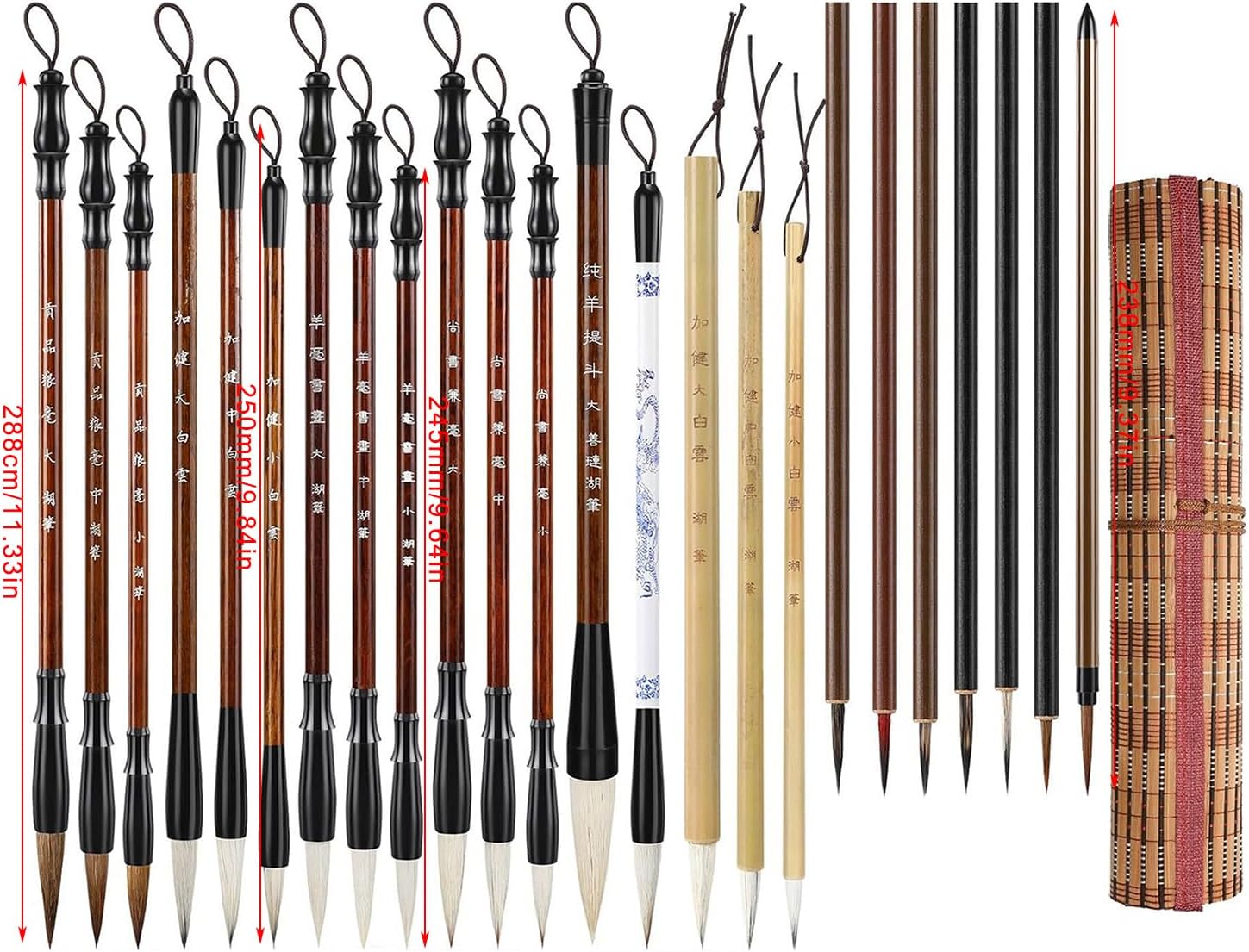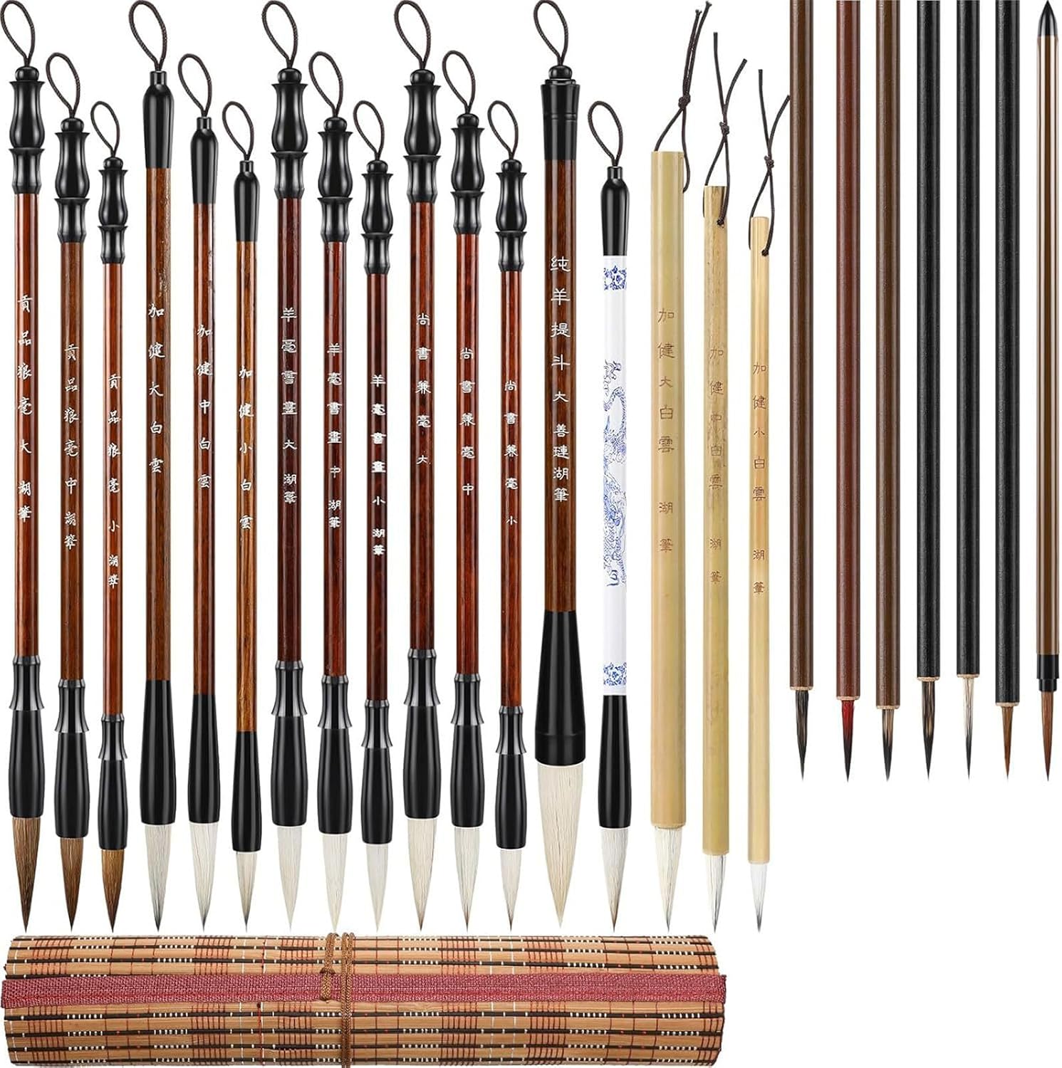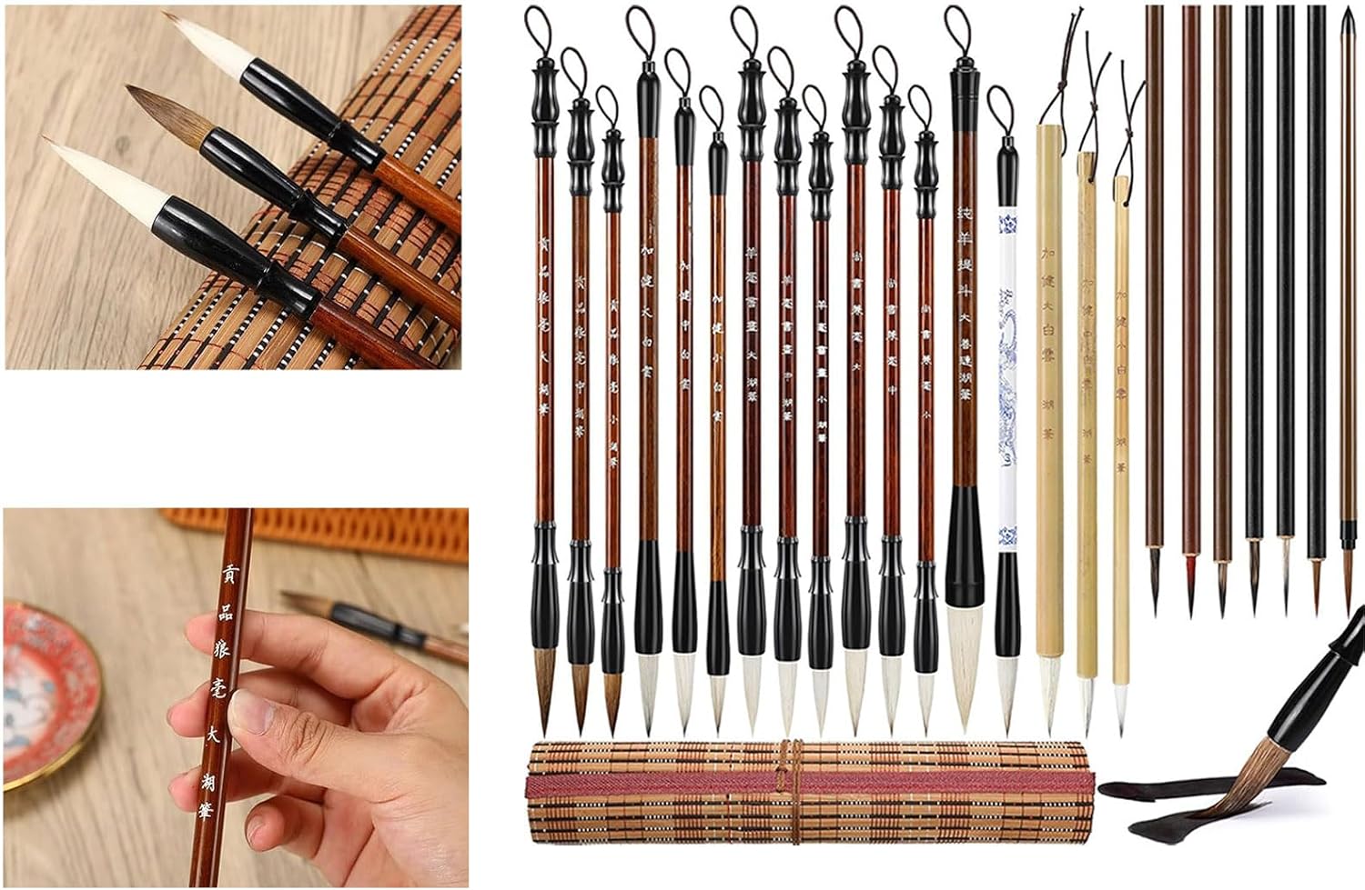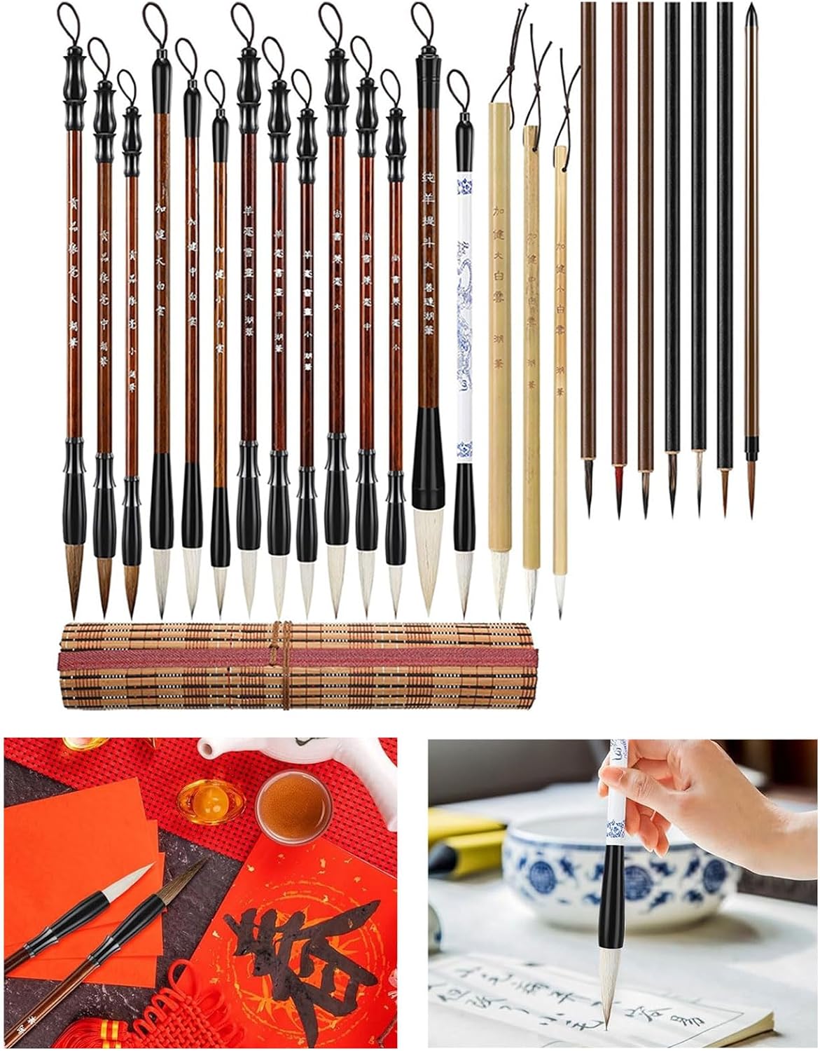 La confezione include: pennello professionale per callirafia cinese da 24 Acquisizione dei capelli: non faremmo mai del male agli animali, proprio come facciamo con i nostri tagli capelli Pennello da pittura tradizionale cinese per la pratica della pittura con inchiostri cinesi, scrittura distici antitetici, scrittura sumi, pittura paesaggi, pittura con inchiostri Realizzato in legno e setole, manico comodo e spazzola per la testa rinforzata, ideale per sostituire vecchio pennello da scrittura. Utilizzato come pennello per pittura cinese, pennello per scrivere distico antitetico, pennello per acquerello, pennello per scrittura sumi Ottimo varietà dipinti meticolosi, dipinti a inchiostro, dipinti paesaggi o per la pratica della scrittura tradizionale cinese come piccoli script regolari, Xiaozhuan, script ufficiali Regalo vacanza per familiari, amici, colleghi o appassionati calligrafia cinese, aiutandoli a migliorare le proprie capacità scrittura o pittura