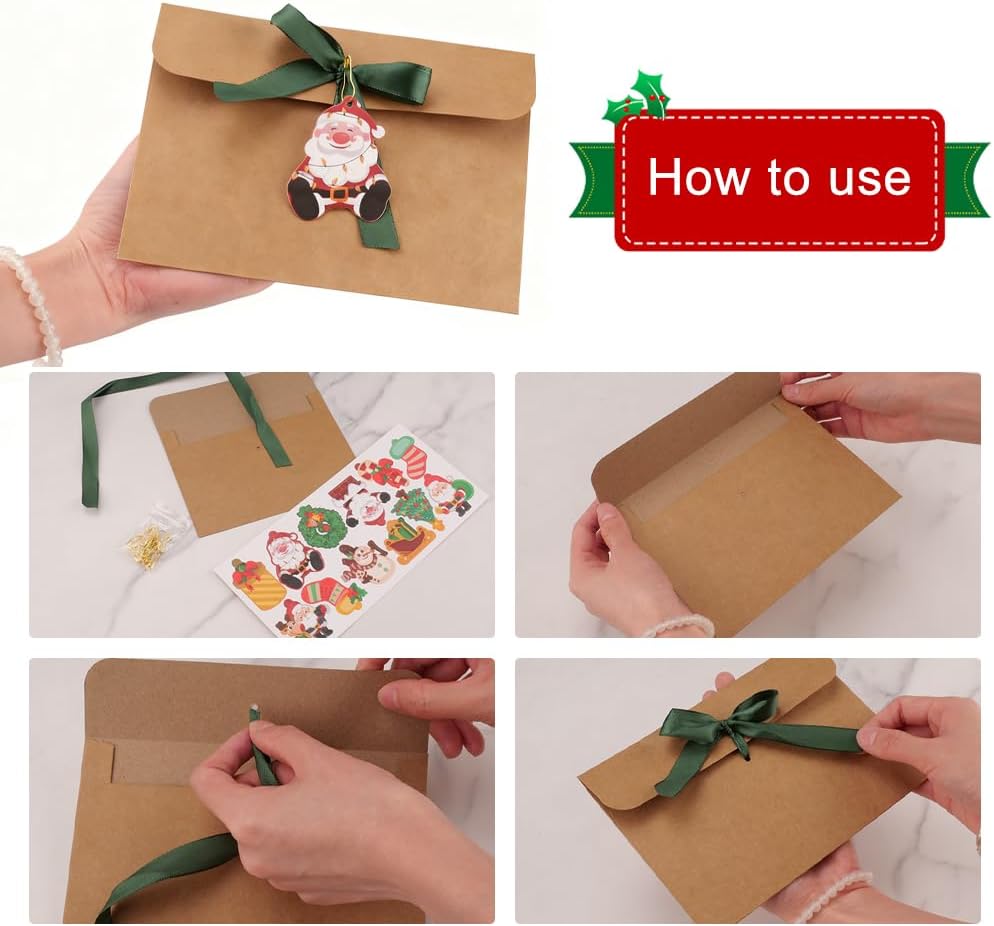 Dimensioni busta: 17,3 x 12,3 cm. La confezione contiene 24 buste vintage in carta kraft e 24 adorabili biglietti per soddisfare le tue esigenze. Sono dotate di un delicato nastro che può essere annodato in un elegante fiocco per un aspetto più raffinato e bello. Materiale di alta qualità: le nostre buste in carta kraft sono realizzate in carta kraft spessa, resistente a danni e deformazioni, che protegge efficacemente i biglietti e le lettere all'interno, permettendoti di utilizzarle in tutta tranquillità. Queste buste kraft sono impreziosite da nastri e da una varietà di adorabili biglietti per un tocco di eleganza e cerimonia. 24 adorabili biglietti: le nostre buste lettere kraft includono 24 adorabili e giocosi biglietti decorativi. La copertina bianca di questo set di buste kraft ti permette di scrivere e decorare a tuo piacimento, creando una busta unica e significativa che trasmetterà i tuoi più sinceri auguri a ogni destinatario. Design con nastro: ogni buste per lettere è dotata di un delicato nastro che può essere annodato in un elegante fiocco dopo la sigillatura, creando un aspetto bello ed elegante. Protegge anche i biglietti e i piccoli regali all'interno, permettendoti di usarli in tutta sicurezza. Usi versatili: le buste da lettera sono perfette per biglietti regalo personalizzati, buste per il Ringraziamento, inviti per feste, buste regalo di Natale, biglietti di auguri, biglietti di auguri natalizi, inviti di nozze fai da te e lettere. Aggiungi un tocco personalizzato alle tue buste con nastro per creare buste uniche e significative per esprimere al meglio i tuoi migliori auguri.