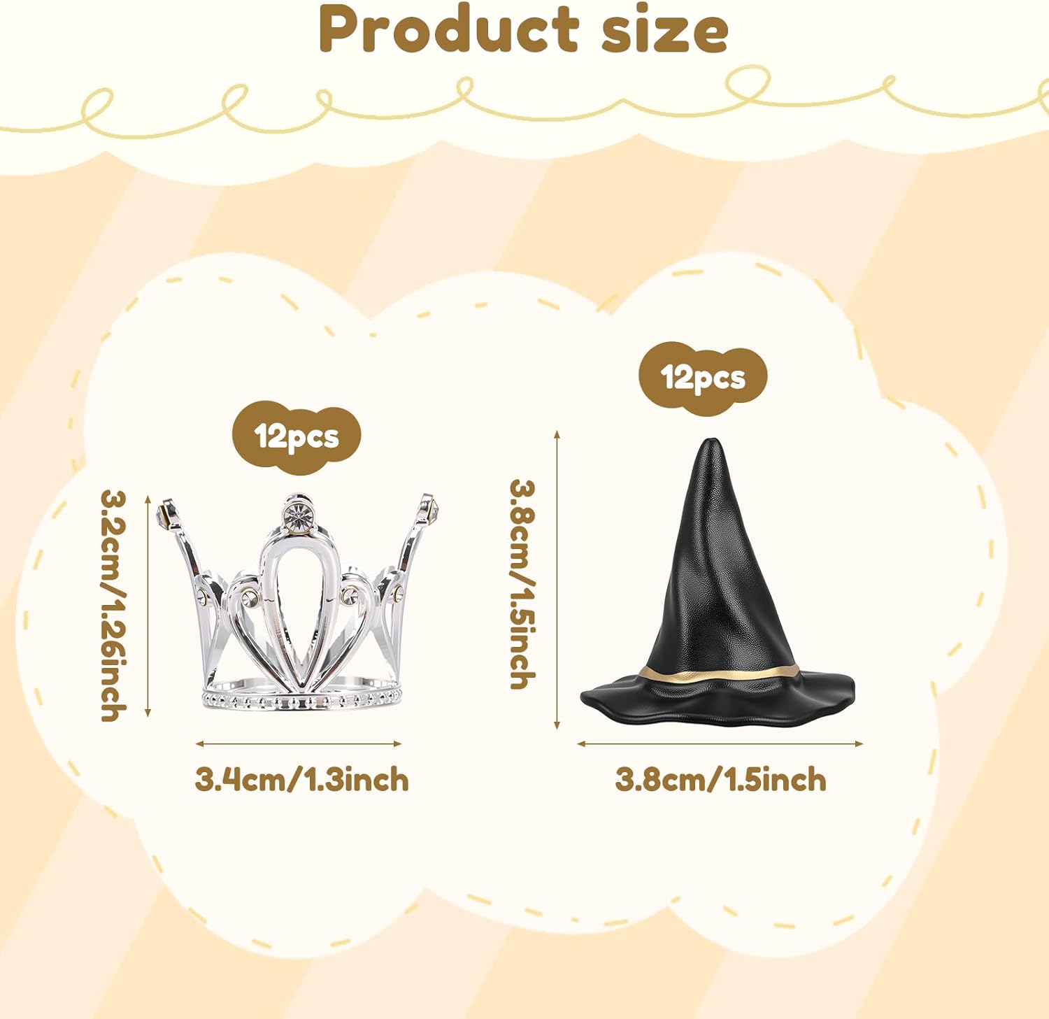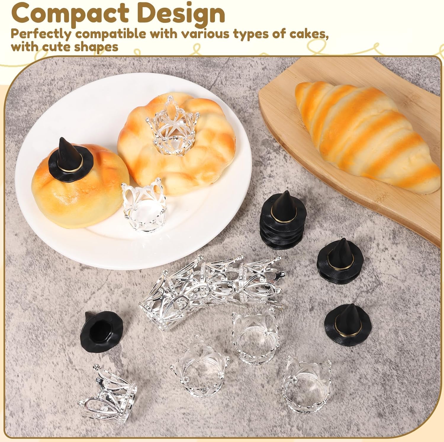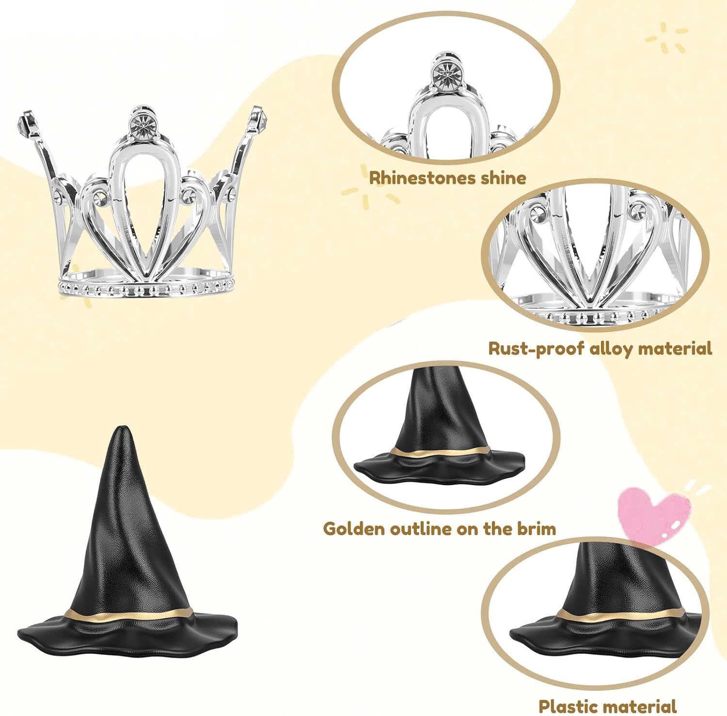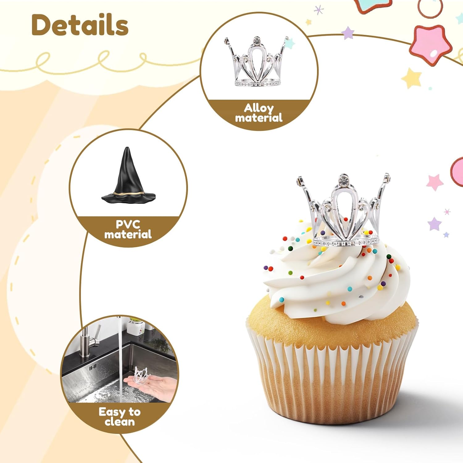 Set completo: ogni set contiene 24 mini decorazioni per torte, tra cui 12 cappello da strega e corona d'argento. Con una quantità sufficiente è possibile decorare facilmente torte di compleanno, cupcake o dessert per creare in pochi secondi un'atmosfera misteriosa e divertente. Ideale per gli amanti della cottura che vogliono ravvivare i propri dolci in modo rapido ed efficace senza dover cercare decorazioni aggiuntive. Alta qualità: la corona del cappello da strega è realizzata in lega e PVC morbido con una superficie liscia che non danneggia le mani. Possono essere riutilizzati e sono adatti come materiale per l'artigianato per bambini o per le feste, combinando bellezza e sicurezza. Ideale per famiglie con bambini per evitare preoccupazioni sui materiali nocivi. Forma compatta: la corona in argento misura circa 3,43,2 cm. Il cappello da strega circa 3,83,8 cm. La dimensione mini si adatta perfettamente a diverse torte. La forma carina e simile a un cartone animato con colori tenui aumenta l'attrattiva visiva dei dessert e aggiunge più festa ai tuoi dolci. Ideale per chi ama creare dessert ricchi di dettagli senza occupare troppo spazio. Molteplici applicazioni: il cappello da strega corona è adatto non solo per feste di Halloween, feste di compleanno e feste in maschera, ma anche per feste a tema fiabesco, feste da principessa ed eventi magici a tema. Ideale per chi cerca decorazioni adatte per diverse occasioni per sollevare l'umore. Facile da pulire: la superficie della corona del cappello da strega è liscia e facile da pulire. Dopo l'uso, è sufficiente un panno umido per pulire o risciacquare con acqua pulita. La facilità di pulizia li rende adatti per un uso ripetuto. Ideale per persone occupate che non hanno tempo per complicate operazioni di pulizia.