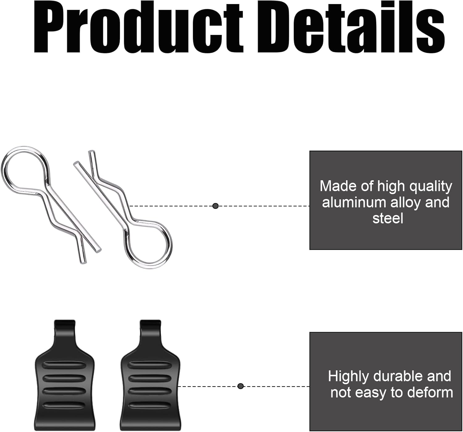 Materiali Di Alta Qualità: Rc car clips è realizzato in plastica e lega di alta qualità, resistenti, con elevata rigidità e tenacità, non si deforma facilmente ed è ideale per un utilizzo a lungo termine. Telecomando Auto Shell Modello di ricambio non solo garantisce un design leggero, ma offre anche un'eccellente resistenza e stabilità Facile Da Usare: Questo RC carrozzeria clip è progettato con cura e facile da usare, anche un principiante può iniziare rapidamente. La sua esclusiva struttura curva non solo si adatta alla curvatura della carrozzeria, ma facilita anche lo smontaggio e l'installazione da diverse angolazioni senza la necessità di strumenti aggiuntivi o passaggi complicati, risparmiando molto tempo nella preparazione Funzionalità Del Prodotto: RC Corpo Shell Pin può essere utilizzato per fissare la carrozzeria e il telaio, proteggere le parti interne dell'auto radiocomandata e fissare efficacemente la carrozzeria per evitarne lo scivolamento. Morsetti per auto radiocomandata non solo fornisce un supporto di livello professionale per il tuo modellino, ma è anche un assistente ideale per ogni appassionato di RC nell'uso quotidiano e nelle competizioni Quantità Sufficiente: Riceverai 24 pezzi di clip per carrozzeria RC, sufficienti per soddisfare le esigenze di utilizzo quotidiano e sostituzione. Che si tratti di allenamento quotidiano, campo di gara o manutenzione, potrai sempre avere un Accessori RC Per Auto Giocattolo di riserva, senza compromettere l'efficienza d'uso o interrompere il processo operativo a causa di accessori insufficienti Ampia Applicazione: Questo Clip Per Carrozzeria RC ha un design flessibile e una forte adattabilità. È ampiamente utilizzato in modellini di auto radiocomandati di varie scale come 1/10, 1/12, 1/16, ecc. accessori RC per auto giocattolo ha molteplici funzioni applicative per soddisfare le esigenze di protezione e manutenzione di diversi modelli