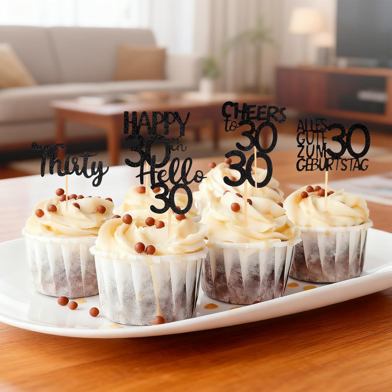 🎉【Decorazione Elegante per i 30 Anni】Questa decorazione 30 anni in nero e oro crea un’atmosfera chic e raffinata. Perfetta come decorazione 30 anni donna o decorazione 30 anni uomo per rendere unica la tua festa di compleanno. ✨【Materiali di Alta Qualità】Le nostre decorazioni torta 30 anni sono realizzate in cartoncino glitterato spesso e bastoncini in bambù sicuri per gli alimenti. Questi cupcake topper 30 anni sono resistenti, durevoli e dall’aspetto elegante. 🧁【Set da 24 Pezzi】Riceverai 24 topper in 6 modelli diversi, 4 pezzi per ogni stile. Questo set di decorazioni 30° compleanno offre abbastanza scelte per cupcake, muffin o piccole torte. 🎈【Uso Versatile】Queste decorazioni compleanno 30 anni sono ideali per feste a tema come Dirty Thirty, anniversari, matrimoni o eventi aziendali. Abbinale ad altre decorazioni nero-oro per un allestimento coordinato. ⚠【Solo per Uso Decorativo】Questa decorazione torta 30 anni nero oro è non commestibile e destinata solo alla decorazione. Non utilizzare in forno o microonde. Tenere fuori dalla portata dei bambini.