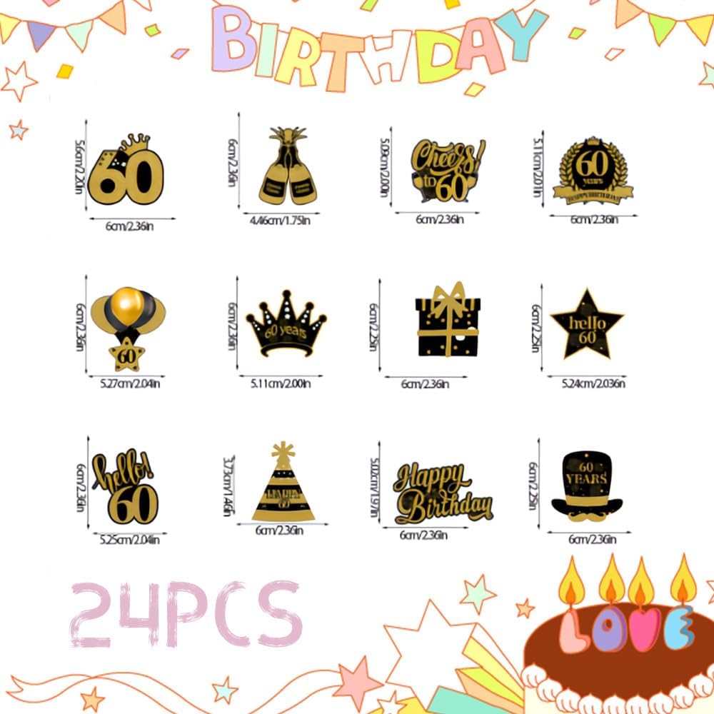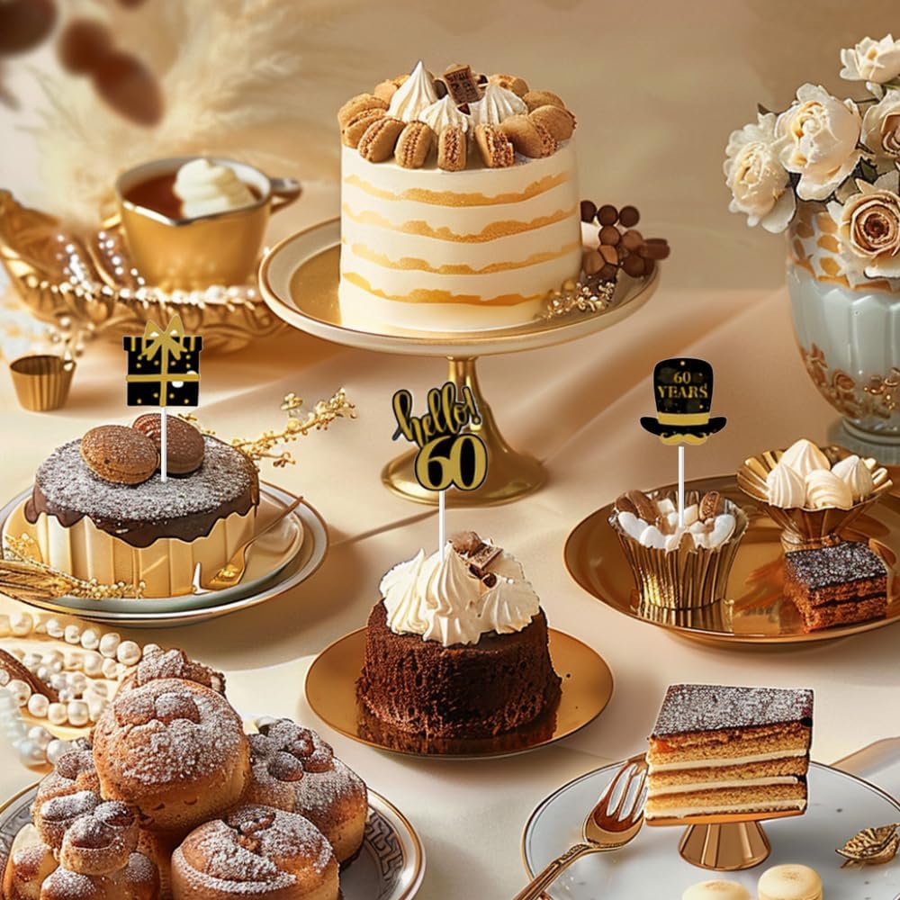 Adatto al tema del 60° compleanno: progettato appositamente per le feste di compleanno dei 60 anni, con una vasta gamma di modelli (come il numero “60”, corone, calici, ecc.), si adatta perfettamente all'atmosfera della festa di compleanno e aggiunge un tocco di cerimonia esclusiva. Aspetto raffinato e materiali di alta qualità: il colore nero e oro è lussuoso e elegante, i materiali sono resistenti e durevoli, la stampa dei motivi è chiara. Le bandierine hanno un design raffinato, sono stabili una volta inserite nella torta o nei cupcake e non si rovesciano facilmente, valorizzando il tavolo dei dolci. Quantità e modelli vari: include 24 bandierine con design diversi, in grado di soddisfare la maggior parte delle esigenze di decorazione dei dolci. Sia che si tratti di una torta grande o di cupcake, è possibile creare un ricco effetto visivo, rendendo la festa ancora più vivace. Facile da usare: il design del bastoncino è semplice, non richiede operazioni complesse, basta inserirlo delicatamente nel dolce per completare la decorazione. Risparmia tempo nella preparazione e rende più facile l'organizzazione della festa, anche i principianti possono creare rapidamente un bellissimo tavolo dei dolci. Adatto a molteplici occasioni: non solo per feste di compleanno in famiglia, ma anche per decorare feste di compleanno per i 60 anni in ristoranti, sale per feste e altri luoghi. Aggiungi decorazioni a torte di compleanno, cupcake, piccoli dolci e crea un'atmosfera allegra.