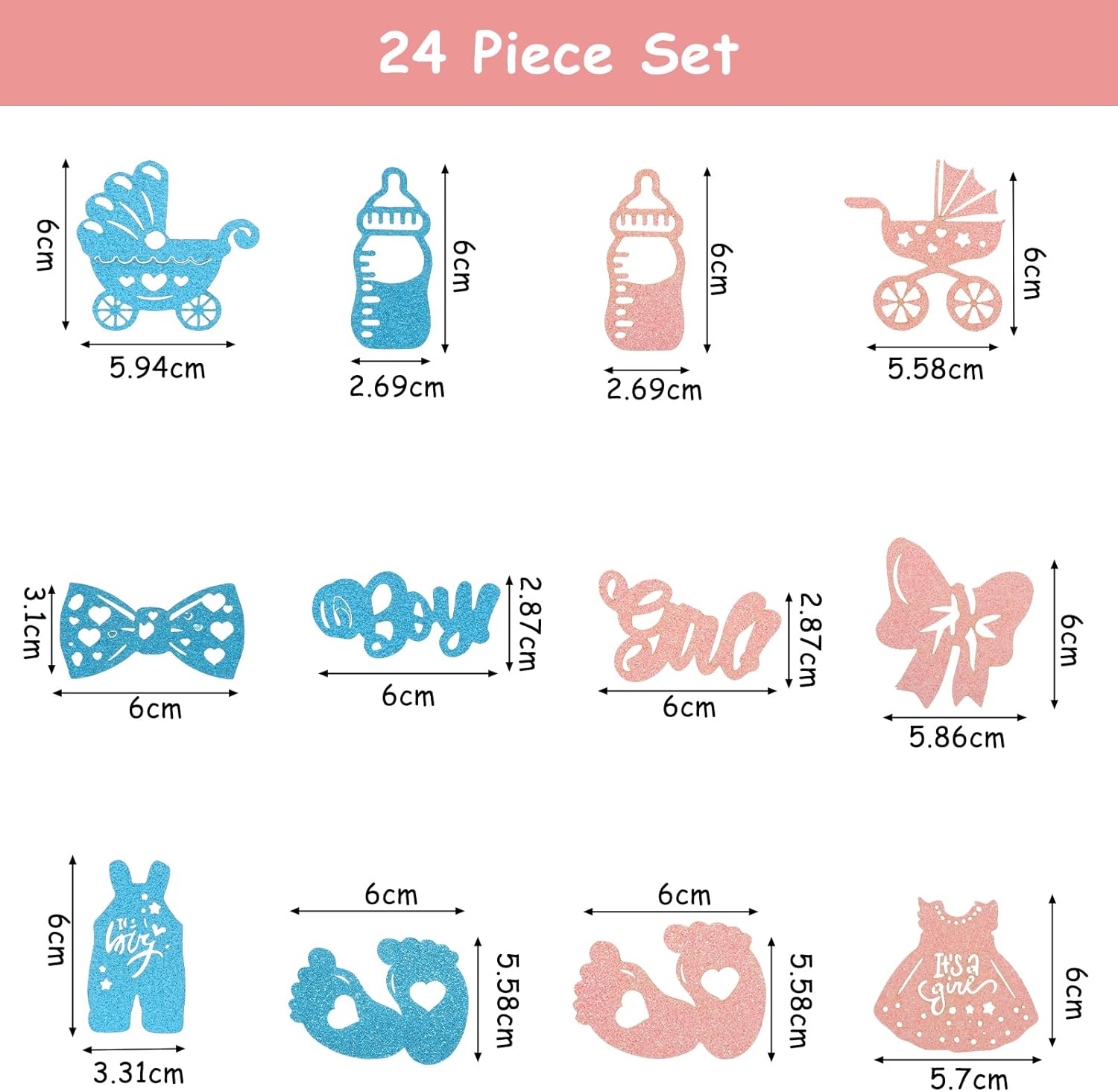 ✨ 【Set Completo】 Con 24 pezzi di decorazioni torta gender reveal, puoi decorare facilmente una torta grande e diversi cupcake, ideale per una festa baby shower 👶 【Blu & Rosa】 Un solo kit riunisce entrambi i colori, perfetto come cake topper ragazzo o ragazza per la rivelazione di sesso, pratico e conveniente 🎉 【Pronti all’Uso】 Tutti i cake toppers sono già assemblati e facili da inserire, nessun montaggio richiesto, una decorazione baby shower rapida e senza stress 💖 【Materiali di Qualità】 Realizzati in cartoncino paillettato e stuzzicadenti alimentari, questi cupcake toppers sono brillanti, durevoli, riutilizzabili, sicuri ed ecologici 🧁 【Multi-Occasioni】 Perfetti per decorazioni torta baby shower, battesimo o compleanno, queste decorazioni carine e scintillanti creano foto indimenticabili da condividere