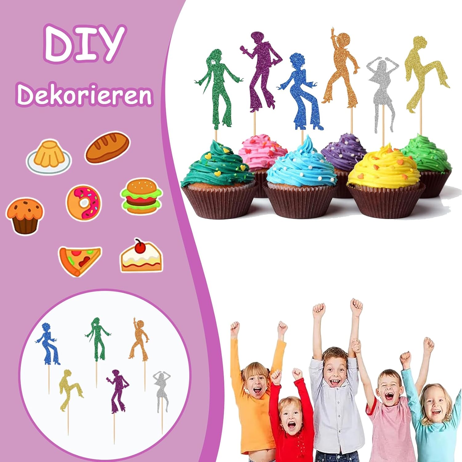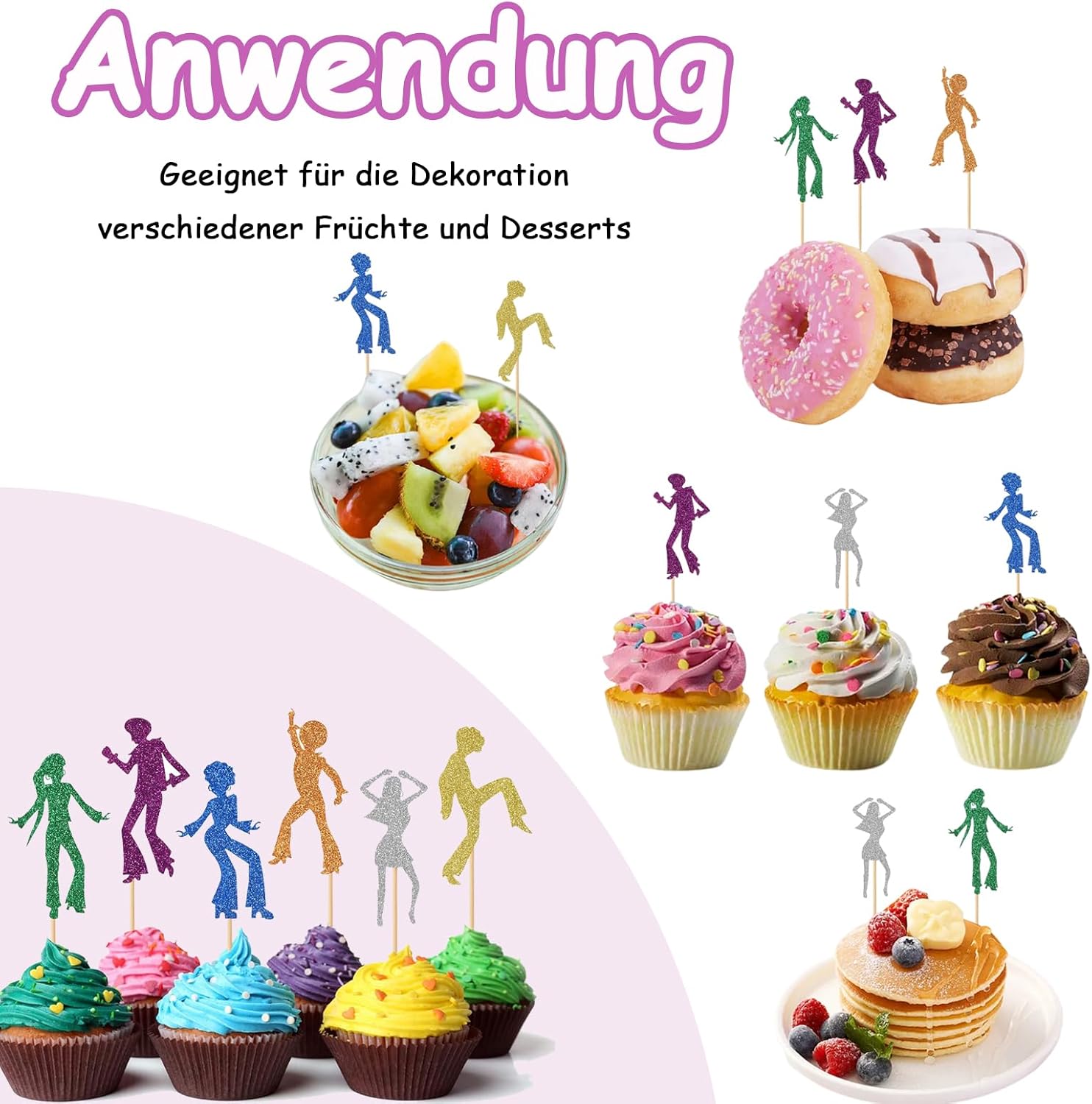 Materiali di alta qualità: il topper per torta da discoteca è realizzato in cartone di alta qualità, colore brillante, non facile da sbiadire, stuzzicadenti per uso alimentare, sicuro e insapore, i glitter sono così brillanti alla luce e non cadono Facile da usare: il topper per cupcake da discoteca è già assemblato, devi solo inserire il topper da compleanno da discoteca nella torta o nel dessert del pancake per decorare il tuo cibo e renderlo più appetitoso Tema discoteca: i nostri toppers per torta da discoteca brillano di migliaia di luci, più abbaglianti delle normali decorazioni per torte e attirano le persone attenzione. Le decorazioni a tema disco dance degli anni '70 e '80 sono retrò e alla moda Riutilizzabili: il topper cupcake da discoteca può essere riutilizzato dopo la pulizia, robusto e durevole, facile da pulire e non facile da danneggiare, rendendolo un ottimo accessorio per attirare il cibo. Ampia applicazione: questi topper cupcake possono essere utilizzati per decorare torte, dessert, biscotti, frutta, ciambelle e così via, belli e retrò, che possono offrirti un'atmosfera piacevole per goderti il cibo