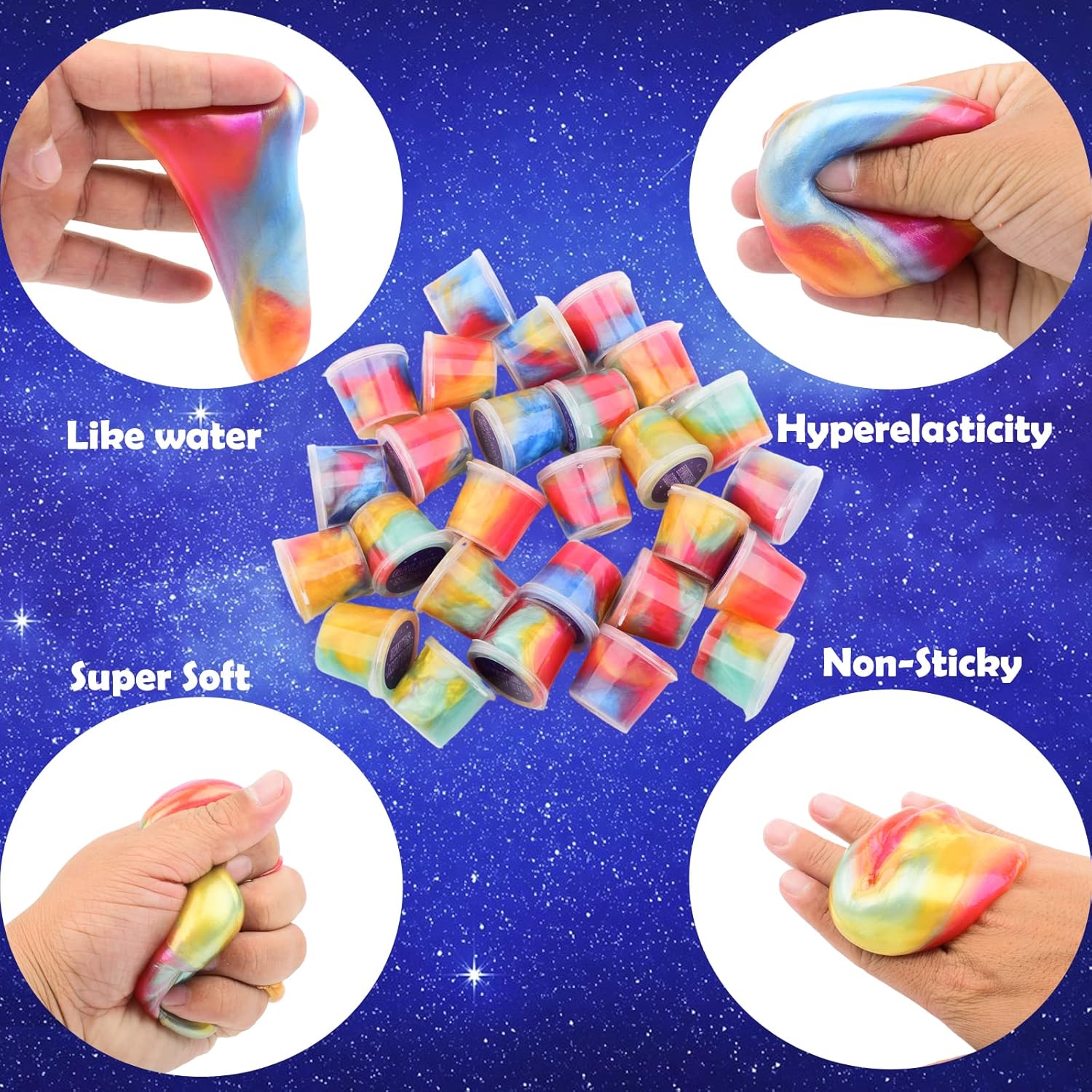 Niuruilsi 24 pezzi e 57 pezzi Galaxy Slime, mini slime bomboniere per bambini, antiaderente, ottimi giocattoli di fango per ragazze e ragazzi, bomboniere per bambini 4-12, sollievo dallo stress e dall'ansia, bagnato, sacchetti di goodie.