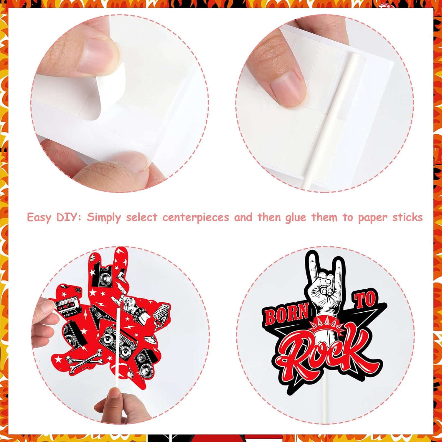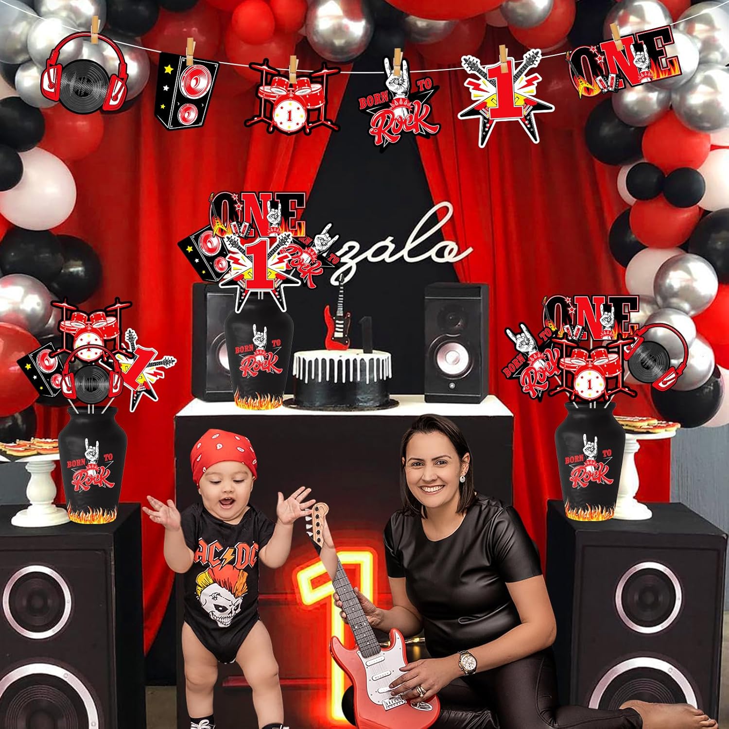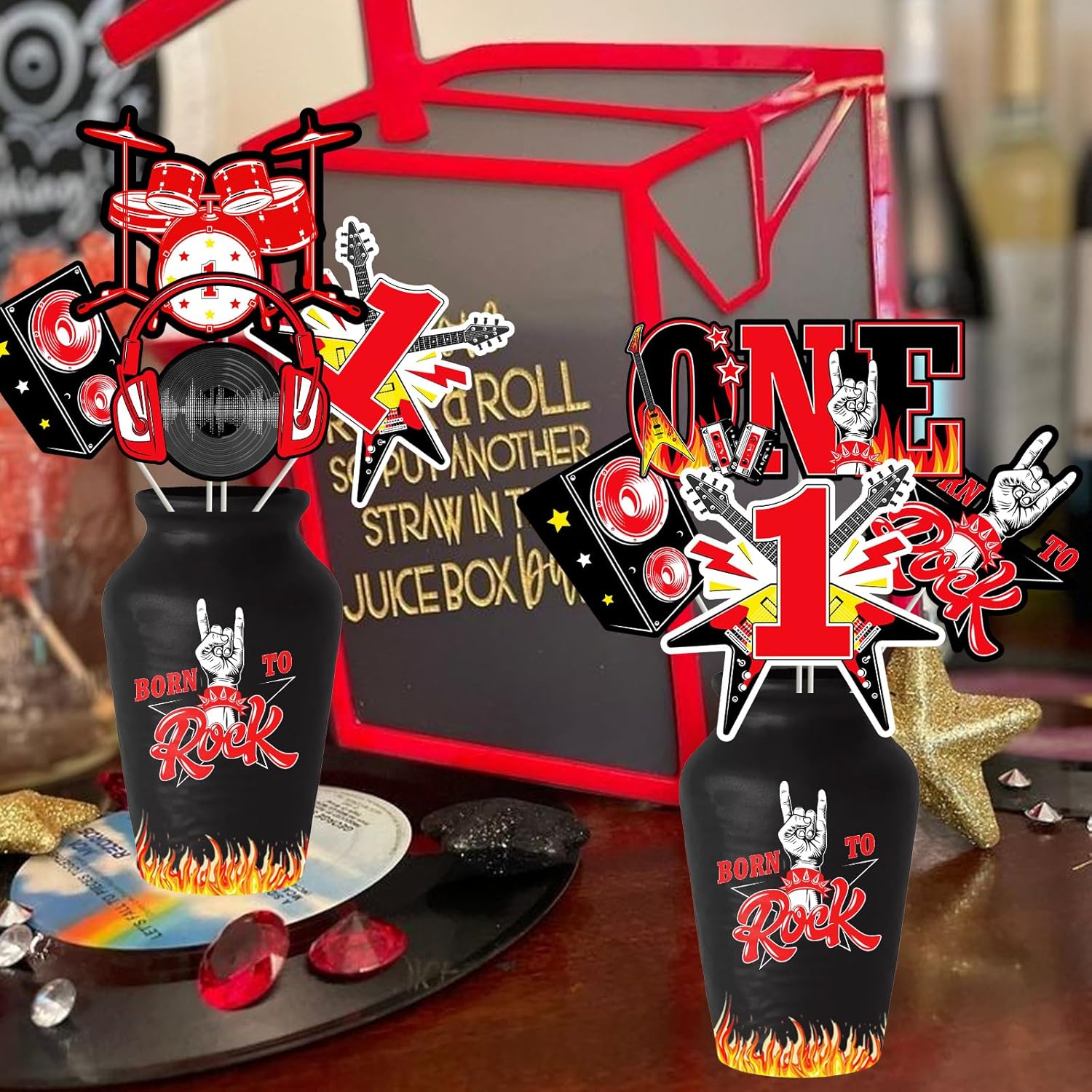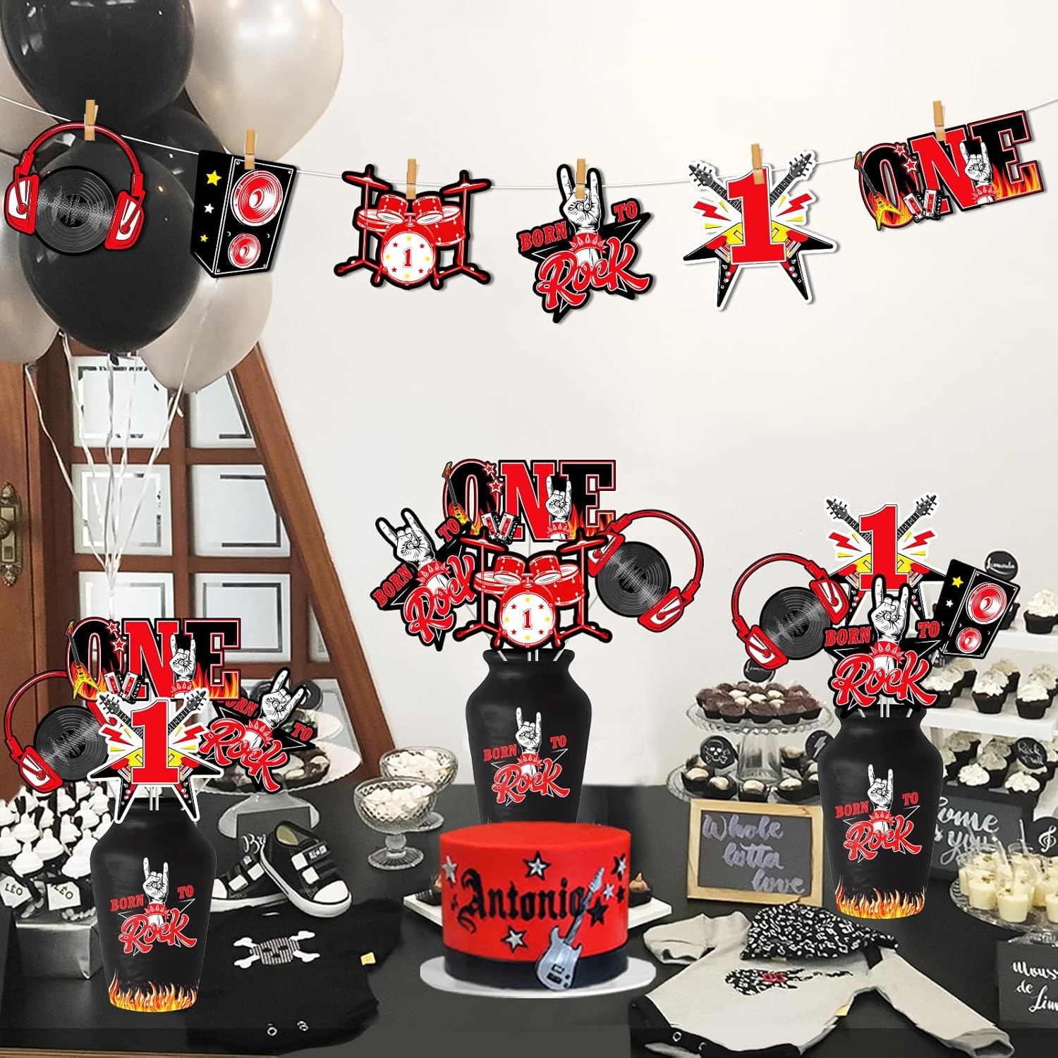 Decorazioni per il primo compleanno di One Rocks: riceverai 24 biglietti a tema rocce in 6 diverse forme, 24 bastoncini di carta e 60 punti di incollaggio, quantità sufficienti e stili diversi per soddisfare le tue esigenze di decorazione, rendere la tua festa più accattivante e meravigliosa! Qualità premium: questi bastoncini per centrotavola di compleanno sono realizzati in carta con motivi di stampa su entrambi i lati. Sono sicuri, robusti e affidabili, facili da riporre e mantenere. E può mantenere in buone condizioni per fornire un uso prolungato. Quindi puoi usarli con fiducia. Design rock: i bastoncini centrotavola di compleanno sono progettati in nero e rosso. Ci sono forme di pattern "ONE", forme di chitarra, forme di gesti e forme di altri elementi rock and roll. Renderà i tuoi ospiti più entusiasti, migliorerà un'atmosfera gioiosa e lascerà un ricordo indimenticabile intorno alle tue famiglie. Regalo speciale: questo centrotavola ti farà trascorrere una meravigliosa e indimenticabile festa a tema musica rock, i motivi freschi e squisiti sono molto interessanti. Possono rendere il vostro tavolo più attraente e portare il divertimento alla vostra festa. Occasioni di applicazione: il set di decorazioni per il primo compleanno di One Rocks è adatto per il primo compleanno del ragazzo, festa di compleanno rock and roll, festa di compleanno a tema musicale e feste hippie retrò. Puoi usarli per decorare il tavolo della festa e aggiungere anche le tue decorazioni preferite, che possono decorare bene una festa a tema rock unica.