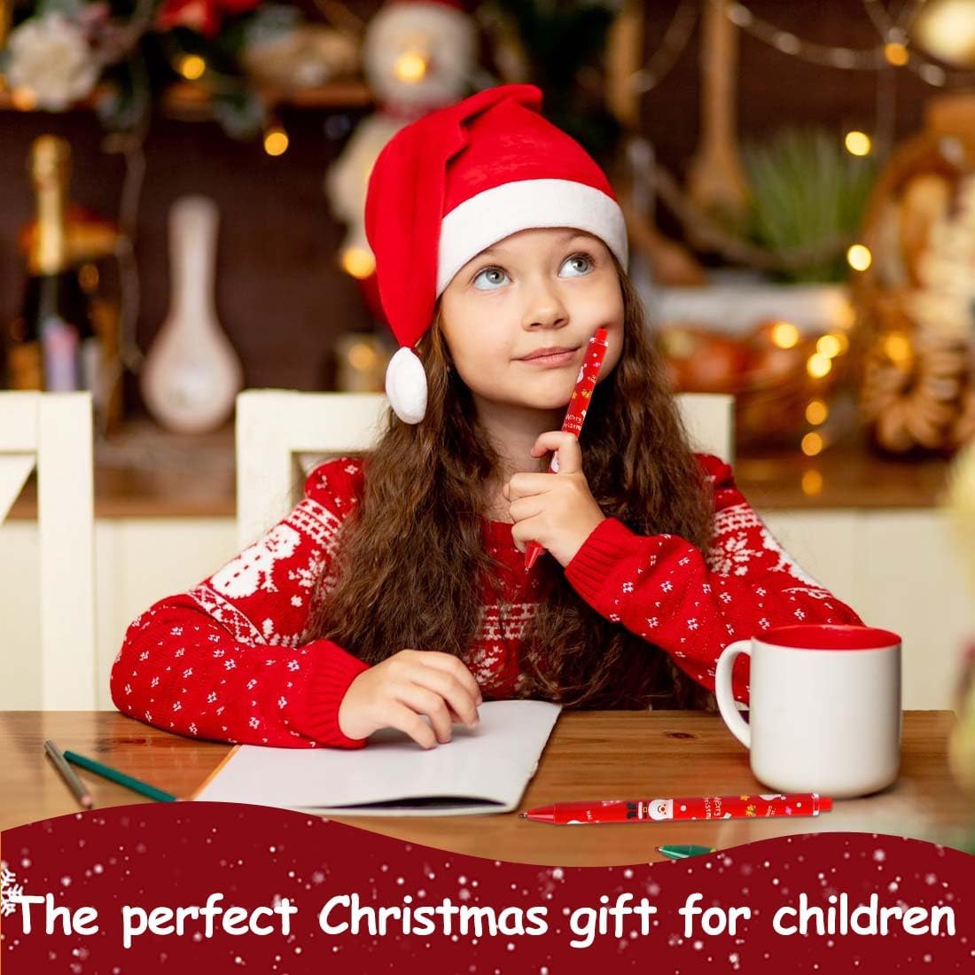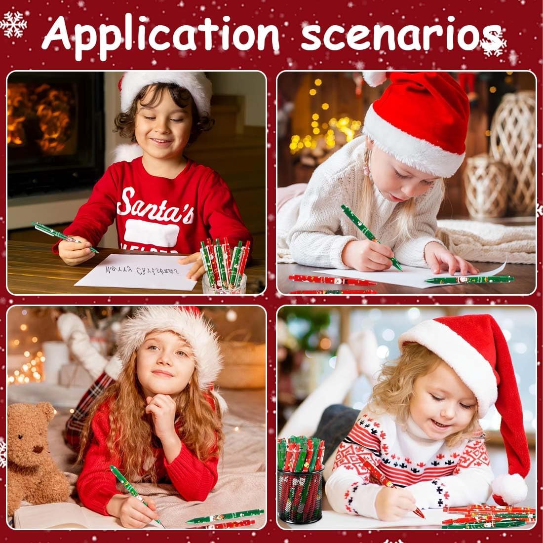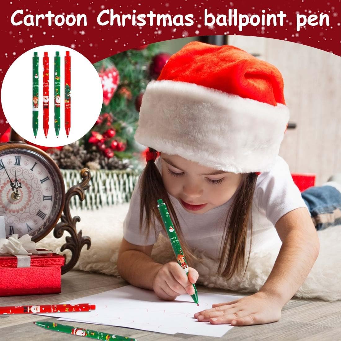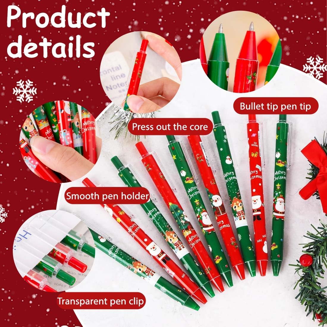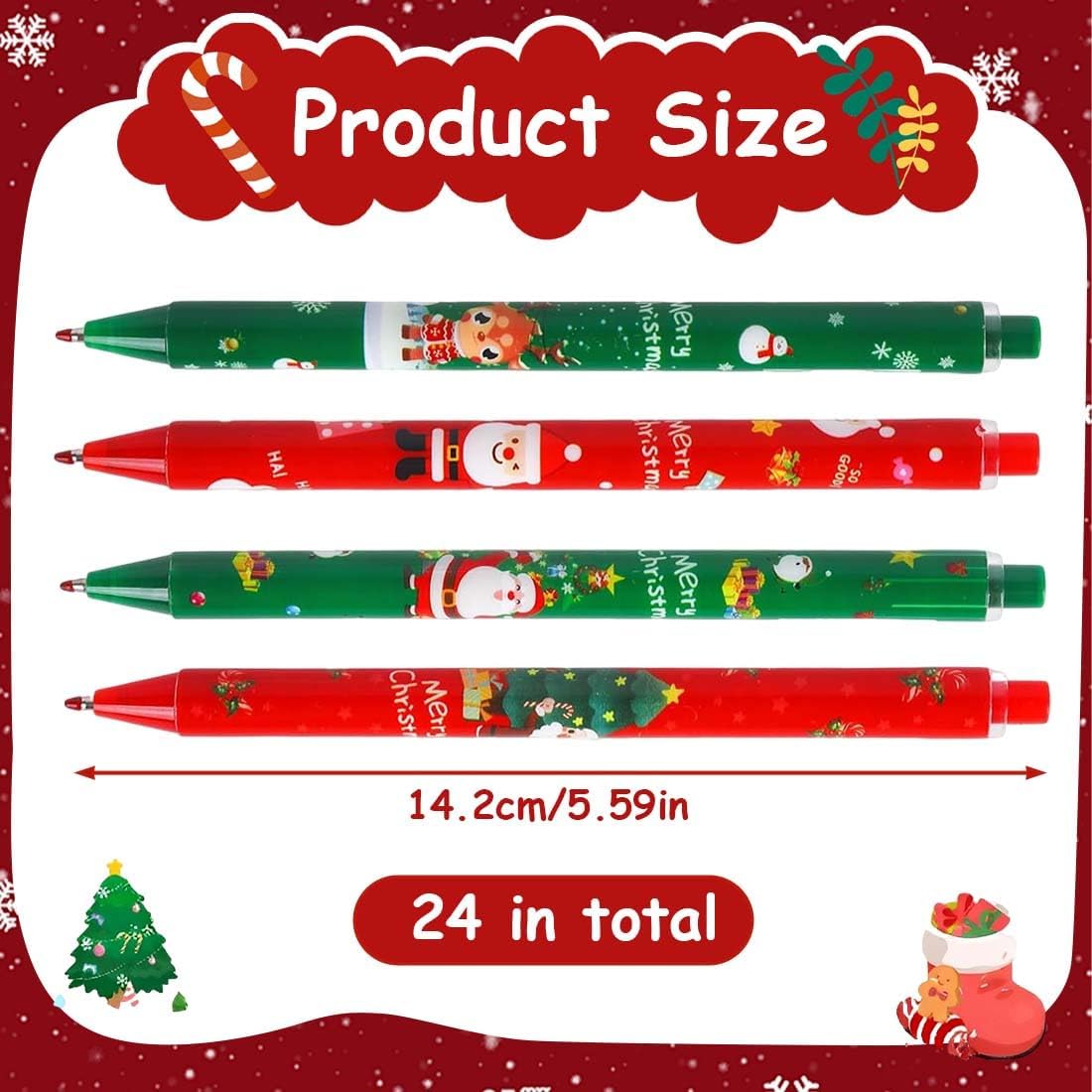 4 stili di penne a sfera natalizie: Babbo Natale e Alce 2 diversi modelli,disponibili in rosso e verde,la confezione contiene 24 penne per aggiungere mistero e decorazioni natalizie. Penne a tema natalizio: queste penne a sfera presentano decorazioni natalizie come Babbo Natale,alci e altro ancora.Disegni carini e festosi possono migliorare l'atmosfera natalizia. Materiali di Alta Qualità: Realizzate con materiali di alta qualità con ingredienti sicuri e durevoli,le nostre penne offrono una lunga durata durante le festività natalizie,sono facili da scrivere e sono sicure da giocare come giocattoli. Facile da usare: basta premere la parte superiore della penna di Natale,scrittura semplice,facile da usare,fluida,ottenere una buona esperienza di scrittura. Il miglior piccolo regalo: le penne natalizie sono un must per qualsiasi confezione regalo,con disegni carini e colori vivaci che possono suscitare l'interesse dei bambini per la scrittura,e puoi regalarle ai tuoi compagni di classe,amici,familiari o altre persone significative a Natale o al compleanno