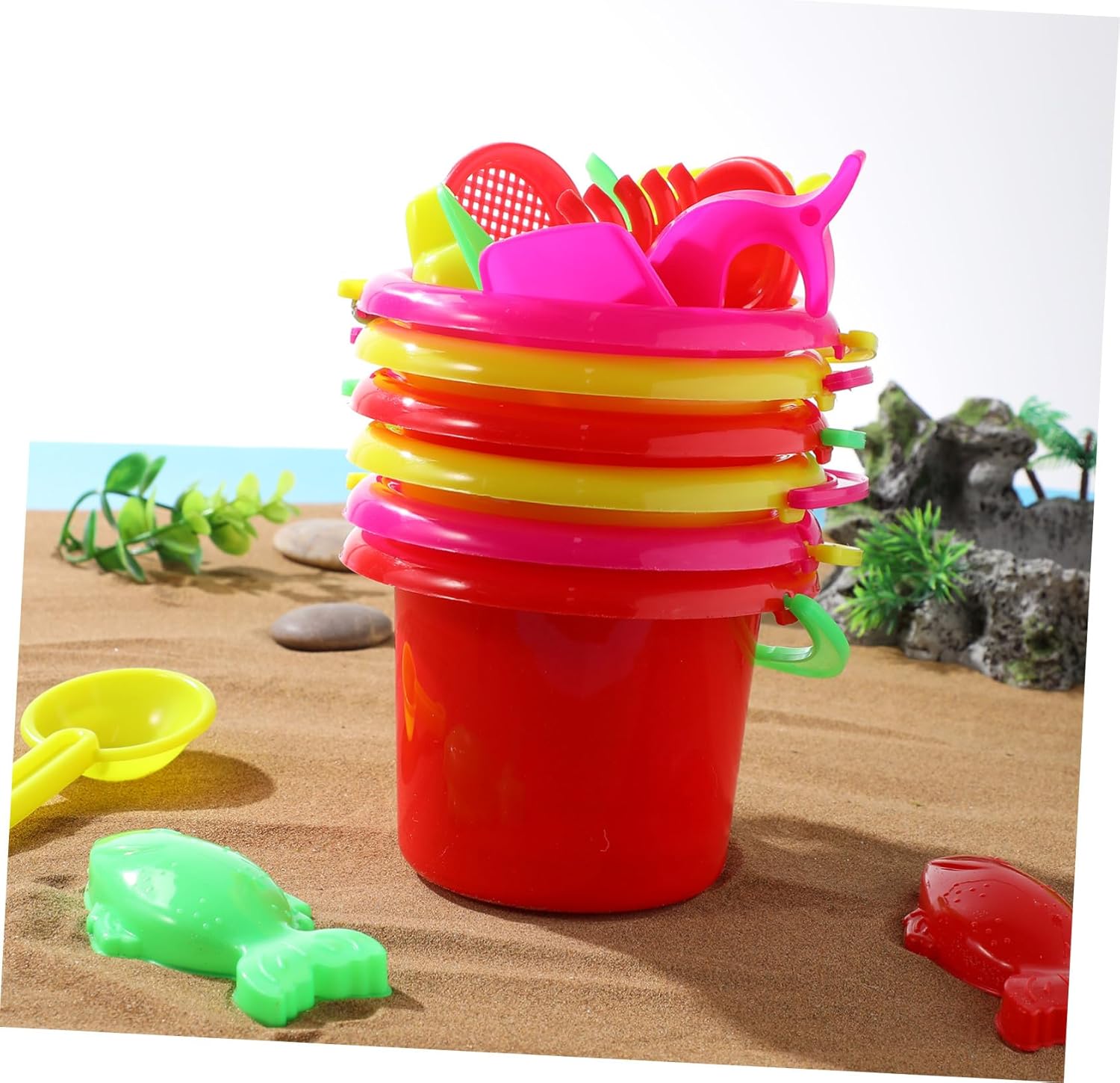 Secchio di sabbia per bambini: sono realizzati in materiale di alta qualità, che può essere utilizzato a lungo, mini secchio in plastica. Secchiello in plastica piccolo: ha un design divertente e creativo, che ne garantisce la popolarità e la praticità tra i bambini. Secchio per la sabbia Divertimento da spiaggia in miniatura: questo set di giocattoli da spiaggia per casa delle bambole per bambini include mini secchi e pale, ideali per giochi fantasiosi, secchiello da spiaggia in plastica, mini secchio per la sabbia. Giocattoli da esterno per bambini: i genitori possono accompagnare i loro figli a giocare insieme con questo giocattolo, rafforzando la relazione genitore-figlio. Set da gioco completo con secchiello in plastica estivo: include vari accessori per soddisfare tutte le esigenze di gioco, offrendo divertimento infinito, giocattoli per bambini, secchio per giocare con la sabbia