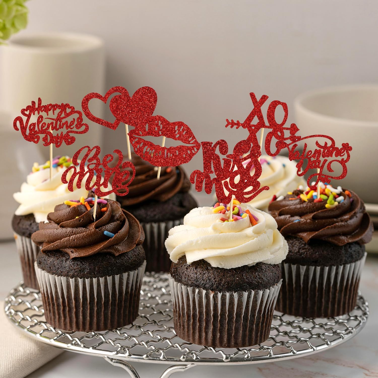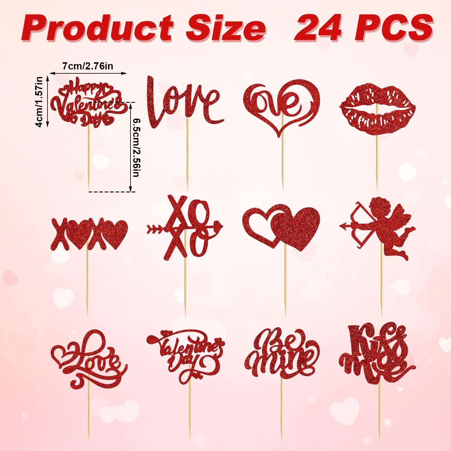 Prodotto incluso: riceverai 24 pezzi di toppers per cupcake di San Valentino. Quantità sufficiente per soddisfare le vostre esigenze di utilizzo e decorazione. Materiali eccellenti: i toppers cupcake glitter rossi sono realizzati in carta glitterata e bastoncini di legno, di buona qualità, affidabili, stabili e durevoli. Non facile da rompere o sbiadire, può offrirti un'esperienza d'uso piacevole. Dimensioni del prodotto: le decorazioni per torta di San Valentino misurano circa 6,5 cm di lunghezza del bastoncino di bambù, adatte a diversi tipi di torte, cupcake, ecc., aumentando l'atmosfera romantica. Design unico: i toppers per cupcake di San Valentino sono progettati come tema di San Valentino con il rosso come colore principale con amore, testo e rose. Ampiamente usato: i toppers cupcake di San Valentino possono essere usati come decorazioni per torte, cupcakes, dessert, snack, ecc. Adatto per feste a tema di San Valentino, matrimoni, compleanni, feste a tema rosso, ecc.