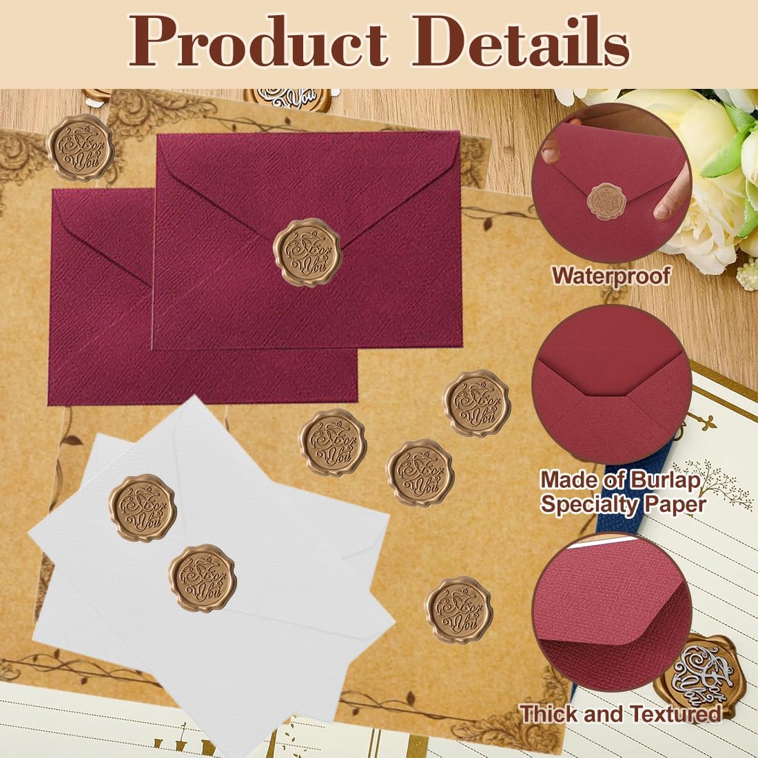 Materiali di alta qualità e design raffinato: realizzate in carta speciale con texture simile al lino, le buste combinano resistenza all'acqua e una consistenza corposa. Abbinate a carta da lettere con motivi vintage e sigilli in ceralacca finta, l'insieme emana un'estetica elegante e retrò, conferendo alle lettere un tocco di formalità e stile artistico. Comodi adesivi con sigilli in ceralacca, applicazione senza sforzo: gli innovativi sigilli in ceralacca autoadesivi eliminano la necessità dei tradizionali strumenti di riscaldamento. Basta staccare la pellicola protettiva e applicarli sulla busta per sigillarla, semplificando il processo e ottenendo un effetto vintage senza sforzo. Set accuratamente curato: include carta da lettere con motivi vintage, buste cremisi scuro, buste bianche e sigilli in ceralacca. La quantità e la varietà equilibrate soddisfano le esigenze di diverse occasioni di scrittura di lettere o di sigillatura di biglietti regalo, fornendo una soluzione completa per la corrispondenza vintage. Versatile per molteplici occasioni per trasmettere sentimenti sinceri: che si tratti di auguri di matrimonio, biglietti di compleanno, auguri festivi o corrispondenza quotidiana, questo set di carta da lettere vintage si adatta perfettamente. La sua presentazione visiva raffinata e la qualità tattile conferiscono a ogni messaggio calore e significato commemorativo. Artigianato superiore e meticolosa attenzione ai dettagli: le buste e la carta da lettere presentano bordi rifiniti con cura, mentre gli adesivi con sigillo in ceralacca vantano disegni nitidi e chiari. La qualità complessiva della produzione è eccezionale, con ogni aspetto, dalla selezione dei materiali ai dettagli finali, che dimostra un artigianato di alta qualità. Questo lo rende una scelta eccellente per uso personale o come regalo premuroso.