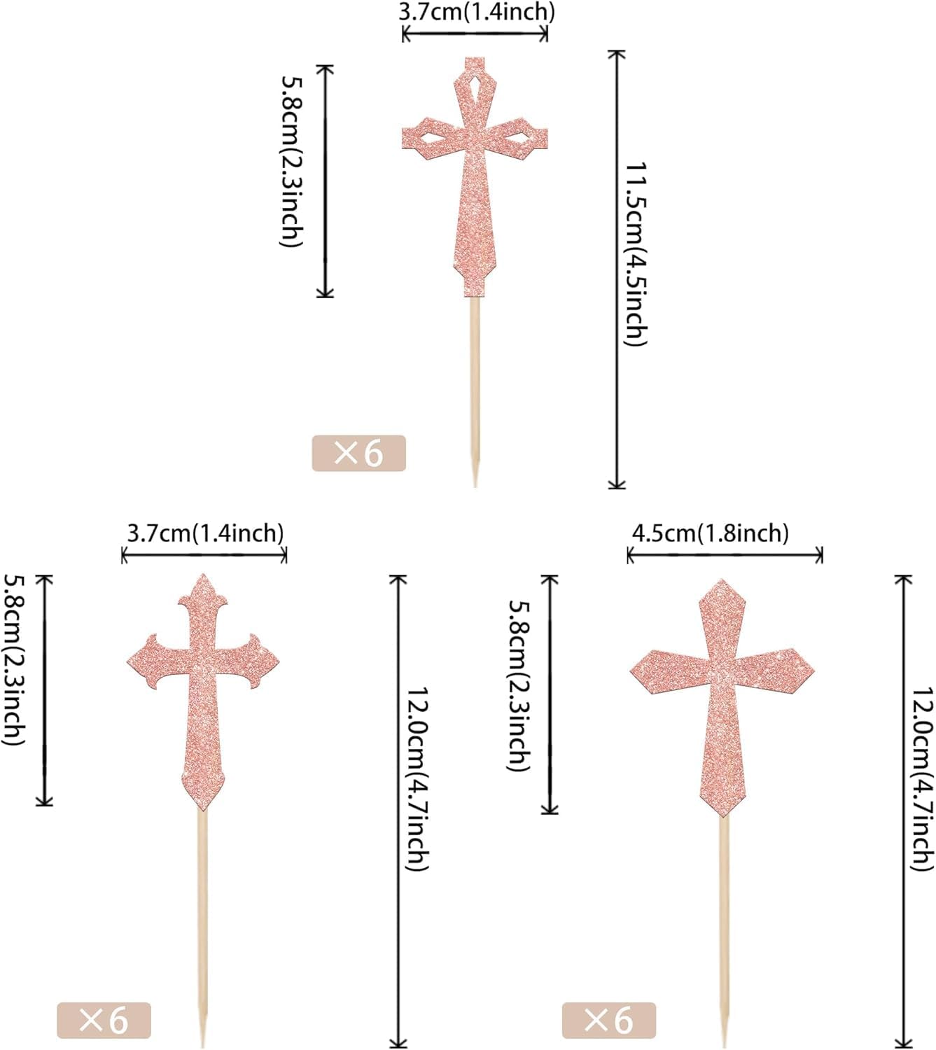 Materiale: I nostri toppers per cupcake sono realizzati in cartone spesso lucido di alta qualità Confezione: Contiene 24 toppers per cupcake che possono soddisfare le diverse esigenze di decorazione, questi toppers per cupcake sono preassemblati, puoi usarli direttamente quando li ricevi Dimensioni: la dimensione è 5,1 x 5,0 pollici/2,3 x 4,3 pollici/2,1 x 4,4 pollici/2,3 x 4,1 pollici/1,4 x 4,9 pollici / 2,5 x 4,6 pollici (con bastoncino) Applicazione: decorazione perfetta per cupcake, biscotti, torte, frutta, brownies, gelati e altro, particolarmente adatta per feste a tema incrociato, prima festa a tema sacro, festa a tema baby shower, forniture per feste di compleanno per bambini, decorazioni per cupcake Suggerimenti: questi toppers per cupcake non sono commestibili e sono solo a scopo decorativo, per favore non usarli nel forno o nel microonde