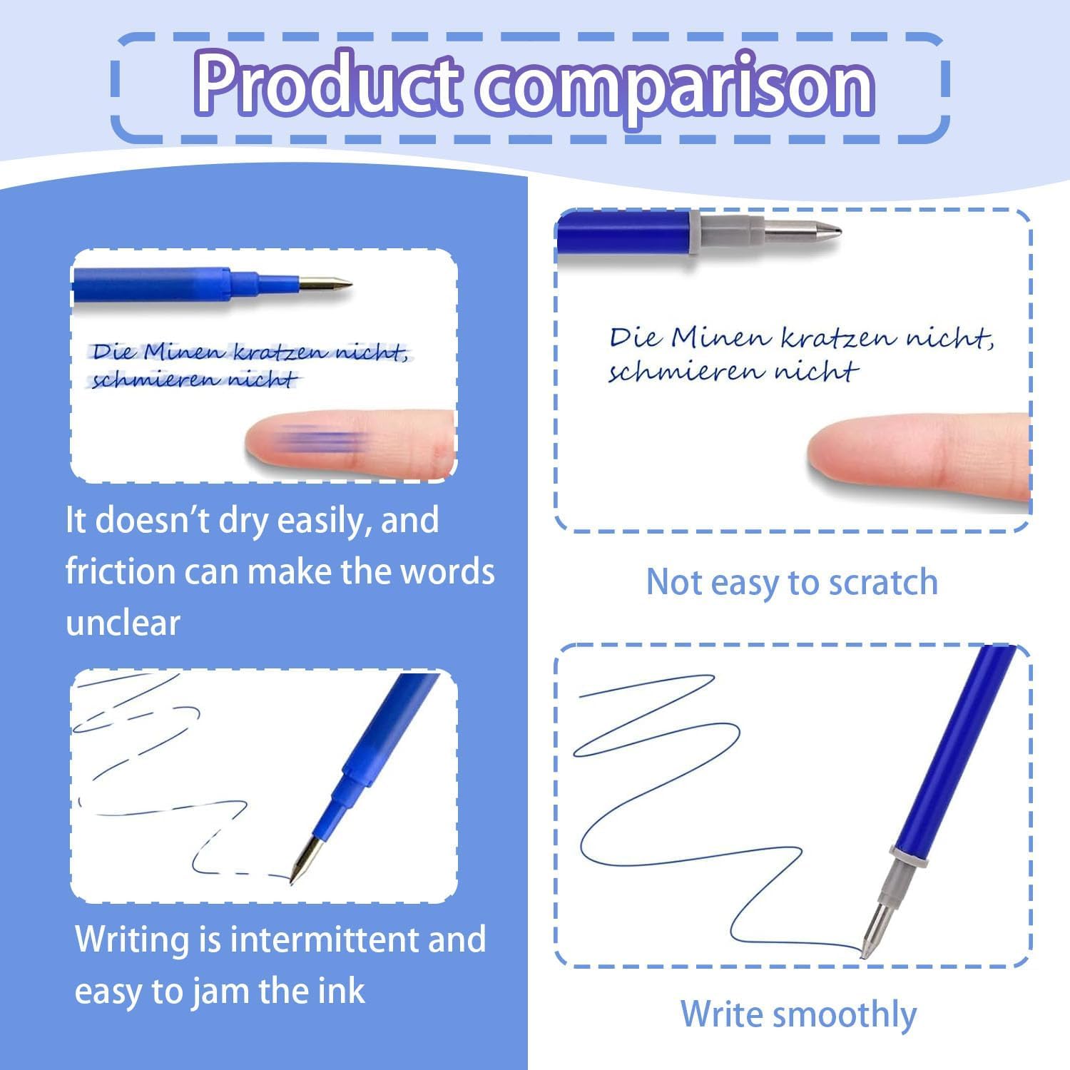💙【24 ricariche cancellabili】Questo set contiene 12 ricariche blu e 12 ricariche nere. Le ricariche utilizzano uno speciale inchiostro cancellabile e sensibile al calore. Per cancellare la scritta utilizzare una gomma in silicone. Non lascia segni né danneggia la carta dopo la cancellazione, è adatto per la scuola, l'ufficio o l'uso occasionale. 🖤【Progettato appositamente per le penne gel cancellabili Legami】Con un diametro di 4 mm e un'altezza di 13 cm, è perfettamente adatto alle penne gel cancellabili Legami. L'effetto di scrittura è identico a quello della ricarica originale, è scorrevole e non graffia la carta. 💙【Esperienza di scrittura fluida】Design con punta della penna da 0,7 mm, la scrittura è fluida senza graffiare la carta o esaurire l'inchiostro. Che si tratti di una scrittura veloce o di una descrizione dettagliata, è in grado di gestirla facilmente. Adatto ai principianti e agli appassionati di scrittura, riesce facilmente a soddisfare le esigenze quotidiane di scrittura. 🖤【Inchiostro cancellabile, errori facili da correggere】Utilizzando l'inchiostro cancellabile termicamente, puoi cancellare facilmente gli errori di scrittura senza lasciare tracce. Che si tratti di una parola o di una riga sbagliata, è possibile correggerla rapidamente, rendendo il processo di scrittura più efficiente e senza preoccupazioni. Particolarmente adatto per occasioni informali come bozze e appunti. 💙【Regalo per il ritorno a scuola】Che si tratti di bambini, studenti, insegnanti, amici o colleghi, queste ricariche sono la scelta migliore per compleanni, festa dei bambini, Natale o attività di ritorno a scuola.