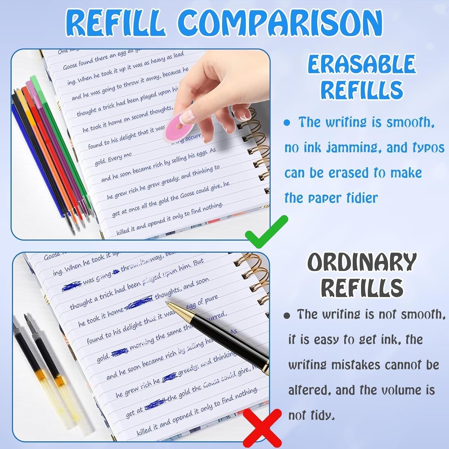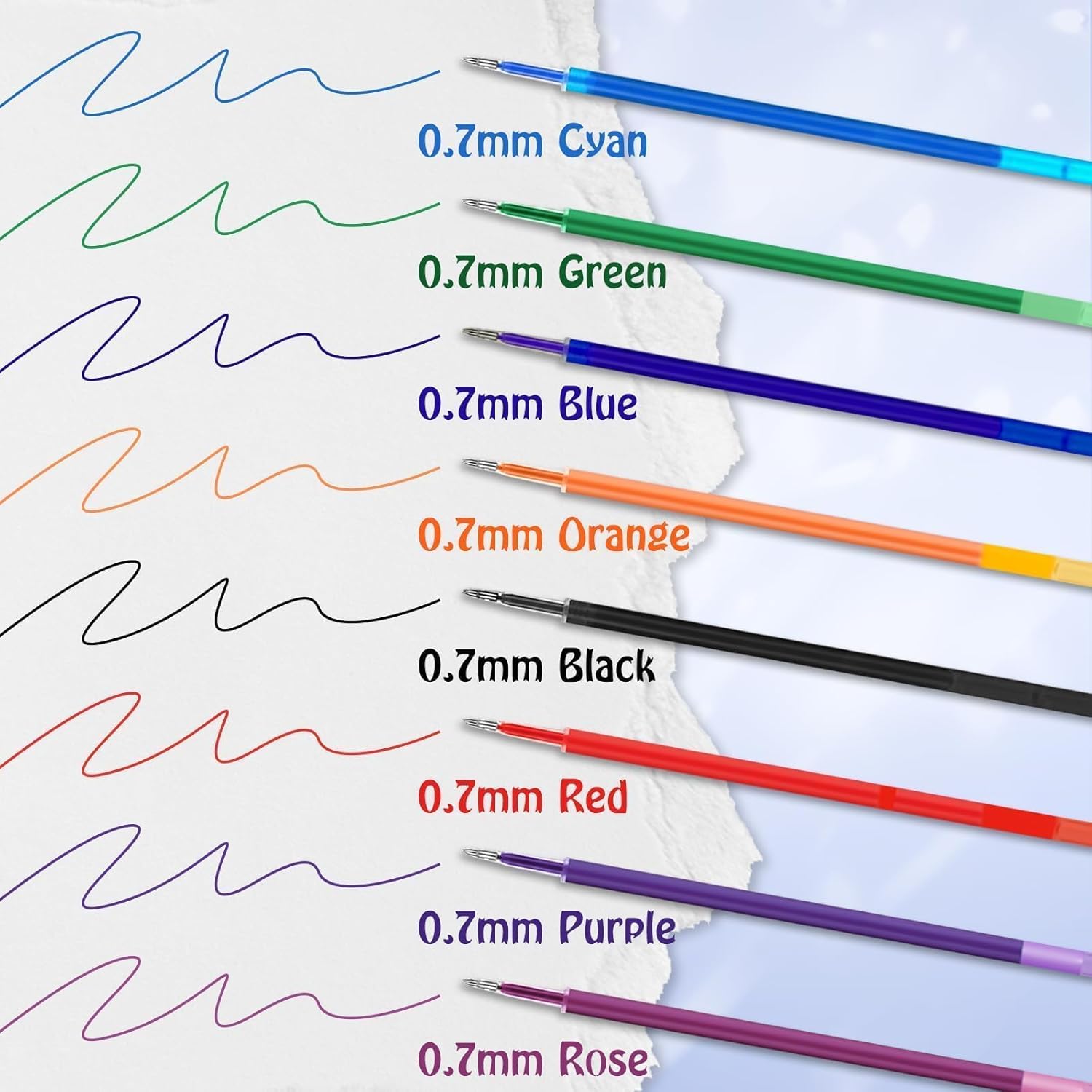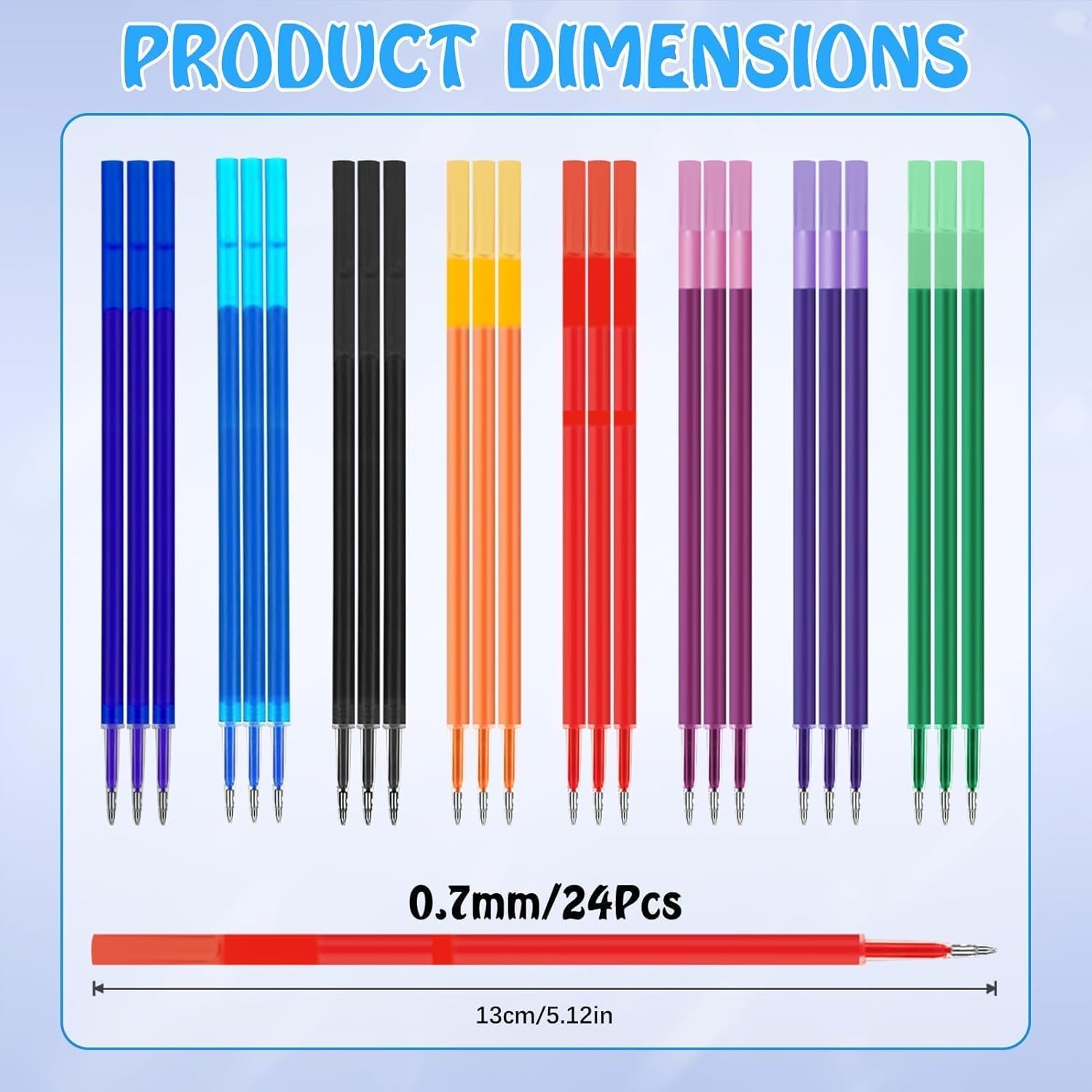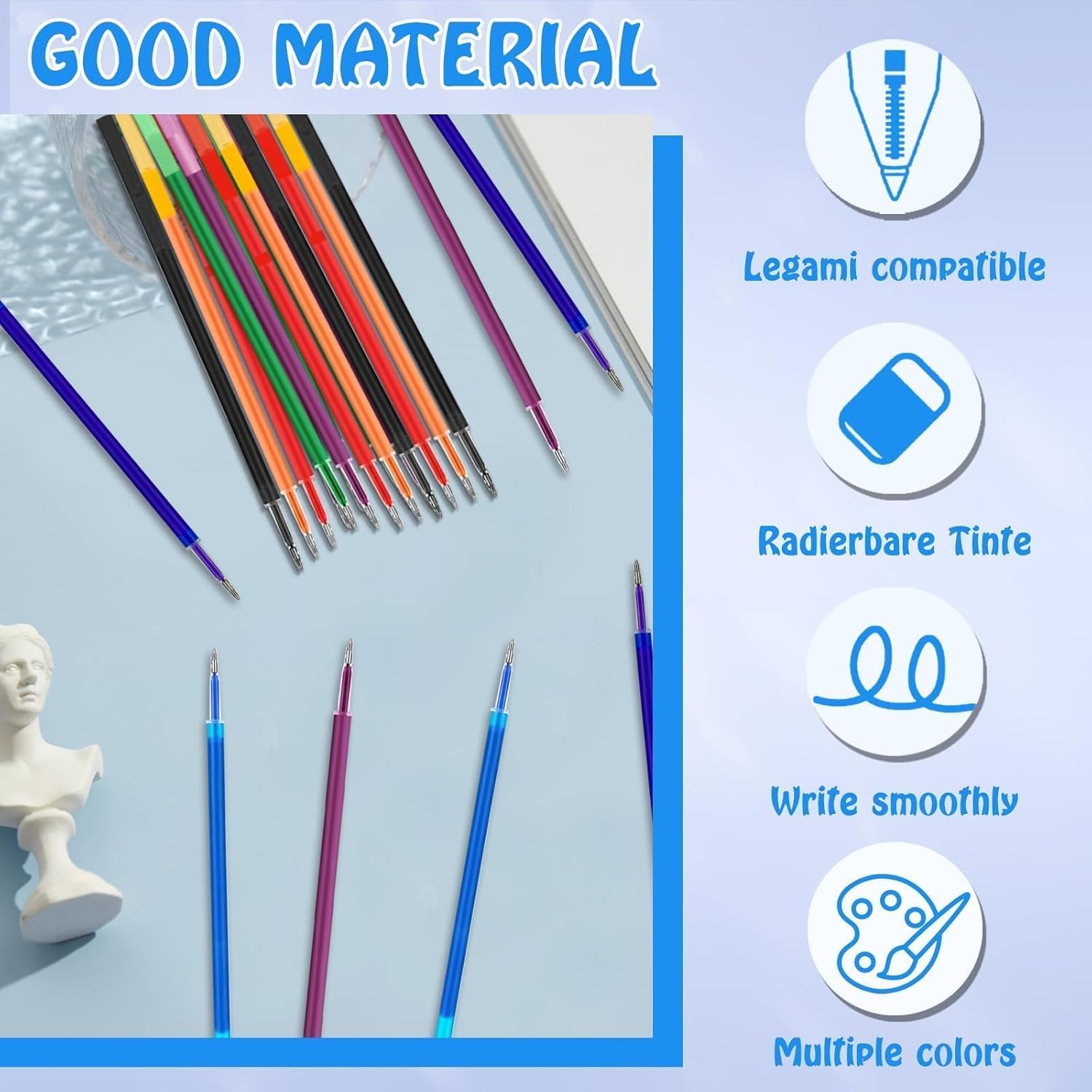 ❤️🤎 【24 radierbare Minen】Dieses Set enthält 24 radierbare Minen, jeweils drei in acht Farben. Die Minen verwenden eine spezielle radierbare, wärmeempfindliche Tinte. eignet sich daher für Schule, Büro und Freizeit. 💛🖤【Entwickelt Legami radierbare Gelschreiber】Mit einem Durchmesser von 4 mm and einer Höhe von 13 cm passen sie perfekt zu Legami radierbaren Gelschreibern und bieten das gleiche gleichmäßige, kratzfreie Schreibgefühl wie die Originalminen. 💚💙【Reibungsloses Schreiberlebnis】Die 0,7-mm-Spitze soorgt für gleichmäßiges Schreiben ohne Kratzer oder Tintenverlust. Ob schnelles oder präzises Schreiben – diese Minen eignen sich perfetti für Anfänger und Kalligrafie-Enthusiasten and erfüllen Ihre täglichen Schreibanforderungen. 💜🖤 [Löschbare Tinte, Fehler leicht korrigieren] Dank der thermisch löschbaren Tinte lassen sich Schreibfehler leicht und rückstandslos entfernen. Egal ob falsch geschriebenes Wort oder falsch gezeichnete Linie – Sie können sie schnell korrigieren und so effizienter und sorgenfreier schreiben. Perfetto per informazioni informali come comunicazioni e avvisi. 🖤💙 【Perfektes Geschenk】 Ob Kind, Schüler, Lehrer, Freund oder Kollege – diese Nachfüller sind die perfekte Wahl für Geburtstage, Kindertage, Weihnachten oder Schulanfangsfeiern.