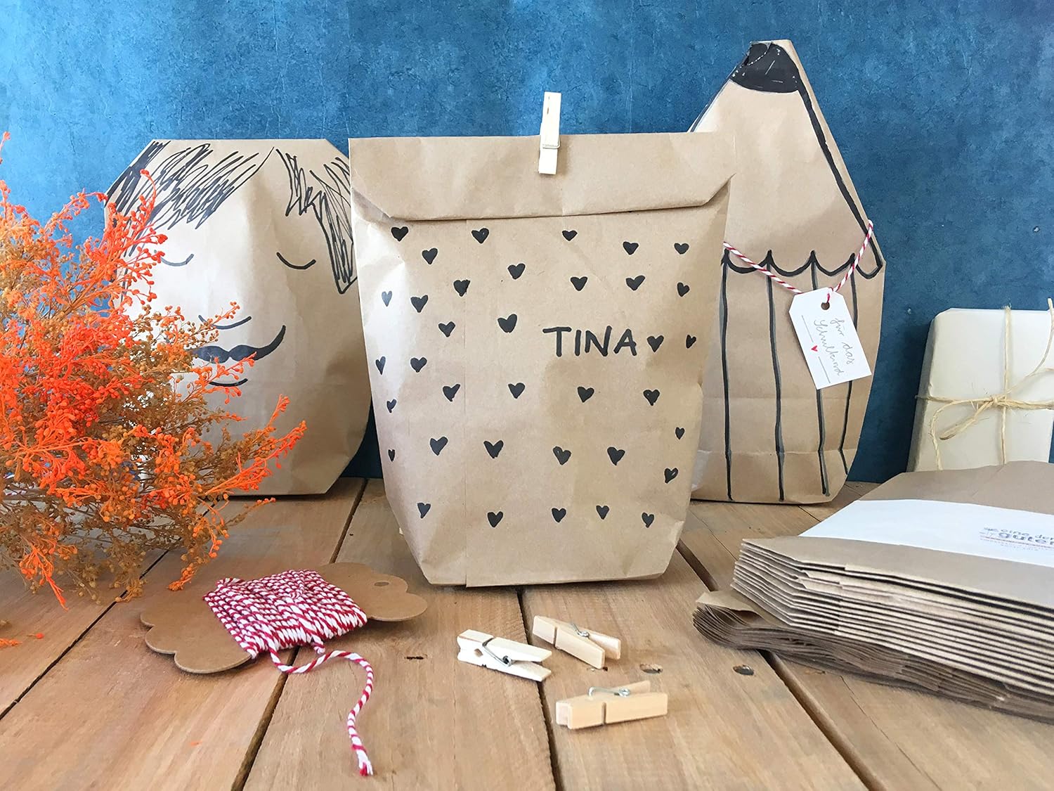 Almeno 24 sacchetti di carta opaca da sfilare (di solito sono circa 25, 26 o anche 27), set di sacchetti da riempire, per realizzare calendari dell'Avvento, bomboniere ♥ La nostra vasta selezione di calendari dell'Avvento e numeri per calendari dell'Avvento potete trovarli qui ► https://amzn.to/2J5j5wZ Questi robusti sacchetti di carta con fondo a croce sono perfetti per confezionare regali e come sacchetti per calendari dell'Avvento: i sacchetti sono adatti per un DVD o CD, un libro stretto A5, una bottiglia da 0,5 l ed altri piccoli regali. Ottime come confezioni regalo per compleanni, Pasqua, Natale, Babbo Natale, come buste da festa, buste di compleanno, buste di Pasqua, buste di Babbo Natale, per piccoli souvenir, bomboniere o bomboniere per matrimoni, compleanni di bambini, ecc. I sacchetti di carta kraft hanno una dimensione di 17 x 26 cm, il fondo misura 7 x 10,5 cm, non filettati né forati. NOTA: I sacchetti non sono adatti per conservare biscotti e alimenti non confezionati poiché non sono untuosi. QUINDI UNO DEI BUONISSIMI: Siamo una piccola casa editrice di Colonia con molta passione per il bel design fatto a mano. La sostenibilità è molto importante per noi: ecco perché facciamo piantare, spedire e produrre alberi in modo neutro dal punto di vista climatico e, ogni volta che possiamo, con carta FSC o riciclata. Nel nostro negozio sono disponibili altre cose belle come adesivi con numeri per il calendario dell'Avvento, adesivi per matrimoni, compleanni, come regali e set di sacchetti regalo!