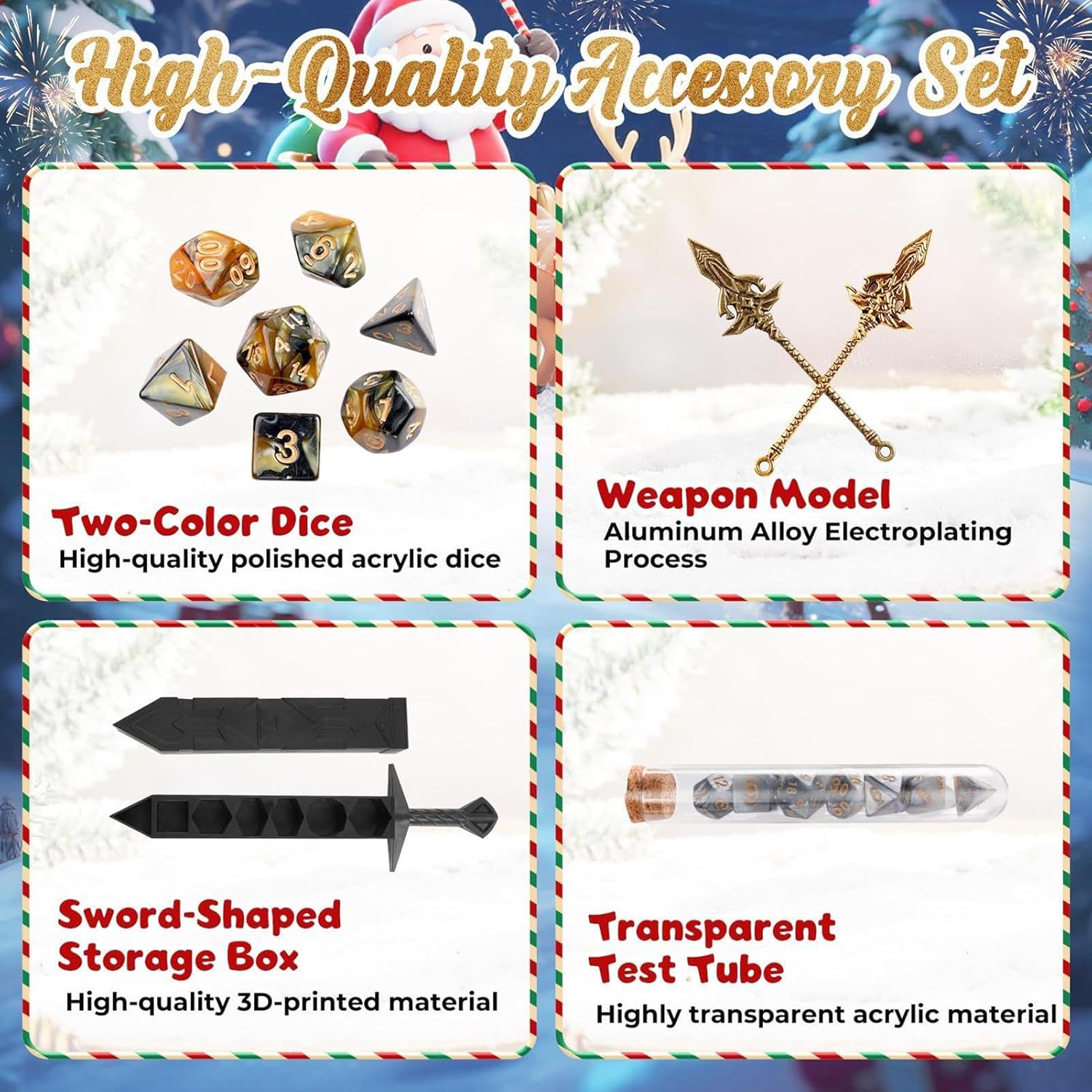 Regalo delicato: questo calendario dell'Avvento a cubi dal design creativo e pratico delizierà gli amanti dei giochi da tavolo di tutte le età e aumenterà l'attesa festiva. È perfetto per Natale e unisce il divertimento al tradizionale conto alla rovescia. Coinvolgimento quotidiano: questo calendario di dadi per il conto alla rovescia di Natale 2025 promuove il miglioramento rituale e crea eccitazione e meraviglia attraverso il suo design creativo per il conto alla rovescia per tutte le età con semplici attività ludiche Anticipazione quotidiana: sperimenta un aumento festoso dello spirito natalizio con il calendario 24 che crea gioiosa anticipazione e momenti magici attraverso ispiratrici sorprese quotidiane dei dadi Miglioramento visivo-tattile: realizzato con set di dadi poliedrici in ABS acrilico, questo calendario per il conto alla rovescia offre un'esperienza ricca di sensi Esperienza che aumenta l'anticipazione e l'eccitazione festosa Tavolo battaglie Esercitazione: i calendari dei dadi pronti per il gioco rafforzano le abilità numeriche attraverso decisioni tattiche nei giochi di ruolo, combinano contenuti didattici con momenti di gioco dinamici e promuovono lo sviluppo di strategie creative
