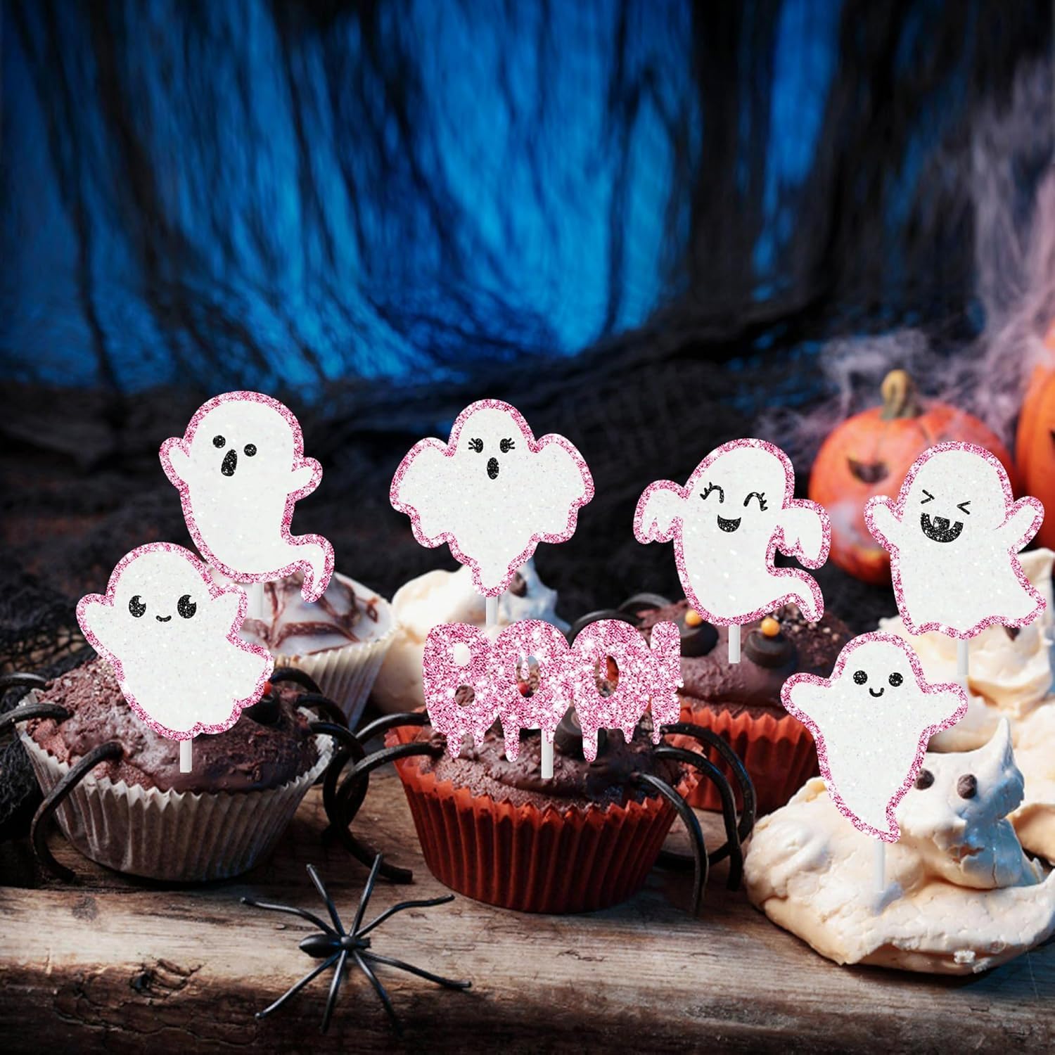 Decorazioni per cupcake di Halloween: 24 topper per cupcake preassemblati in 12 disegni, 2 pezzi per ogni motivo. Design unico con fantasmi. Cartoncino glitterato di alta qualità: realizzato con cartoncino glitterato da 300 g/m² che non si piega o sbiadisce. Presenta motivi glitterati a tema fantasma di Halloween e bordi lisci, ideale per la decorazione di cupcake di Halloween. Non richiede assemblaggio: nessun assemblaggio! Basta attaccare questi topper per cupcake prefabbricati a forma di fantasma in cupcake o cheesecake. Risparmio di tempo per le feste di Halloween Ampia applicazione: perfetto per decorare cupcake e torte, e può anche essere utilizzato per gelati, frutta, biscotti, antipasti alimentari, dessert, topper ecc. Adatto per varie occasioni, creando una meravigliosa atmosfera di festa Promemoria: questi topper per cupcake con fantasma di Halloween sono stampati su un lato. Solo per uso decorativo, evitare l'esposizione al calore: non adatto per apparecchi da forno o fiamme dirette.