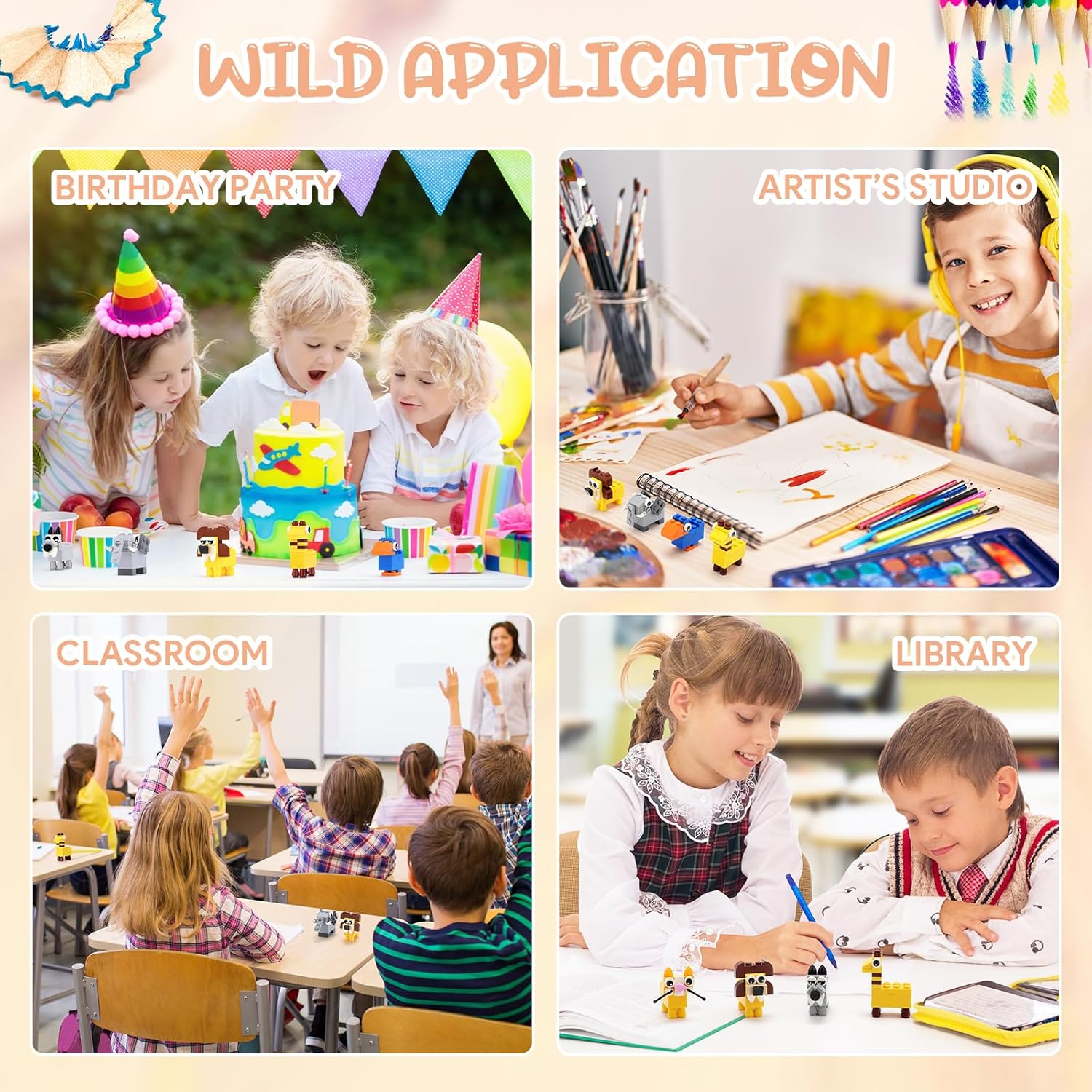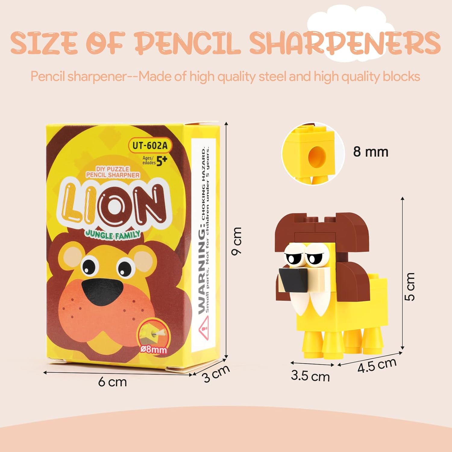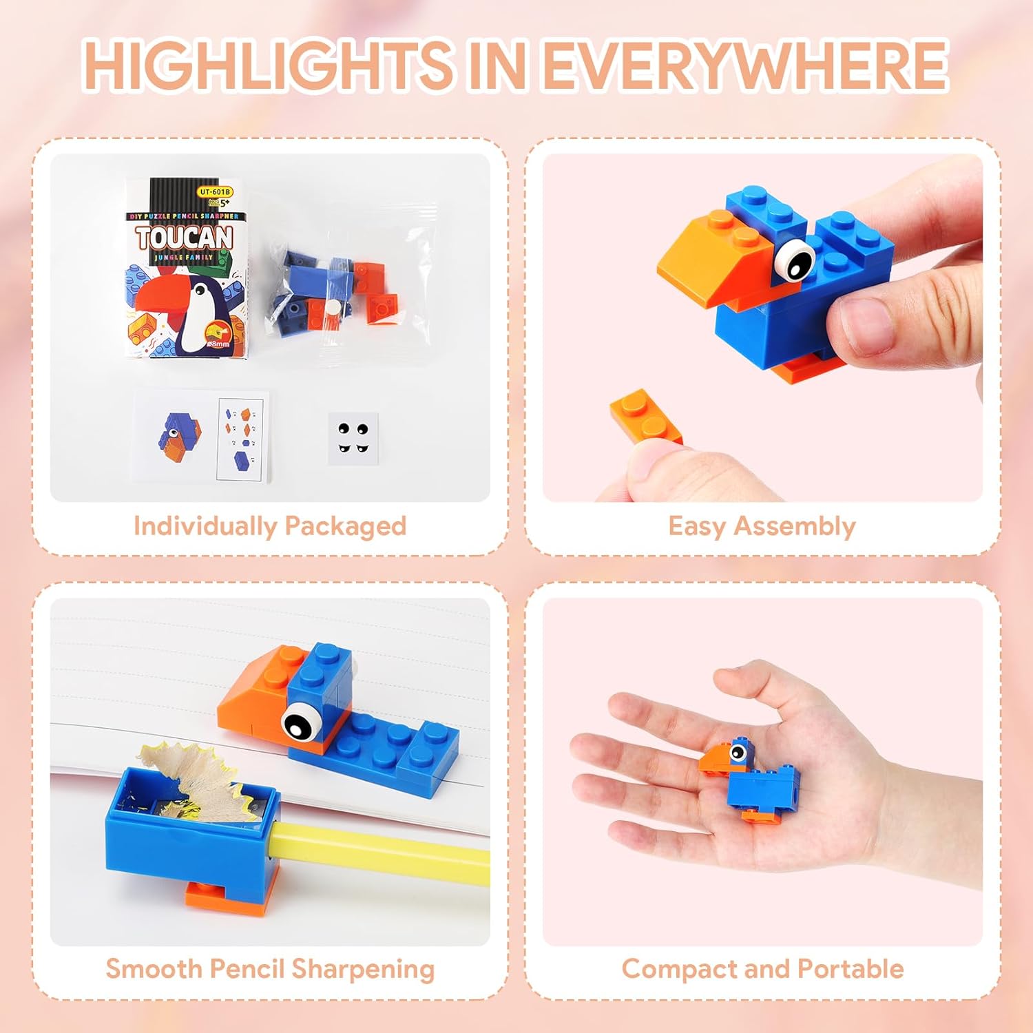 【Giocattolo da costruzione e temperamatite per bambini】 I nostri prodotti combinano il temperamatite con serbatoio e i mattoncini da costruzione. È sia uno strumento utile per lo studio, sia un gioco divertente per il tempo libero. Il mini temperamatite a mattoncini da costruzione può sviluppare la capacità manuale e di pensiero dei bambini e è perfetto da usare come regalini fine festa o come gadget festa compleanno bambini. 【Ampia varietà di modelli】 Un set comprende 6 temperamatite con creativi disegni di animali cartoniati. Prima dell'uso, è necessario assemblare i vari pezzi di mattoncini del temperamatite secondo le istruzioni. Dopo l'assemblaggio, può anche essere utilizzato come un bellissimo oggetto da esporre. È un pensierino compleanno bambini e anche un ottimo regalino compleanno bambini invitati. 【Sicuro e durevole】 Questo temperamatite per bambini è realizzato in un solido materiale plastico e con lame di metallo di alta qualità. È ecologico e sicuro. Inoltre, abbiamo progettato abilmente un serbatoio a clip per raccogliere le scaglie di matita, è comodo e durevole. È un gadget compleanno adatto sia per ragazzi che per ragazze. 【Portatile】 Questo temperamatite divertente è piccolo e carino, adatto per le matite con un diametro di 8 millimetri e può essere portato con sé. È un regalino fine festa perfetto per i bambini dai 3 ai 12 anni e anche un ottimo pensierino compleanno. Durante il processo di assemblaggio dei mattoncini, è possibile stabilire e rafforzare meglio la relazione tra voi e i vostri bambini. 【Giocattolo perfetto per la festa】 Questi temperamatite per costruzioni sono dei regalini fluo party perfetti o regalini compleanno per i bambini. Sono strumenti pratici da usare come elementi di riempimento per i sacchetti di regali per le feste dei bambini o per i calzini di Natale. Insegnanti possono usare questi carini temperamatite per bambini come premi in classe o come premi per i giochi degli studenti. Sono ideali come regali per le feste di compleanno, per le lauree.