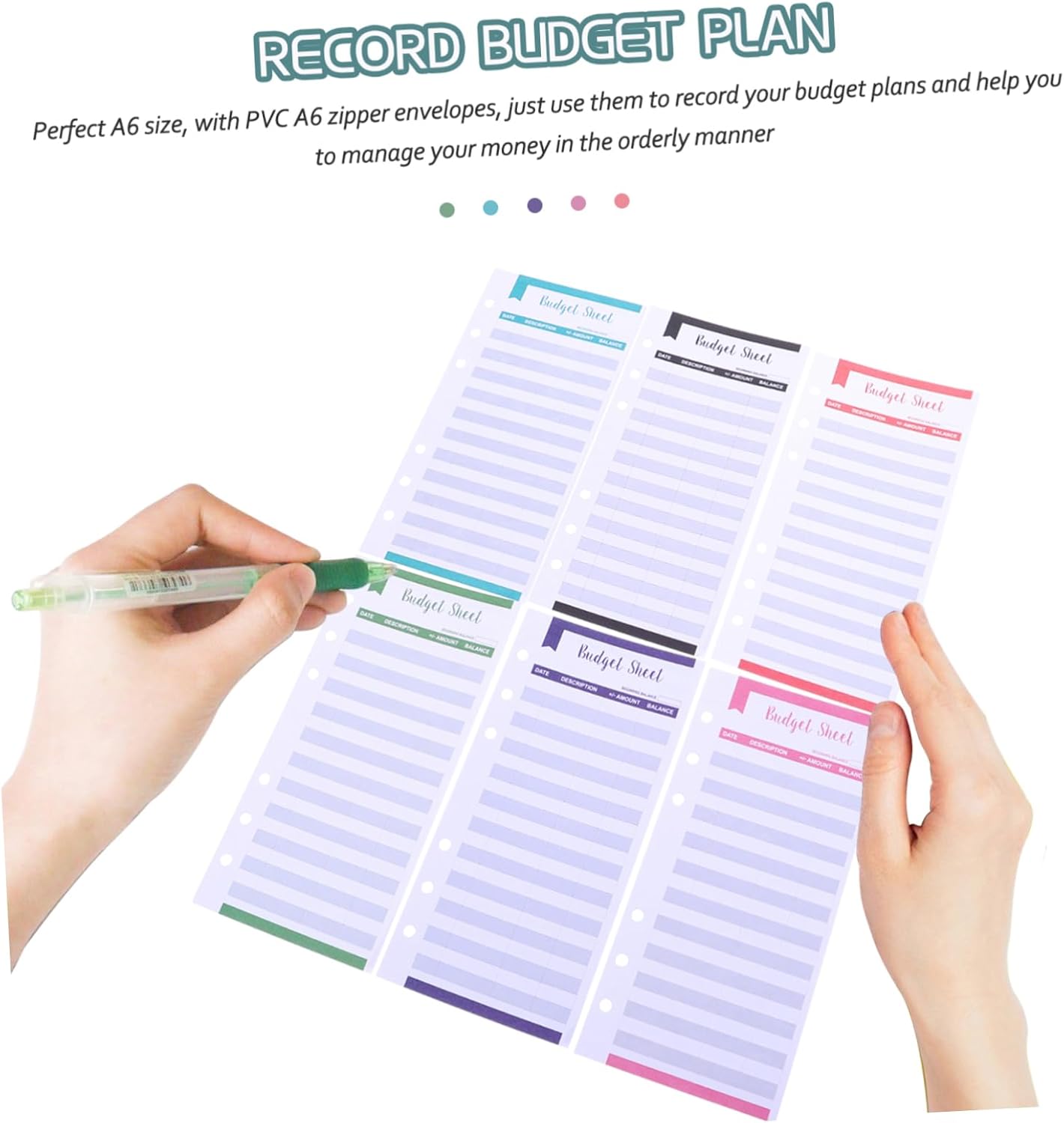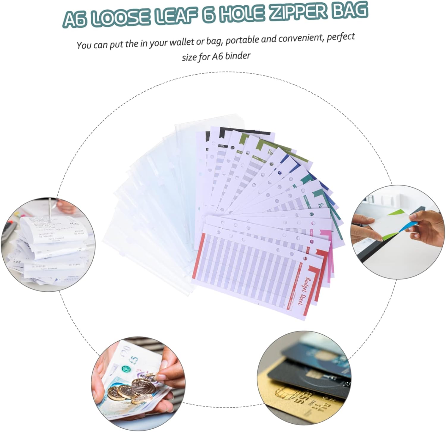 Tasche per raccoglitori: conserva le tue bollette mensili e il budget per farti conoscere i tuoi piani finanziari passati, borse per fogli mobili Buste con cerniera per raccoglitori: dei per sviluppare l'abitudine all'indipendenza finanziaria, buste per raccoglitori a fogli mobili Inserti per raccoglitori di bilancio: i nostri fogli di bilancio possono aiutarti a vedere chiaramente la tua situazione finanziaria nei piani di bilancio mensili, cartelle con cerniera trasparenti Tracker per buste di denaro: formato con anelli a fogli mobili, possono essere installati in un raccoglitore per la sostituzione o il rifornimento, inserti per budget di denaro Buste porta denaro contante: possono aiutarti a risolvere molti problemi di budget e a gestire facilmente le tue finanze, tasche con cerniera per raccoglitori