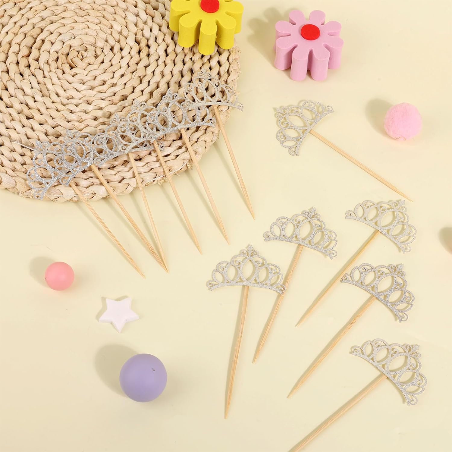 Il pacchetto include: riceverai 24 toppers per cupcake a corona glitter d'argento, molto per soddisfare le esigenze di decorazione delle parti e aggiungere fascino e scintillio ai tuoi dessert. Qualità premium: realizzata in carta durevole e bastoncini di legno, queste scelte di cupcake sono robuste, resistenti alla dissolvenza e liscia. Affidabile e facile da usare per qualsiasi celebrazione. Elegante design a corona: progettati a forma di corona d'argento lucida, questi adorabili toppers per torte portano un tocco di raffinatezza a torte, cupcakes e dessert, perfetti per aggiungere un tocco festivo ai tuoi eventi a tema principessa. Dimensioni perfette: ogni decorazione della torta misura circa 13,4x5,4 cm. Non è richiesto l'assemblaggio, puoi usarlo direttamente e inserire torte, cupcakes, frutta, formaggio o altri piatti che vuoi decorare. Ampia applicazione: ideale per docce per bambini, feste di compleanno, celebrazioni a tema principessa, matrimoni, docce nuziali e altro ancora. Un'aggiunta affascinante a qualsiasi evento elegante.